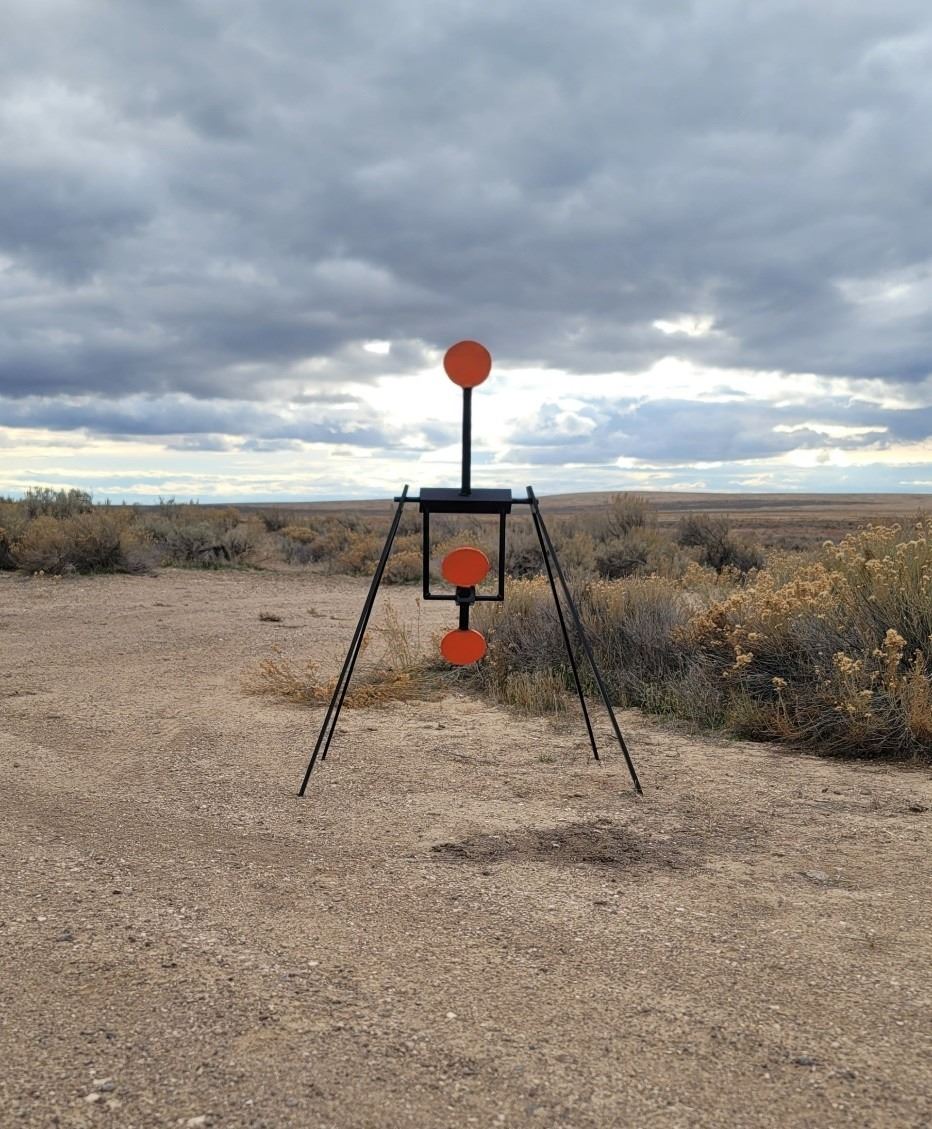 Push your skills with this new target from Mountain Arc! Standing 4’ tall and constructed from 3/8” AR500 steel, finished black with target plates highlighted in orange, this kinetic sculpture is built to take a beating.