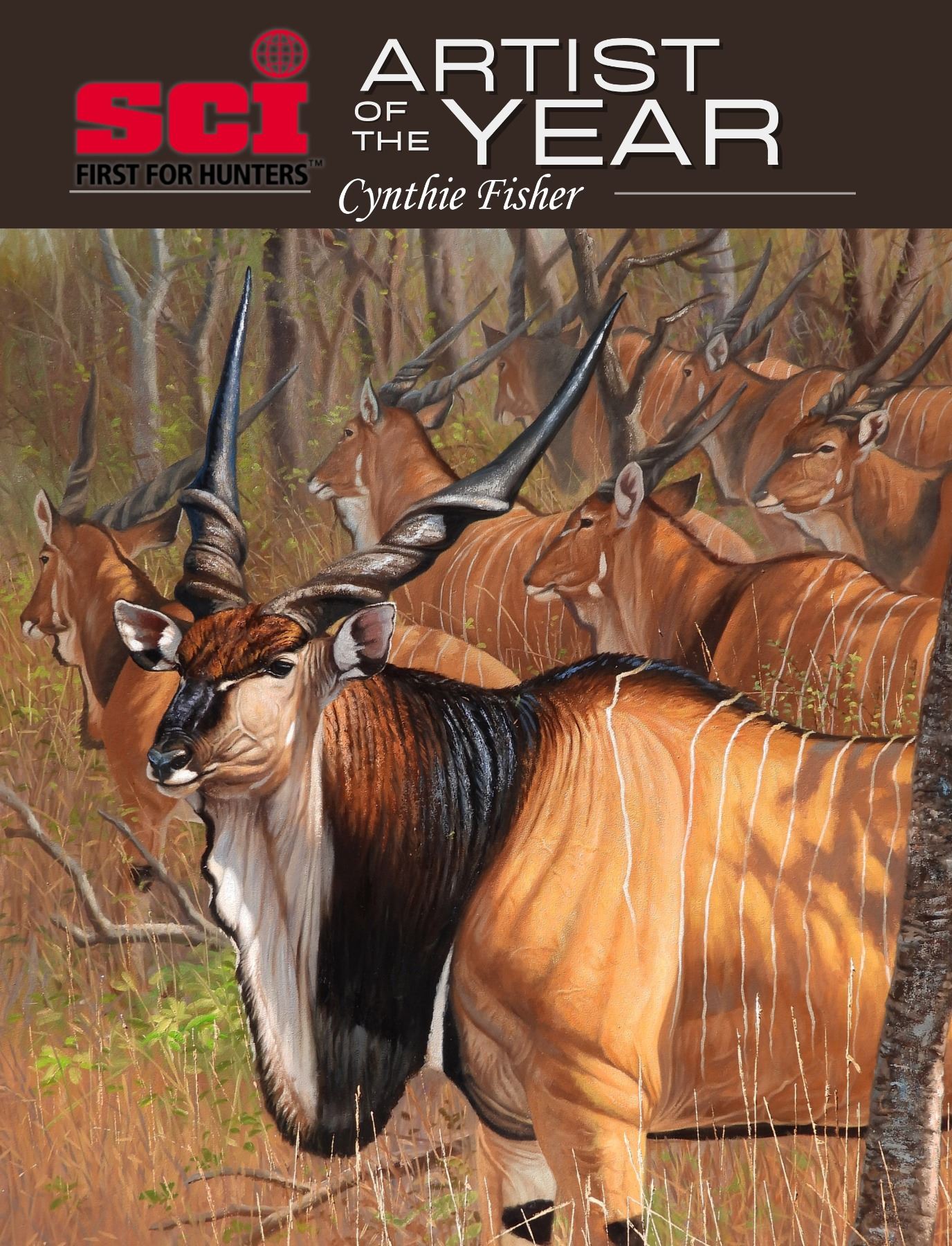 The 2026 SCI Artist of the Year "Lord of Central Africa" by Cynthie Fisher is a framed print #11/100 that captures the raw elegance and quiet intensity of Africa’s iconic plains game. This masterpiece (print measures approximately 20”x22”) is a rare early opportunity for collectors to acquire a highly desirable piece. The artwork is a celebration of wild places, conservation heritage, and the timeless spirit of the hunt.