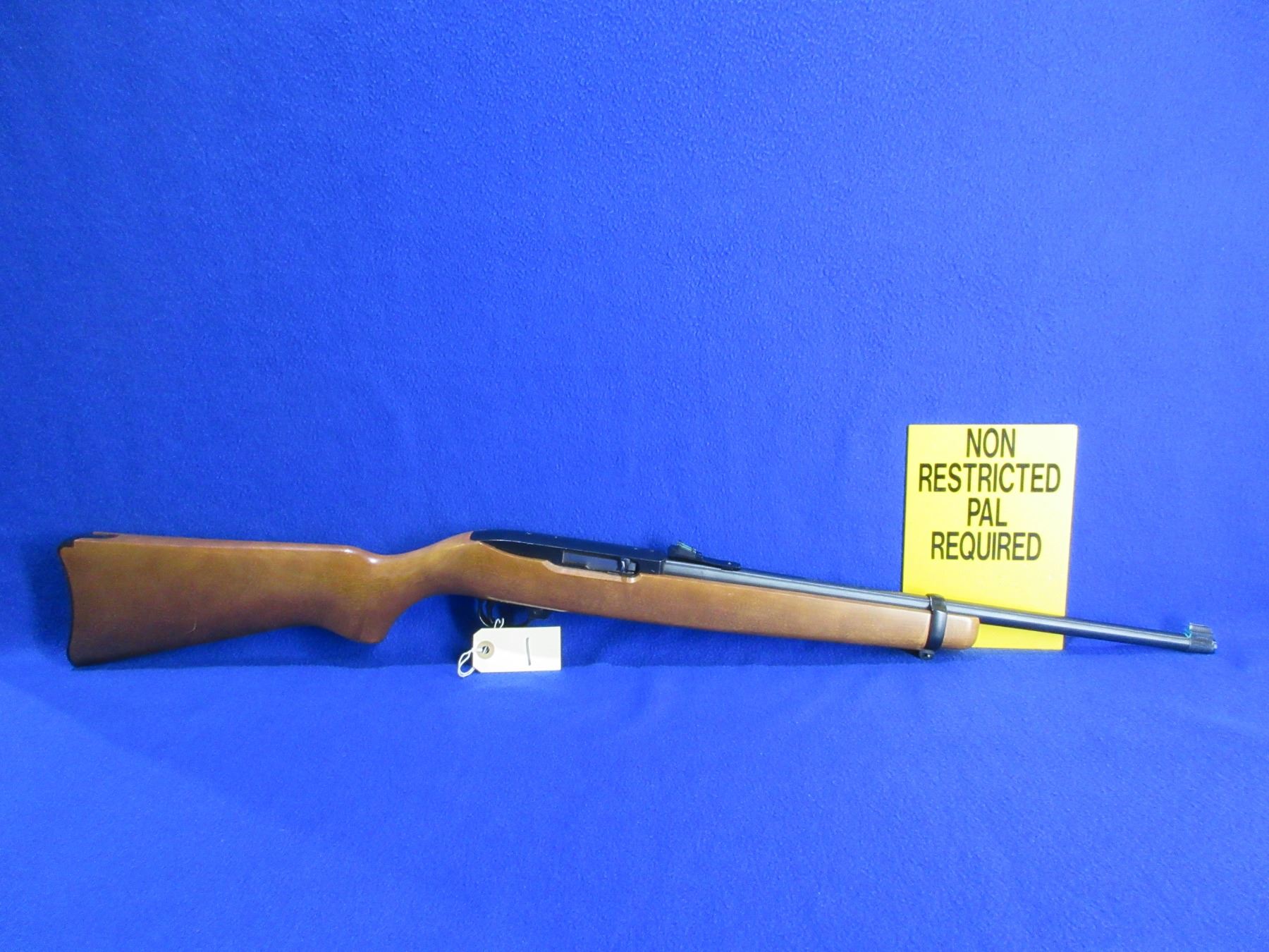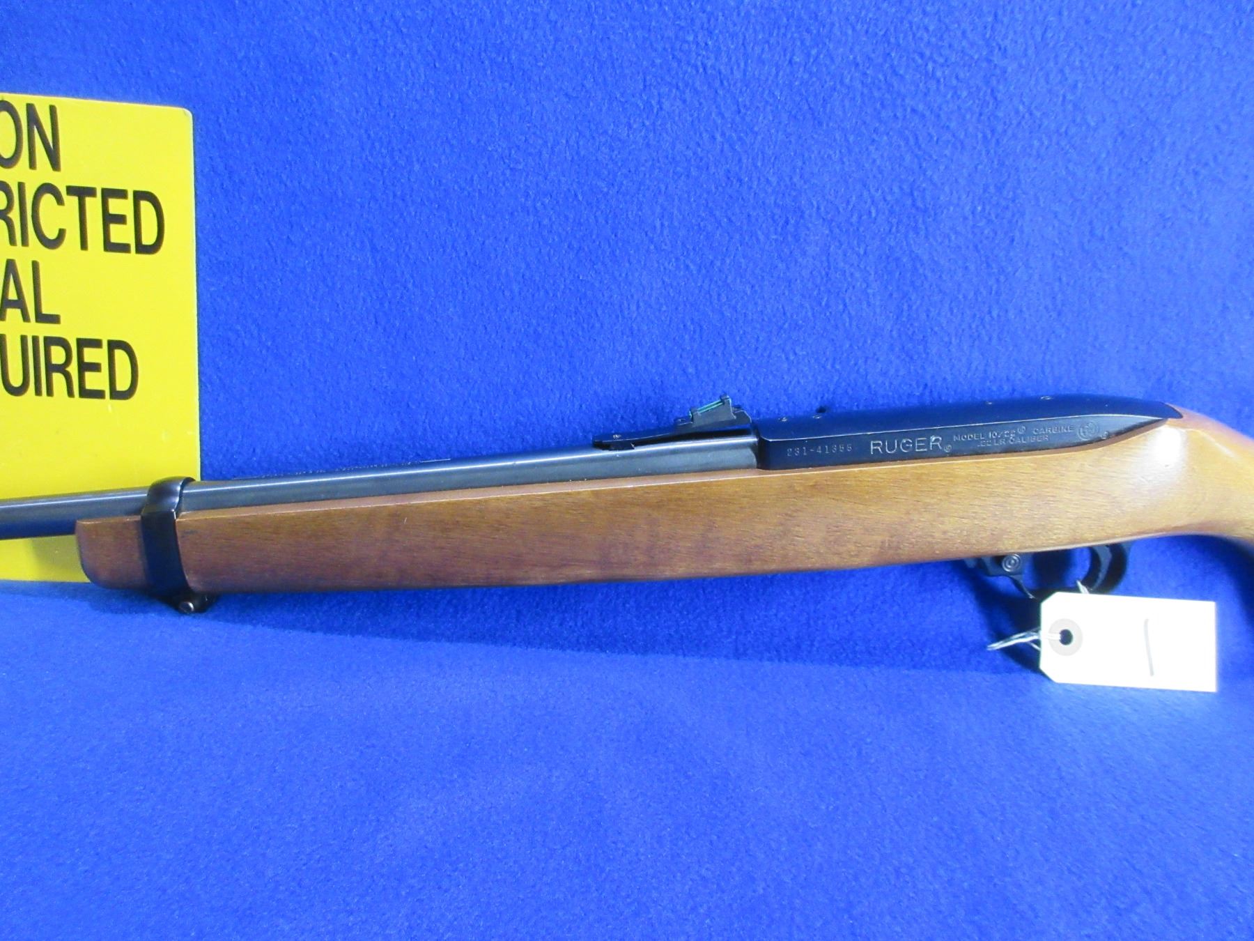 Non-Restricted - Ruger Model 10/22 Carbine in 22LR - This is a semi-auto rifle with removable magazine, action appears to be in good to very good working order. Barrel is 18 1/2", rifling is very good, bluing is good to very good, has fiber optic rear and front blade sights and is drilled and tapped, stock is good to very good with minor usage marks, length of pull is 13 1/2", butt plate good. Ser # 231-41355
