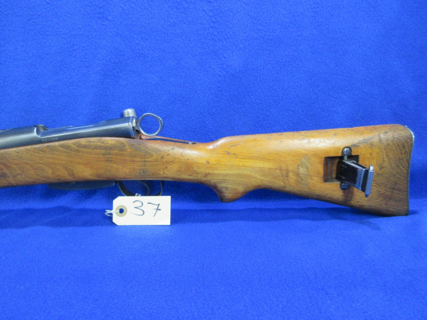 Non-Restricted - Schmidt Rubin in 7.5x55 Swiss - This is a very clean rifle in very nice condition, it is a straight pull bolt action rifle with removable magazine, action appears to be in good to very good working order. Barrel is 25 1/2", rifling is good to very good, bluing is good to very good, has both sights, full wood stock is good for age with usage marks, length of pull is 12 3/4", metal butt plate good, comes with swivels. Ser # 904366