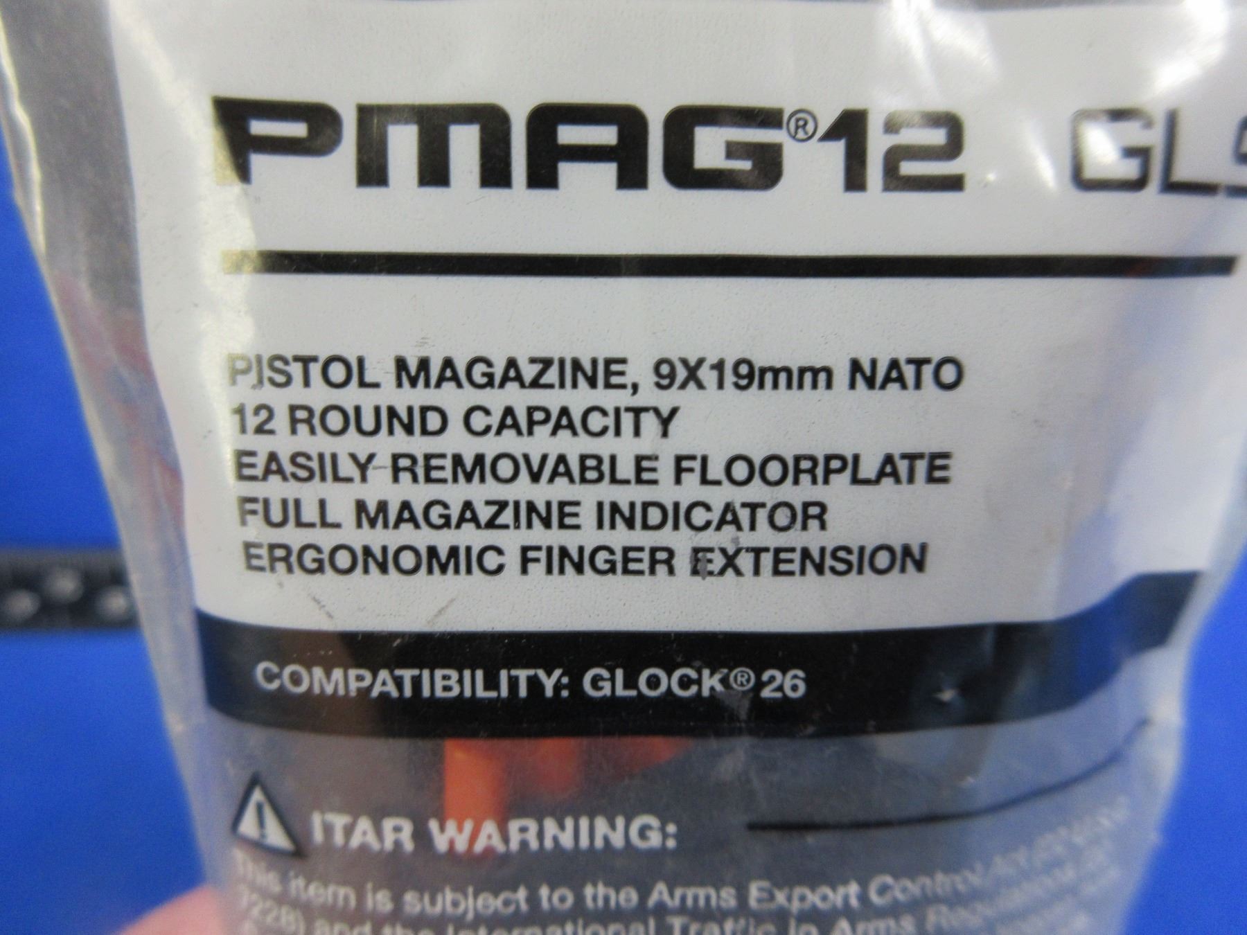 Lot 45 NEW - Magpul 9X19MM PMAG 12 GL9 - 12 Round Magazine, Pinned to 10 - PAL Required