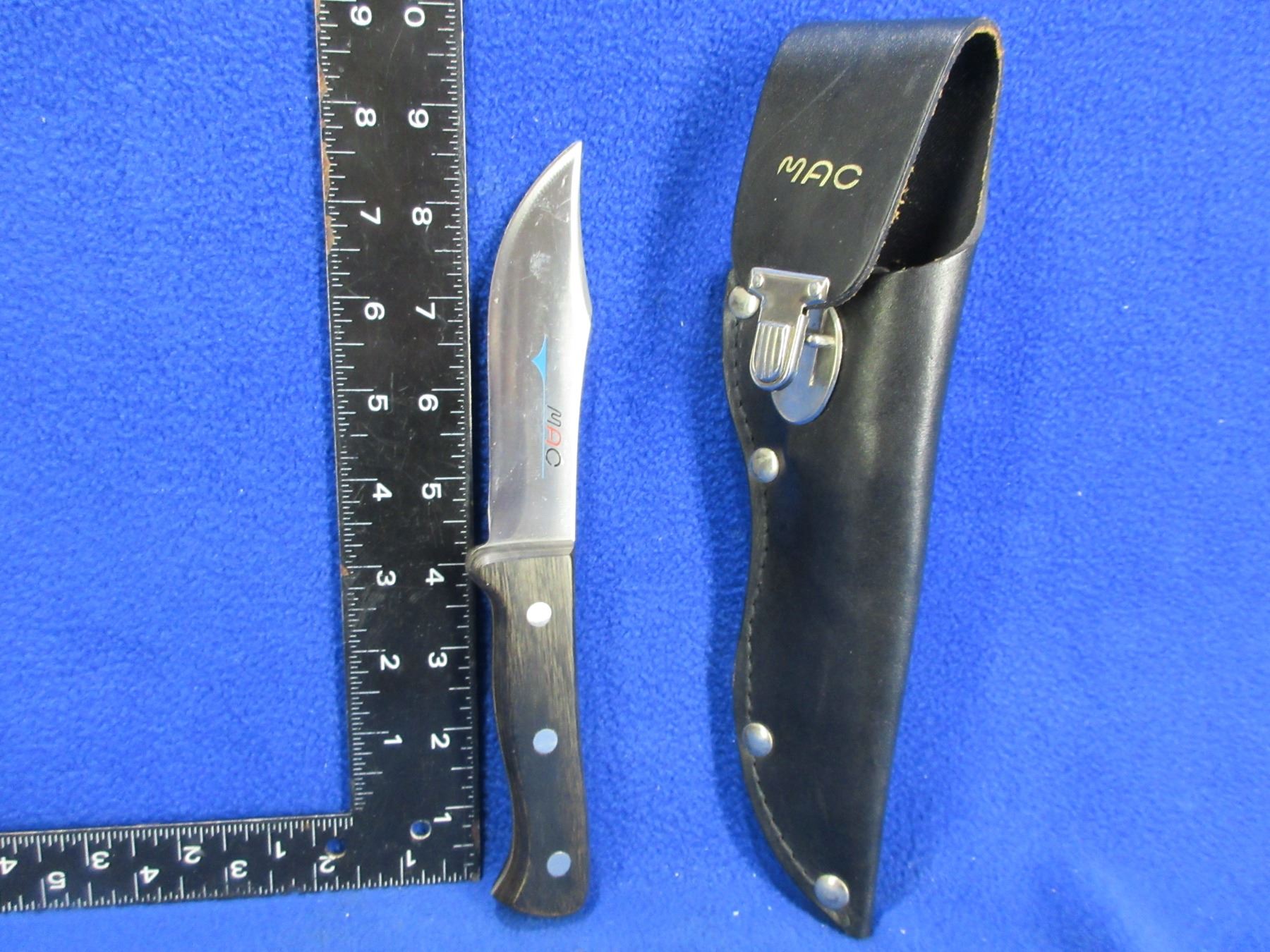 MAC Fixed Blade Knife with Leather Sheath - 4 1/2" Blade, 8 3/4" Total Length