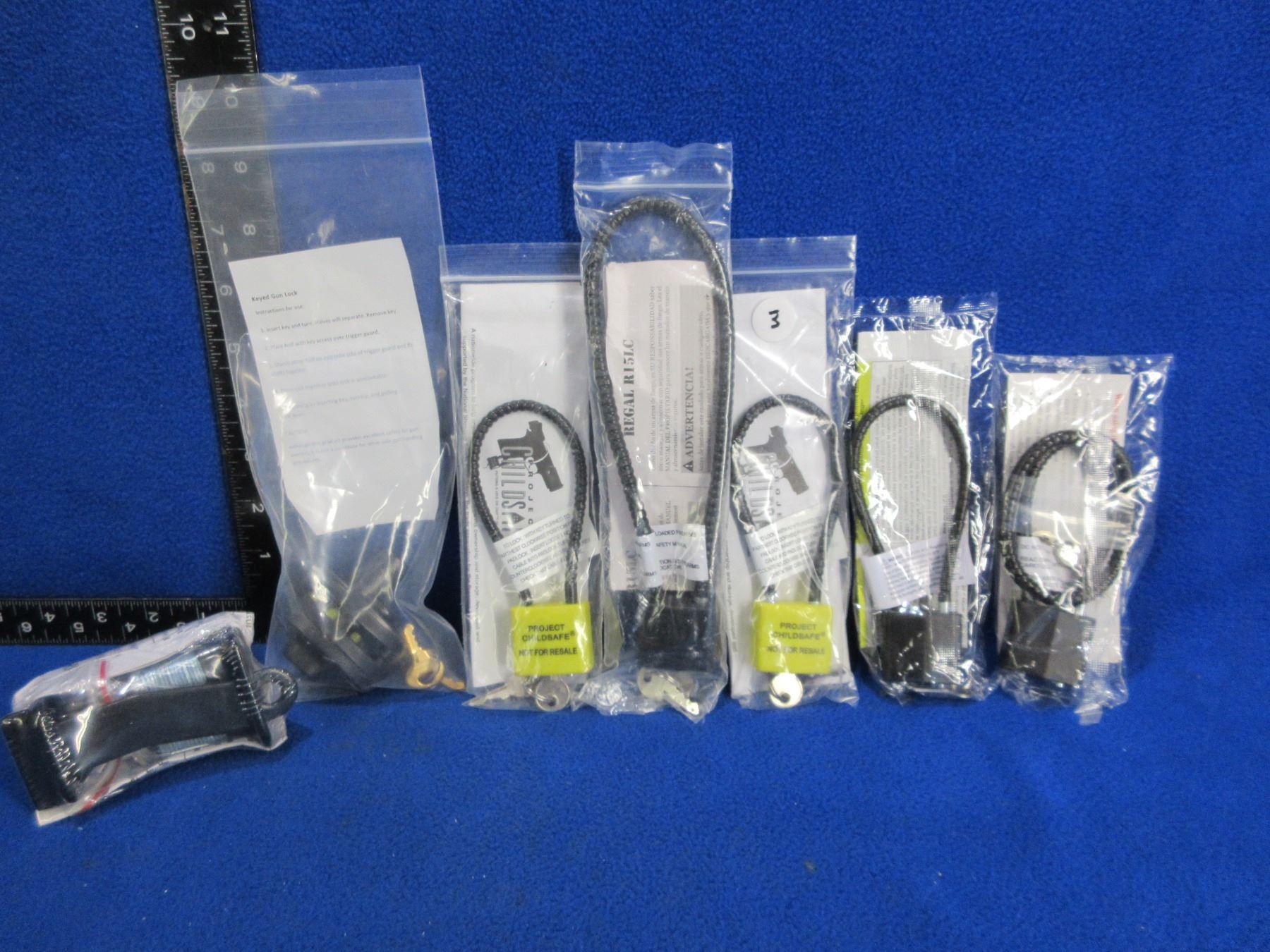 5 Cable Locks, Trigger Lock and Shot Lock - All with 2 Keys Each