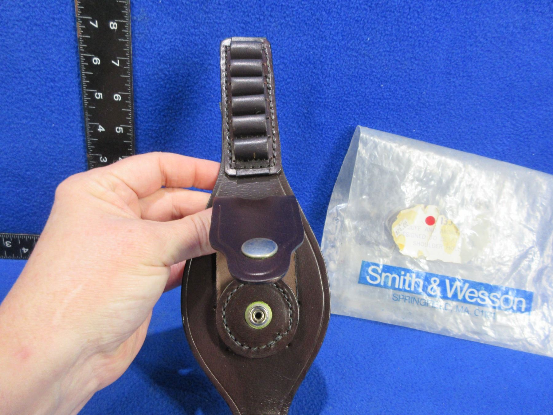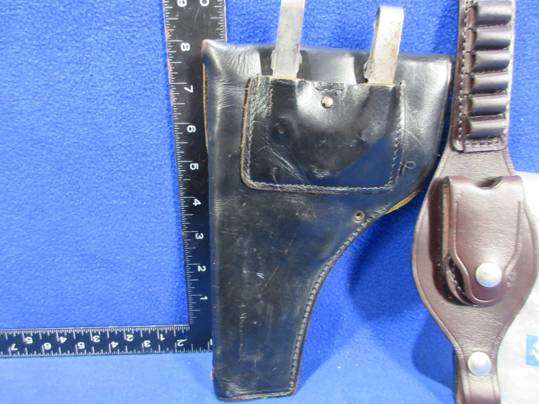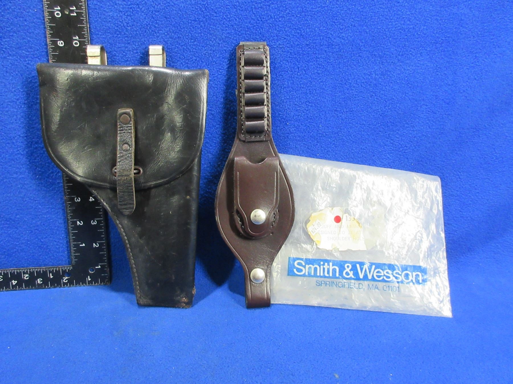 Lot 91 WWII Beretta 92F Style Leather Holster & S&W 135 Handcuff/Ammo Strap