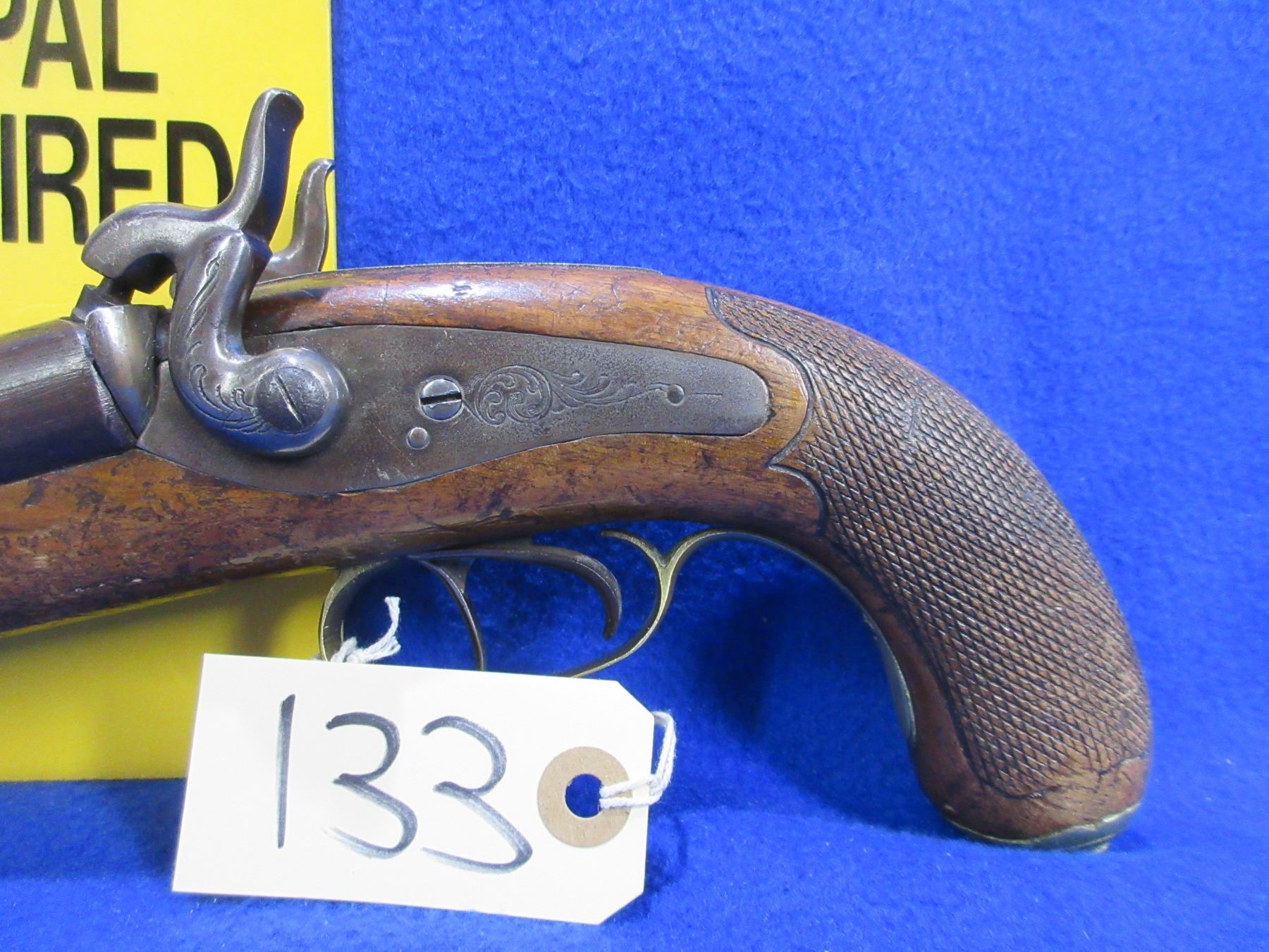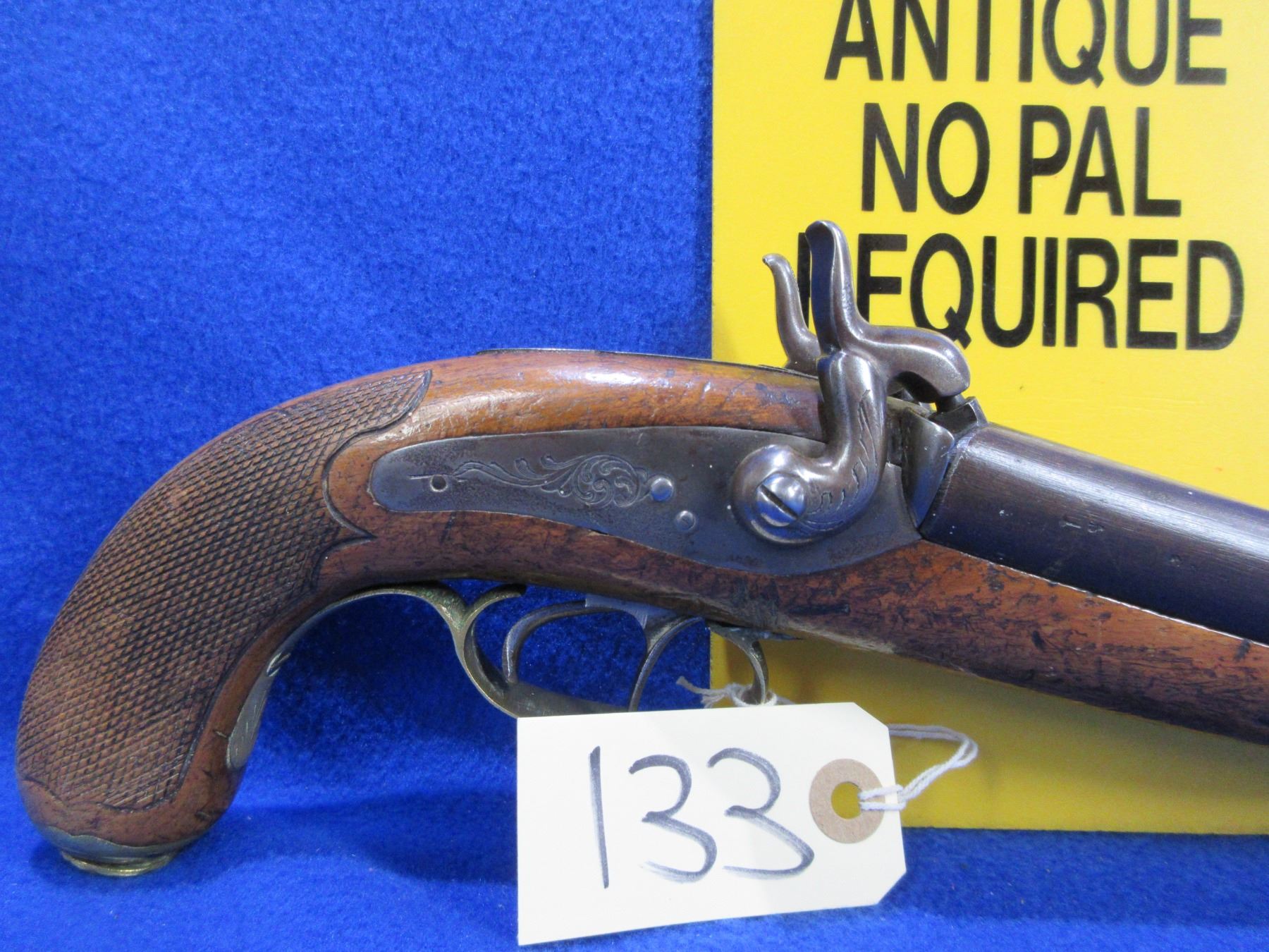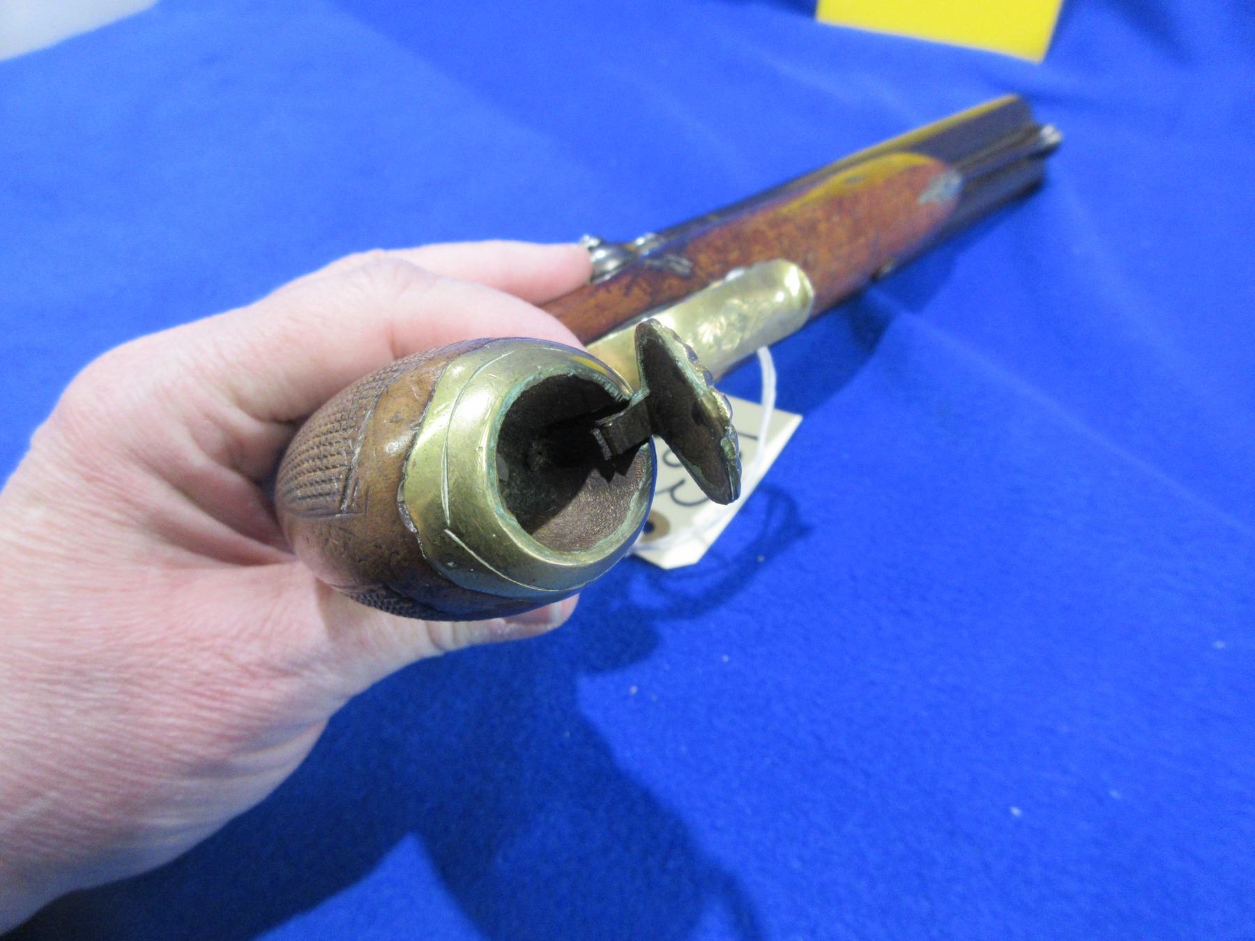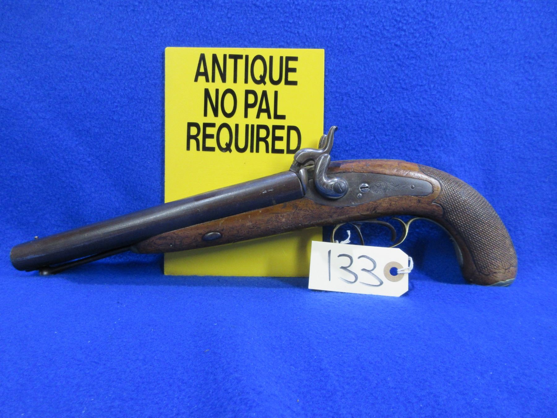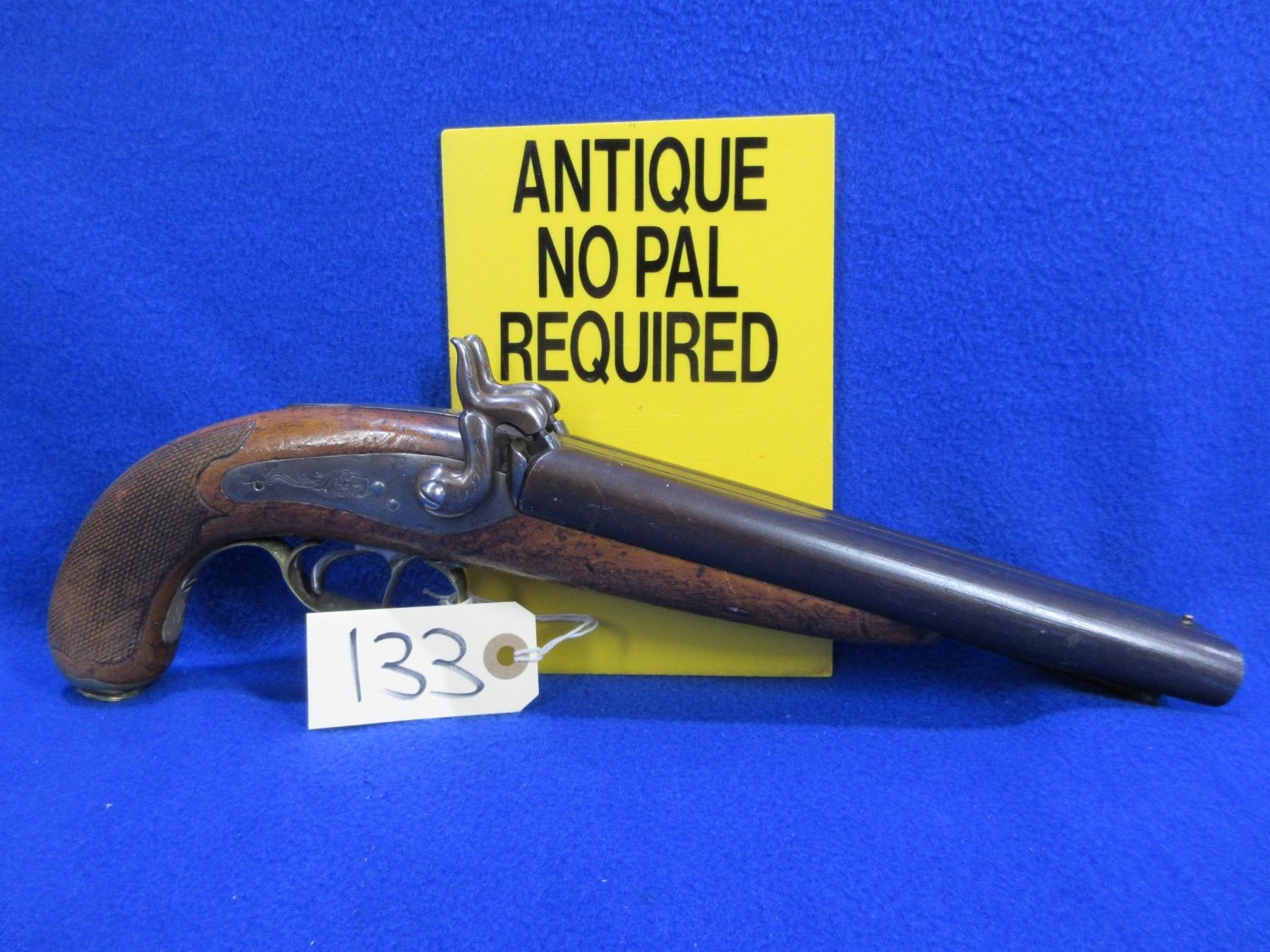 Lot 133 Antique - No PAL Required - Howdah Cap & Ball SXS Pistol in appears to be 20 Ga.