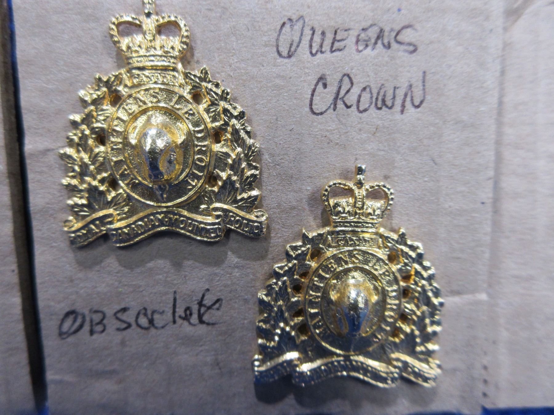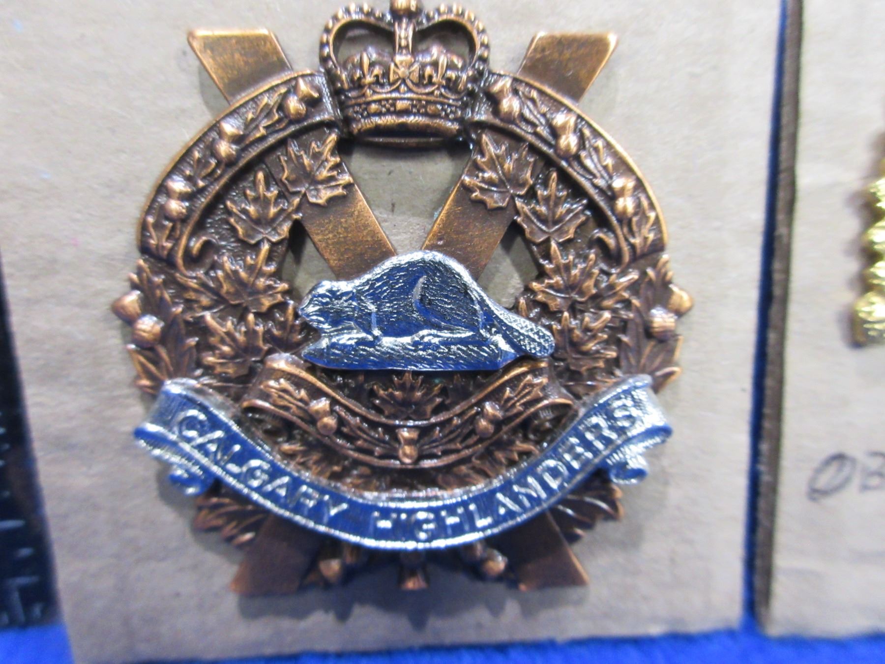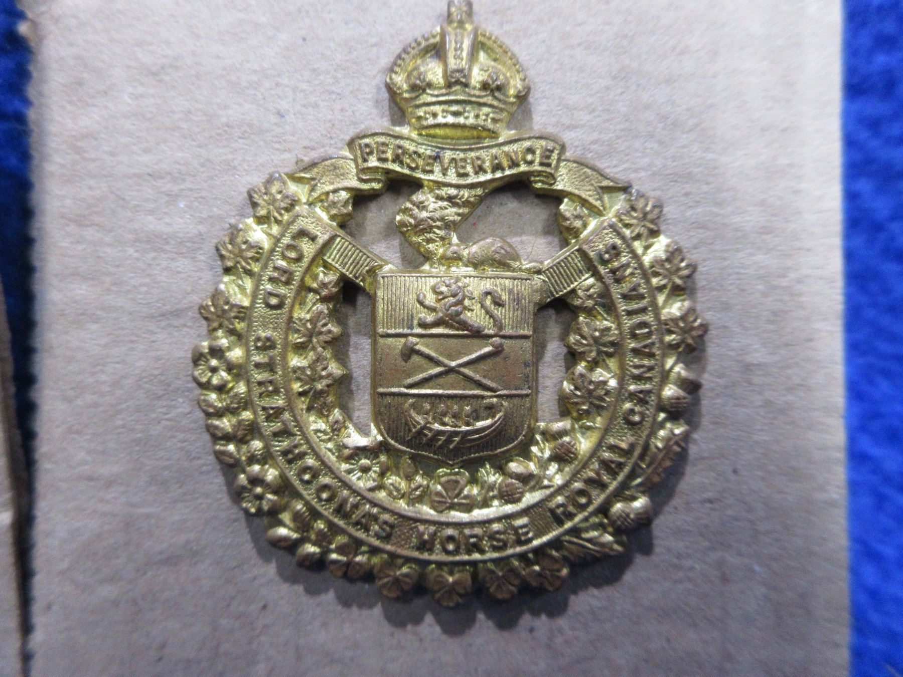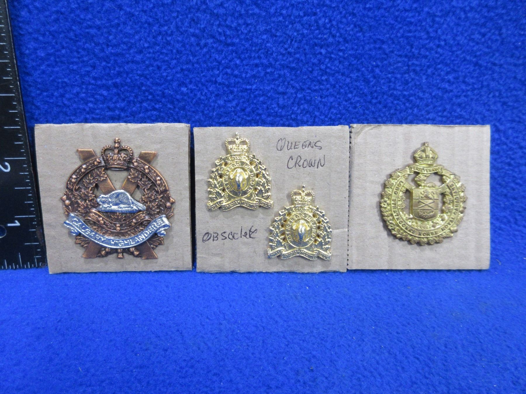 2 Cap Badges & 2 Collar Badges - Lord Strathcona Horse, Calgary Highlanders and 2 Queens Crown Collar Badges