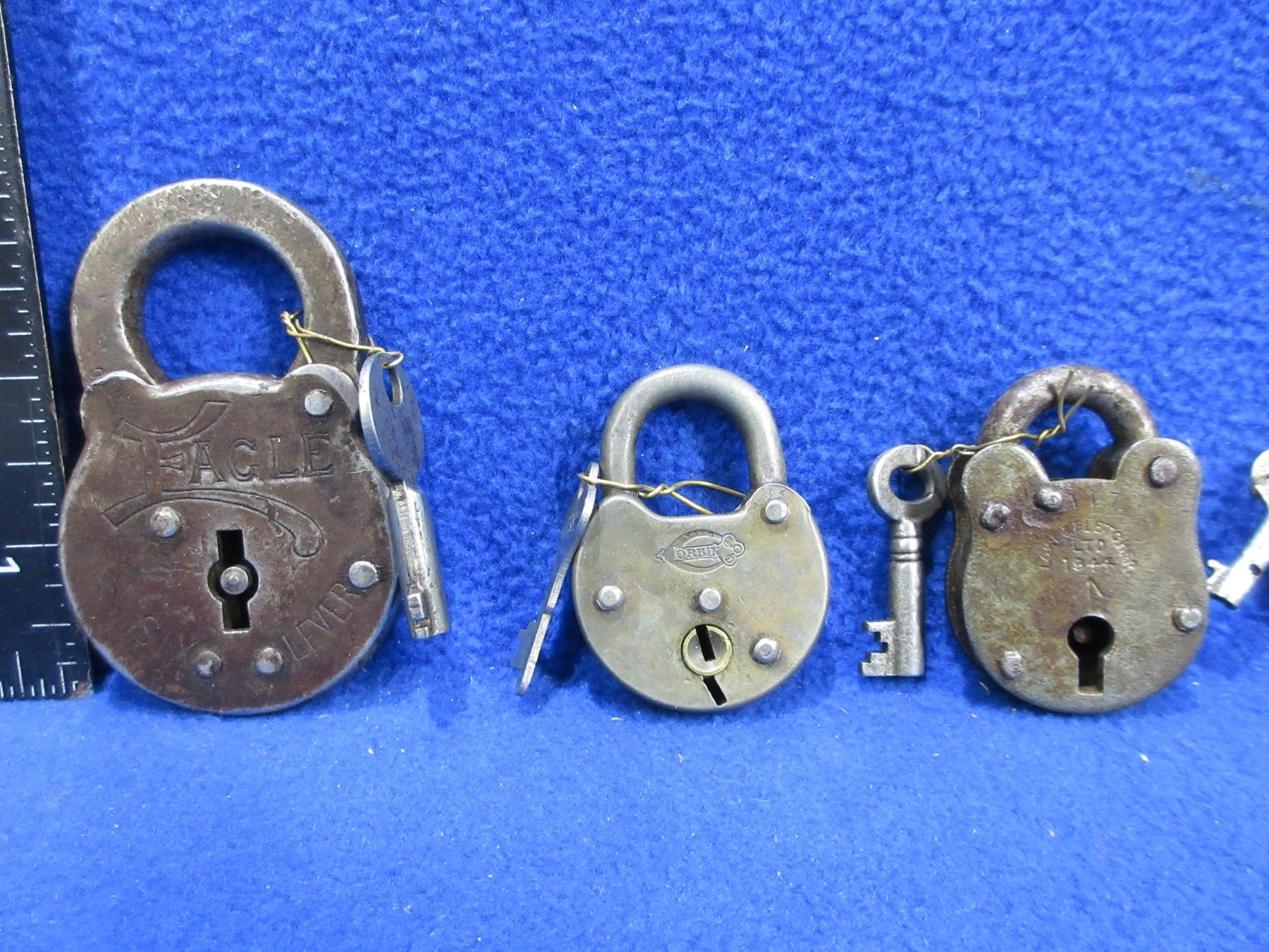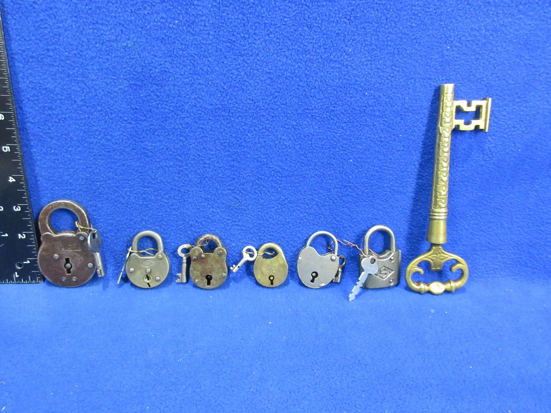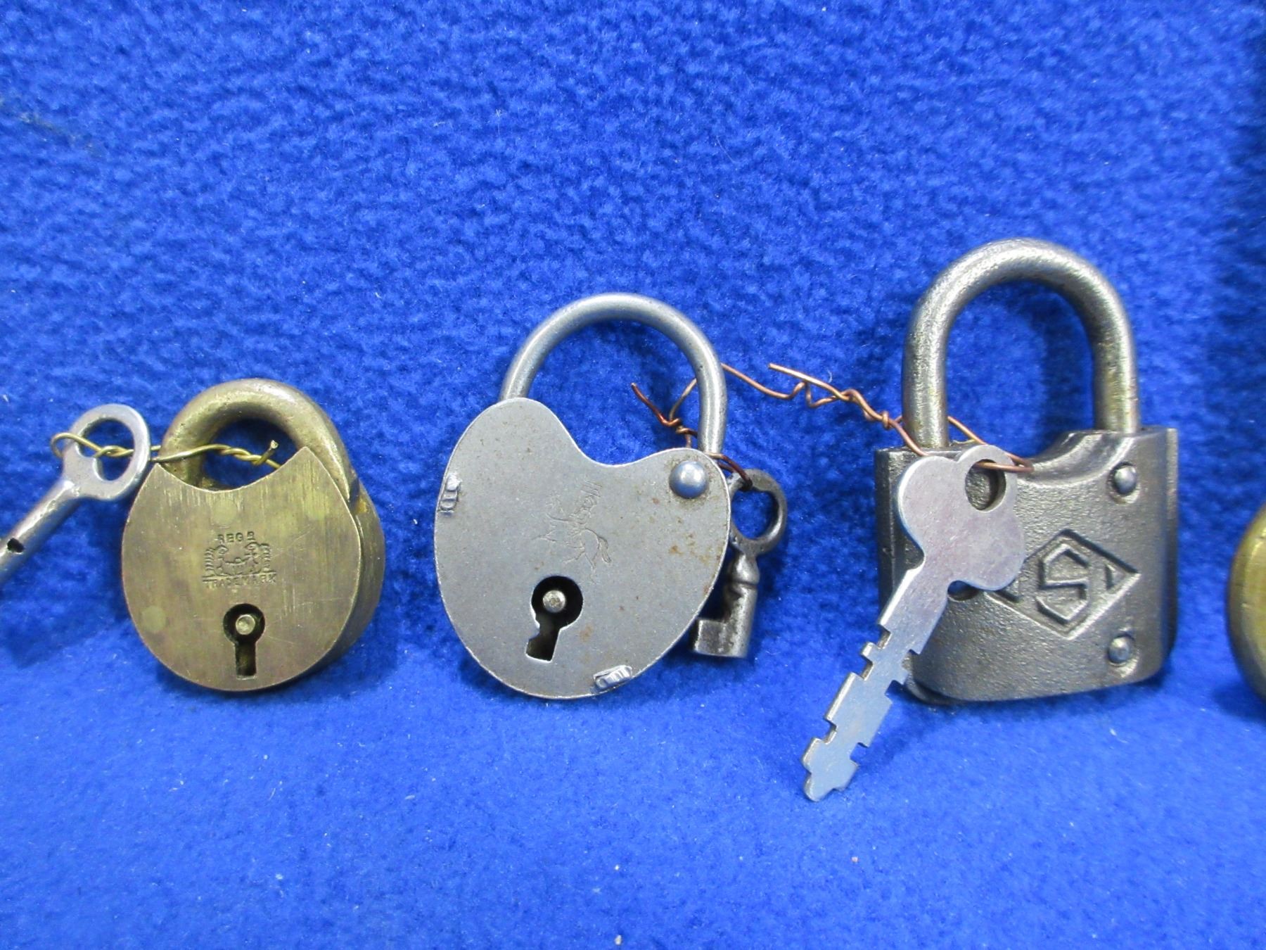Lot 162 6 Vintage Padlocks with 1 Key Each & Brass Skeleton Key Bottle Opener