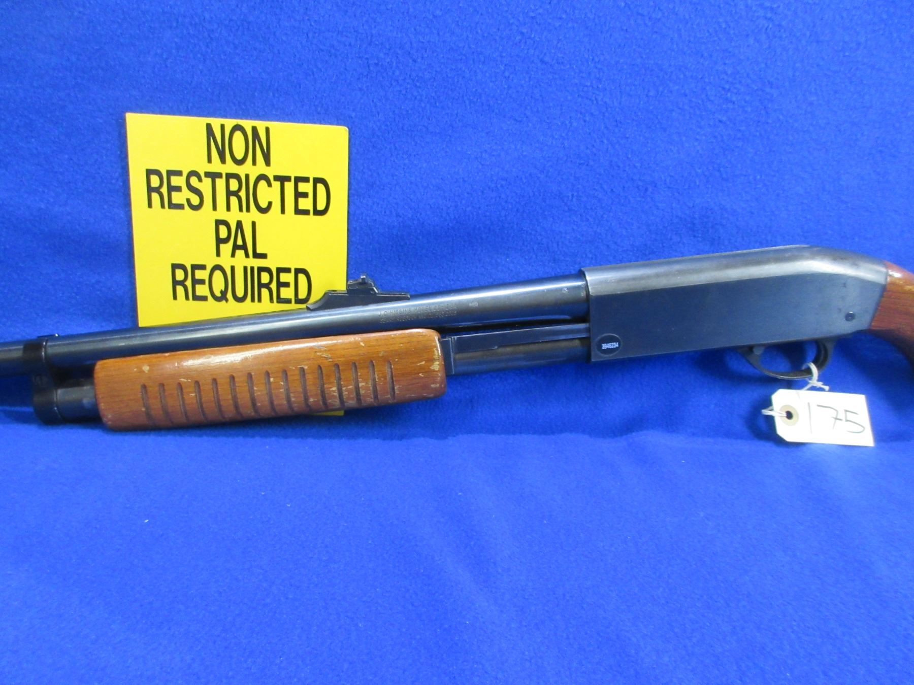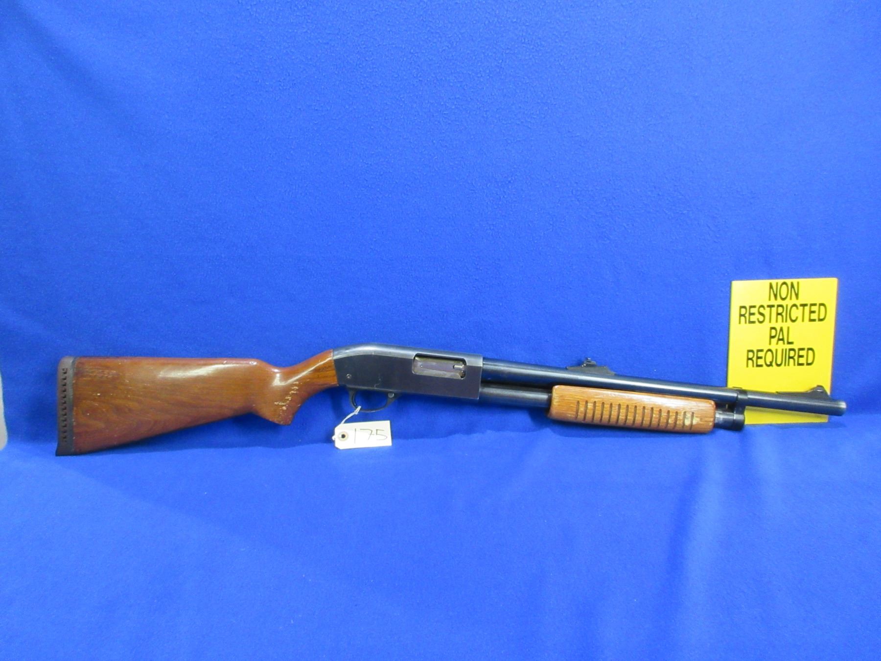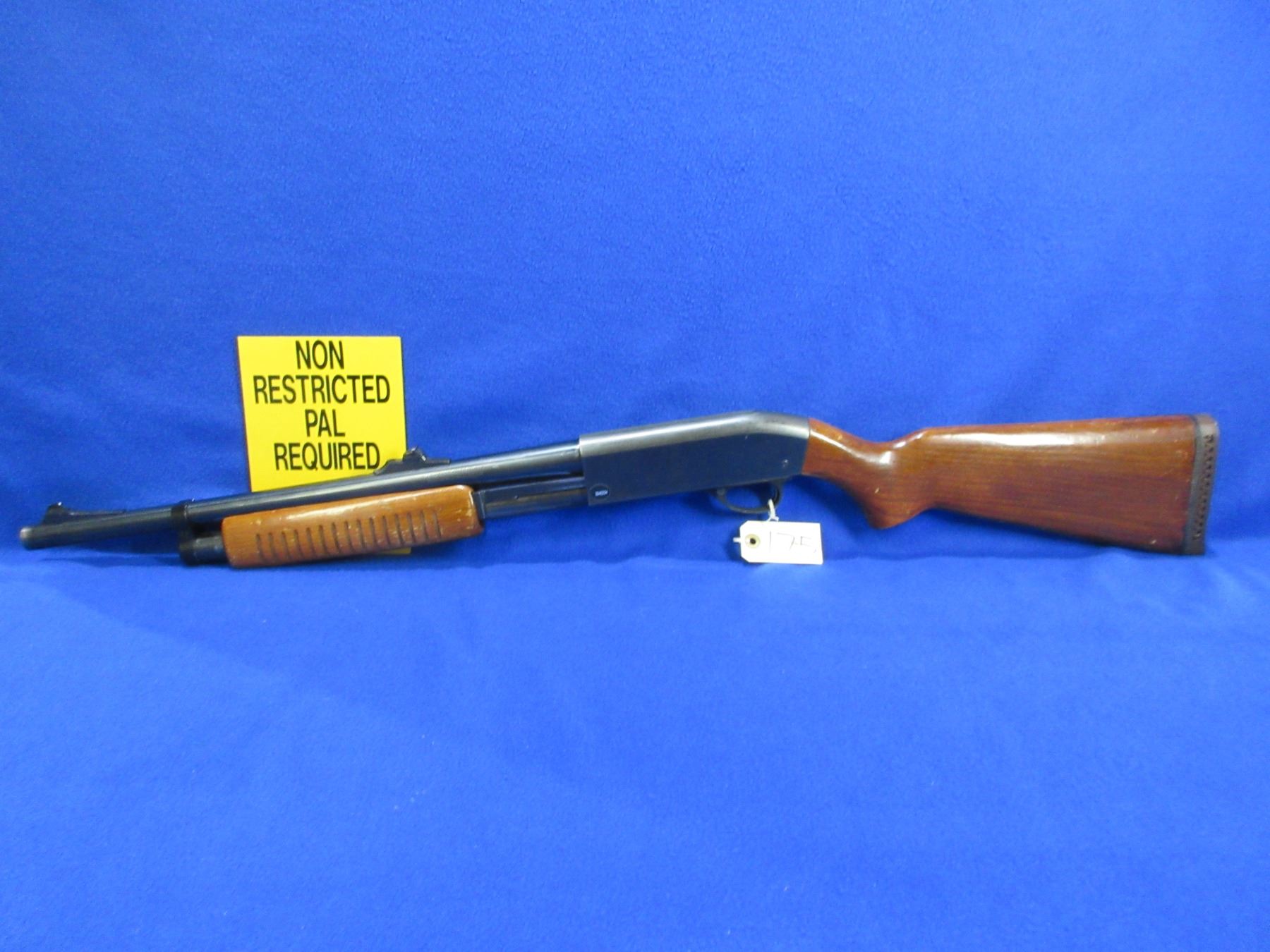 Non-Restricted - JC Higgins Sears Roebuck Model 20 in 12 Ga. 2 3/4" - This is a pump action shotgun with tube magazine, action appears to be in good to very good working order. Barrel is 18 3/4", bore is good, bluing is good, has both iron sights, stock is good with usage marks, forearm is good with usage marks, length of pull is 14 3/4", rubber recoil pad turning hard. Ser #394623 on sticker