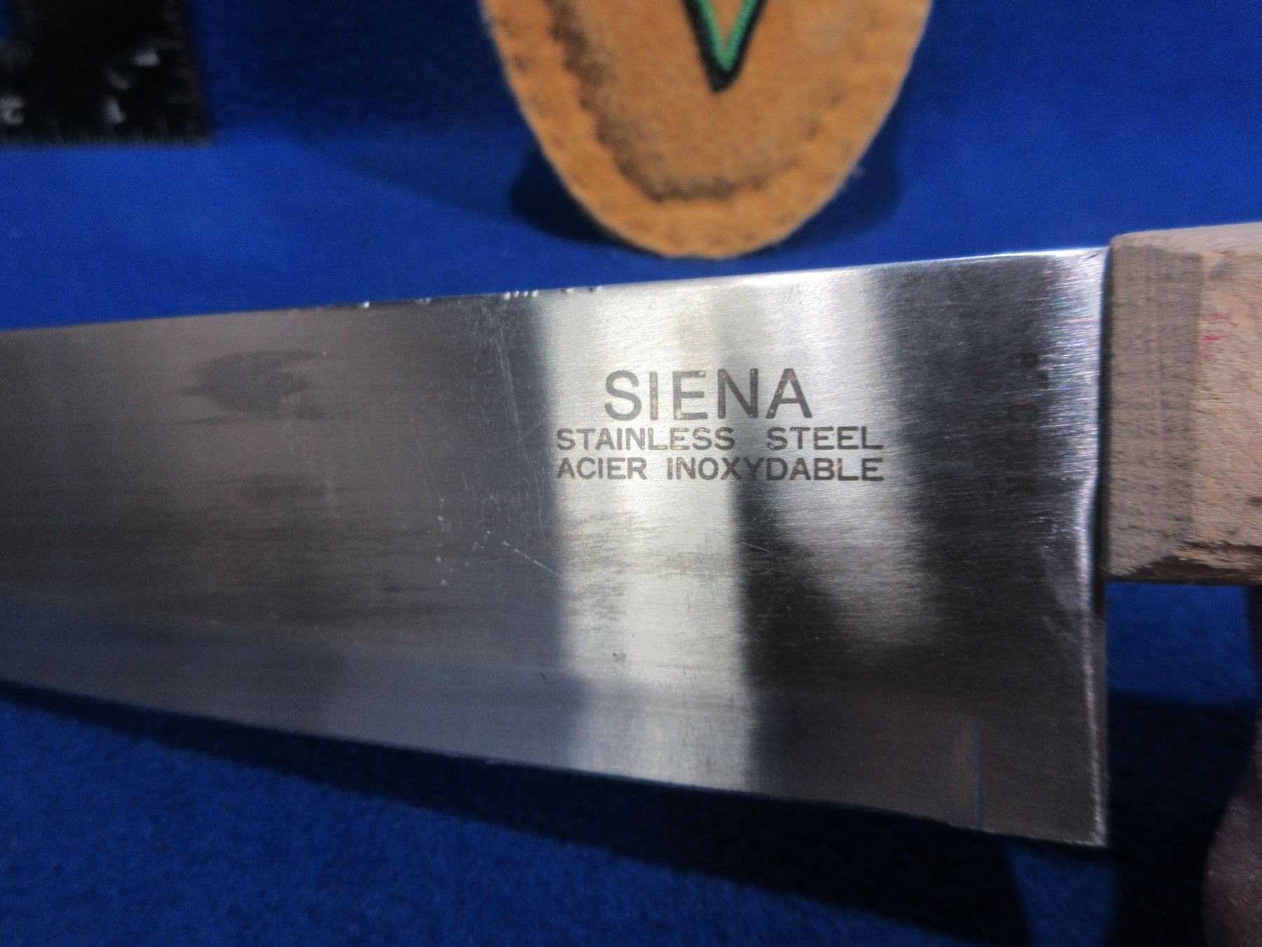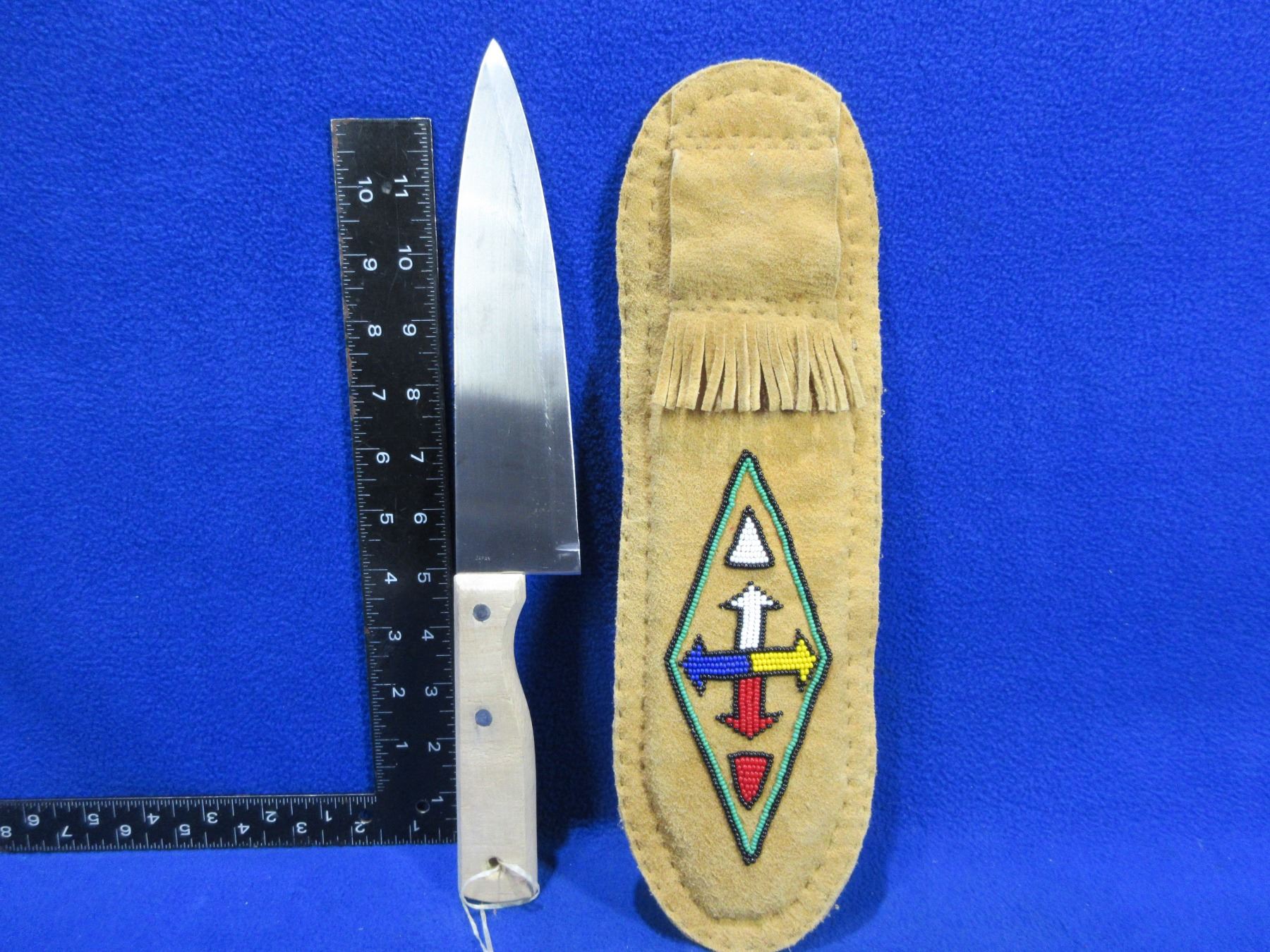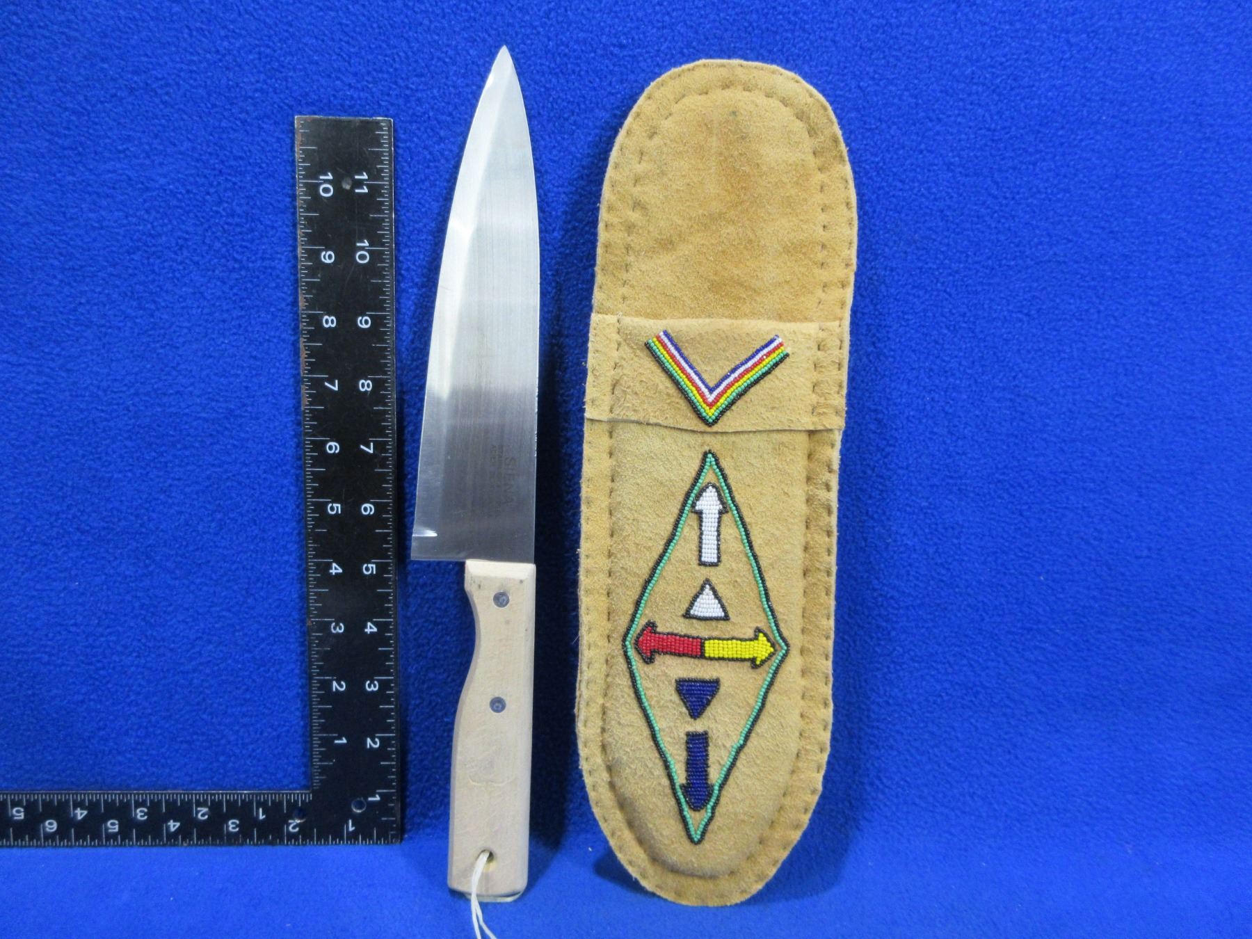 Siena 8" Cook Knife with Nicely Beaded Leather Sheath - Knife Blade Tip has a Small Dent
