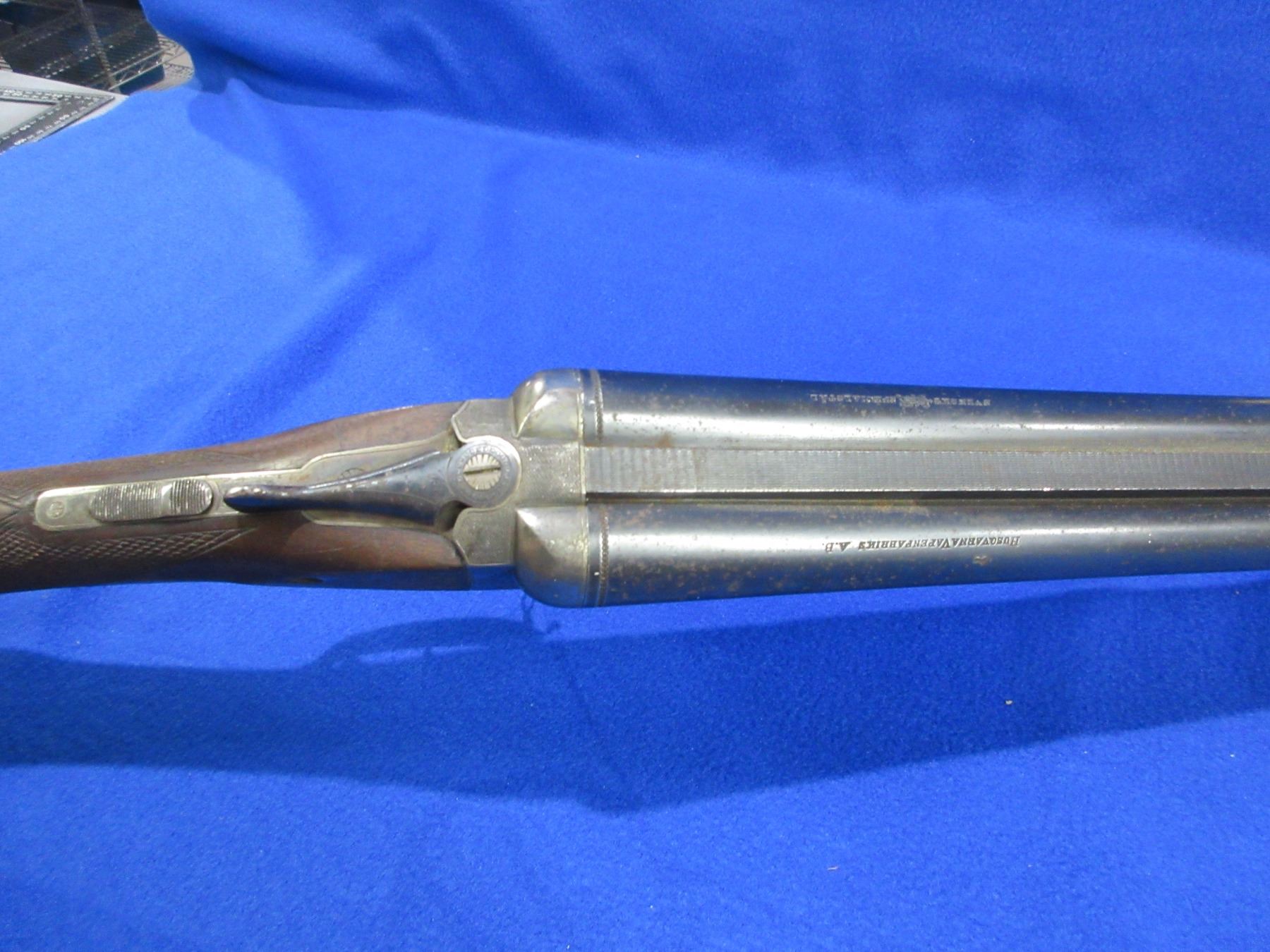 Non-Restricted - Husqvarna Model 610 in 12 Ga. 2 3/4" - This is a tip up SXS shotgun, action is tight and appears to be in working order but front trigger is not working correctly. Barrels are 27 1/2", bores are good, bluing is fair to good with light pitting, has bead front sight, stock has a hairline crack behind the upper tang, forearm is good with usage marks, length of pull is 14", butt plate good, comes with swivels. Ser # 215383