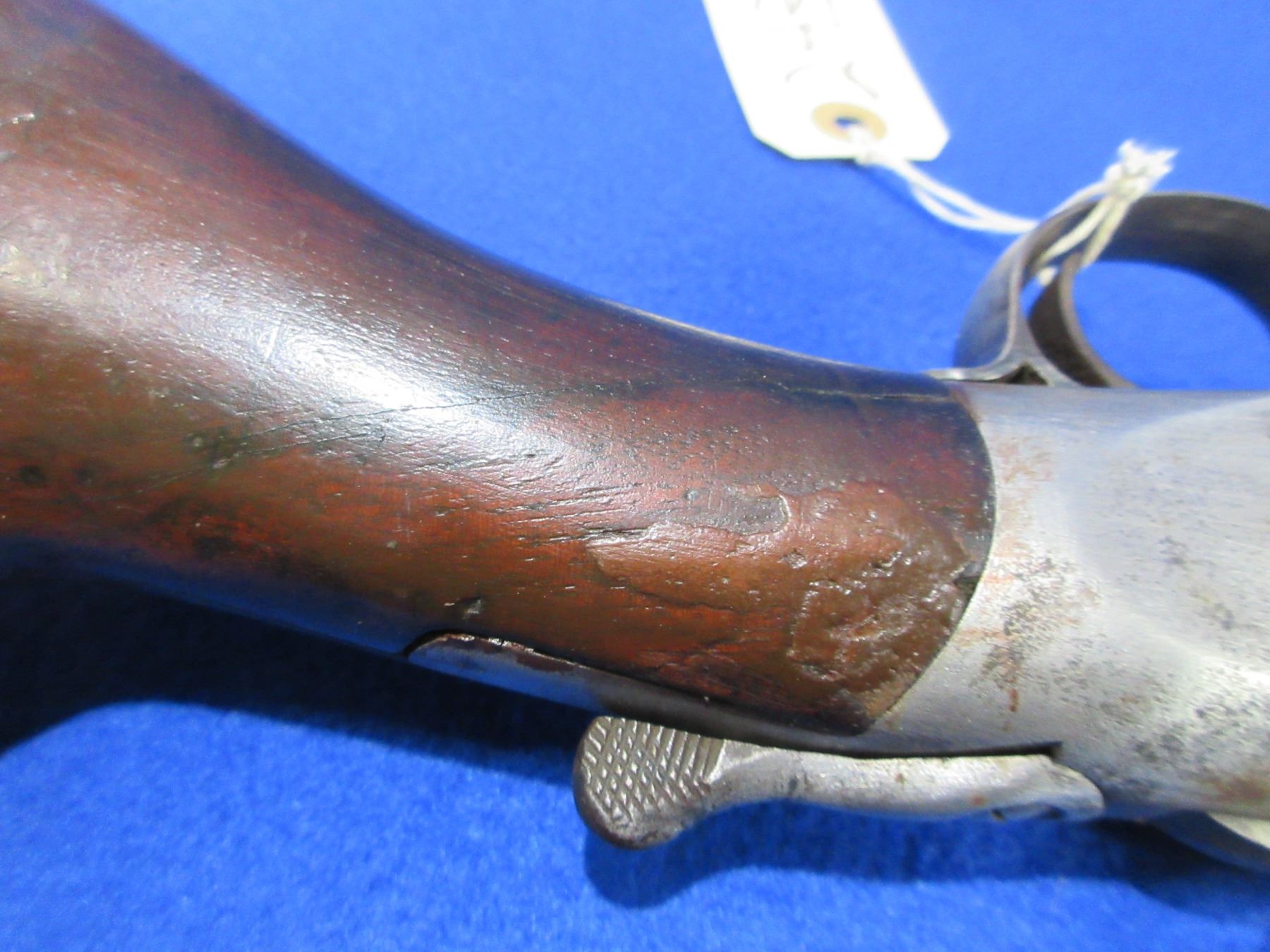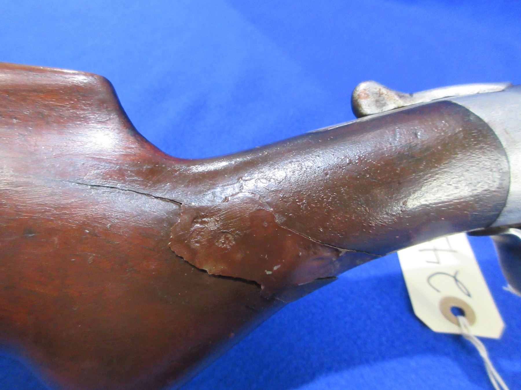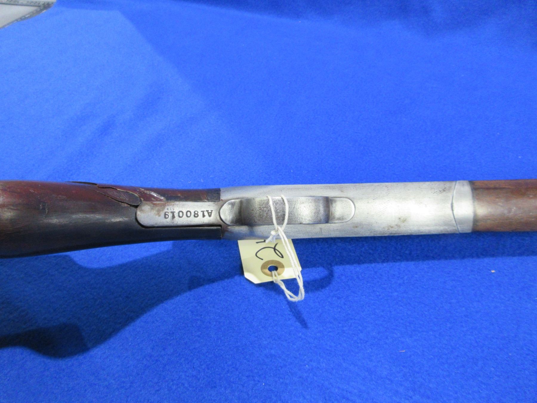 Non-Restricted - Harrington & Richardson in 12 Ga. 2 3/4" - This is a tip up single shot shotgun, action is tight and appears to be in good working order. Barrel is 29 7/8", bore is fair to good, bluing is gone, has bead front sight, stock has cracks and crack repairs in the wrist area, forearm is good with many usage marks, length of pull is 14", butt plate has a small chip on the toe. Ser # A180019