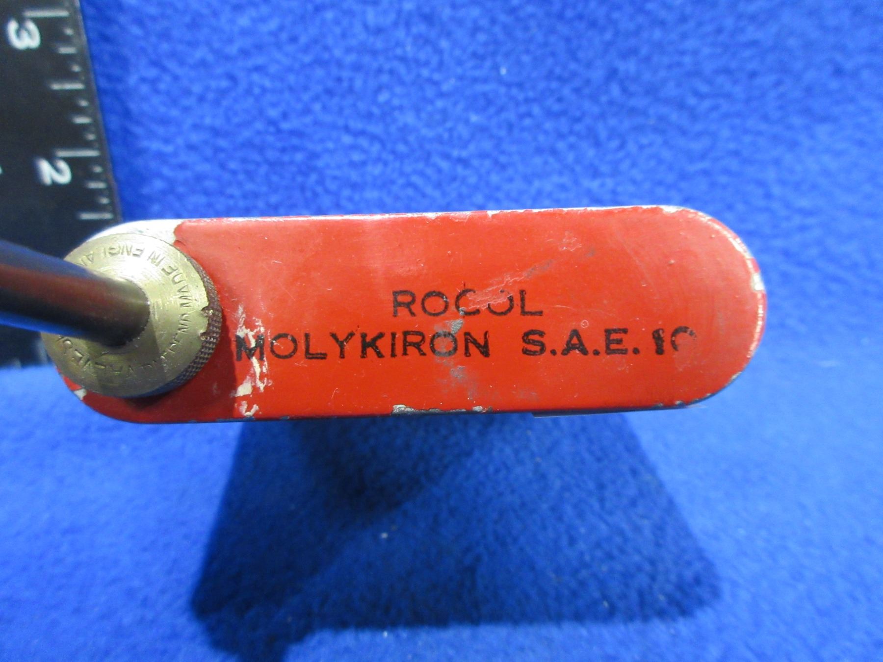 Lot 258 Vintage Valve Spout Oil Can Marked "Rocol Molykiron SAE 10"