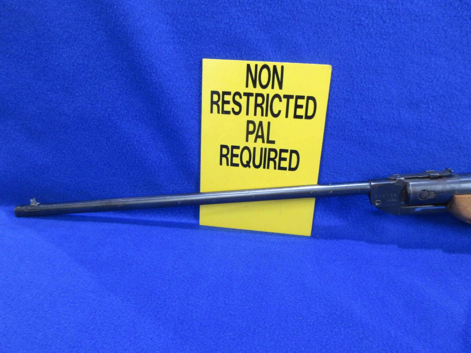 Non-Restricted - Slavia Model 620 Air Rifle in .177 Cal. - This is a break barrel action single shot air rifle, action appears to be in good working order. Barrel is 19 1/4", rifling is good to very good, bluing has some rust and pitting, has both sights, stock is good with usage marks, length of pull is 14 1/4". Ser # 548758