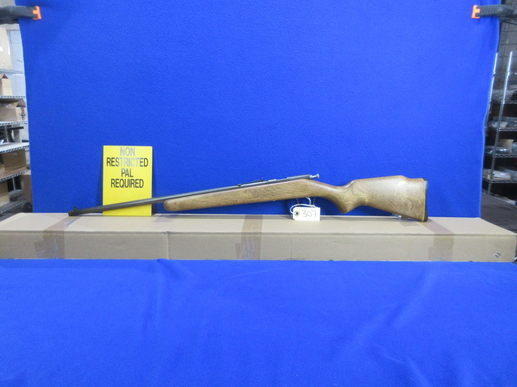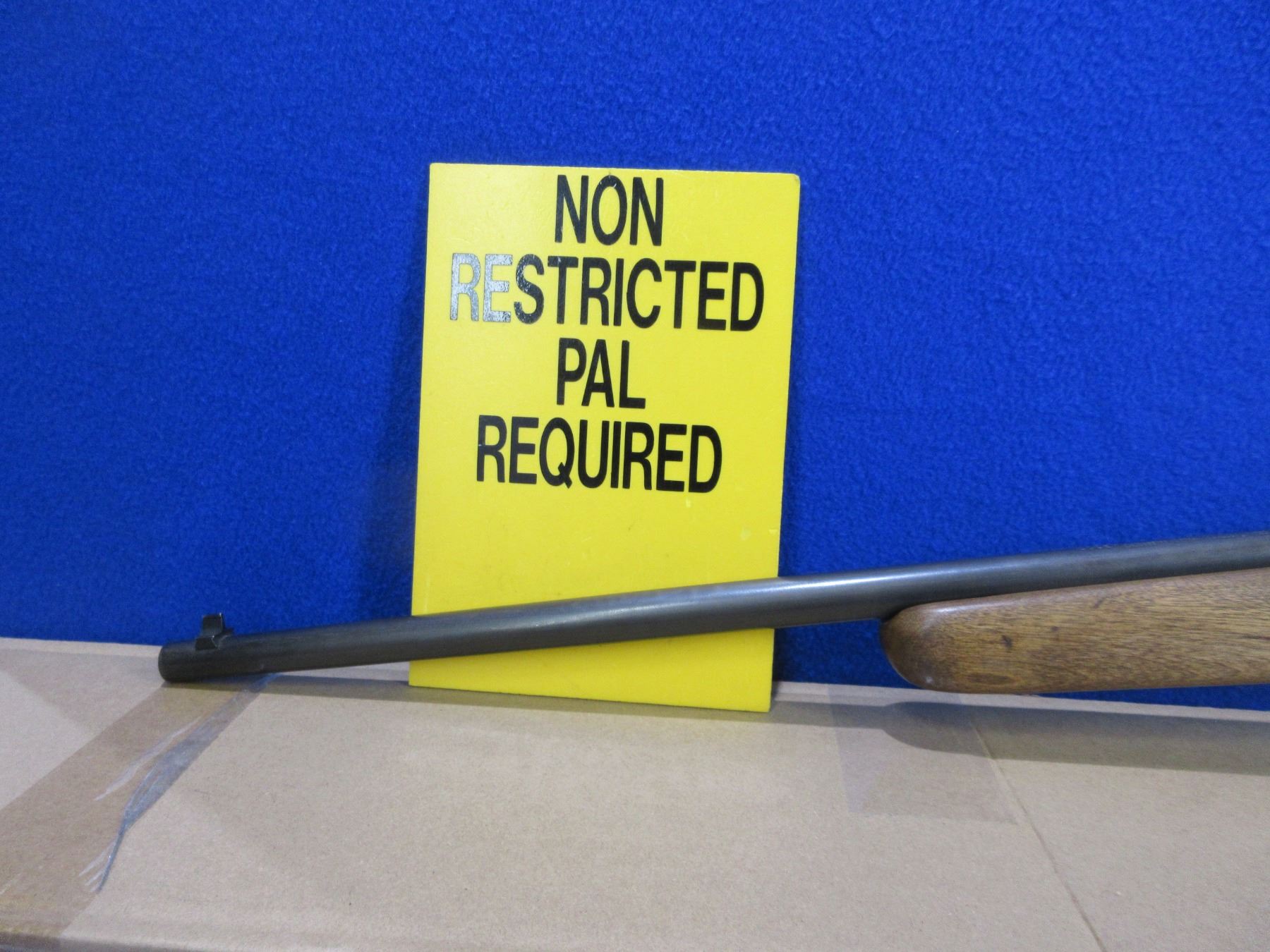 Non-Restricted - Cooey by Winchester Model 39 in 22 S/L/LR - This is a bolt action single shot rifle, action appears to be in good to very good working order. Barrel is 22", rifling is good to very good, bluing is good but turning grey, has both sights, stock is good with minor usage marks, length of pull is 12 1/2", butt plate good, comes with box. Ser # None