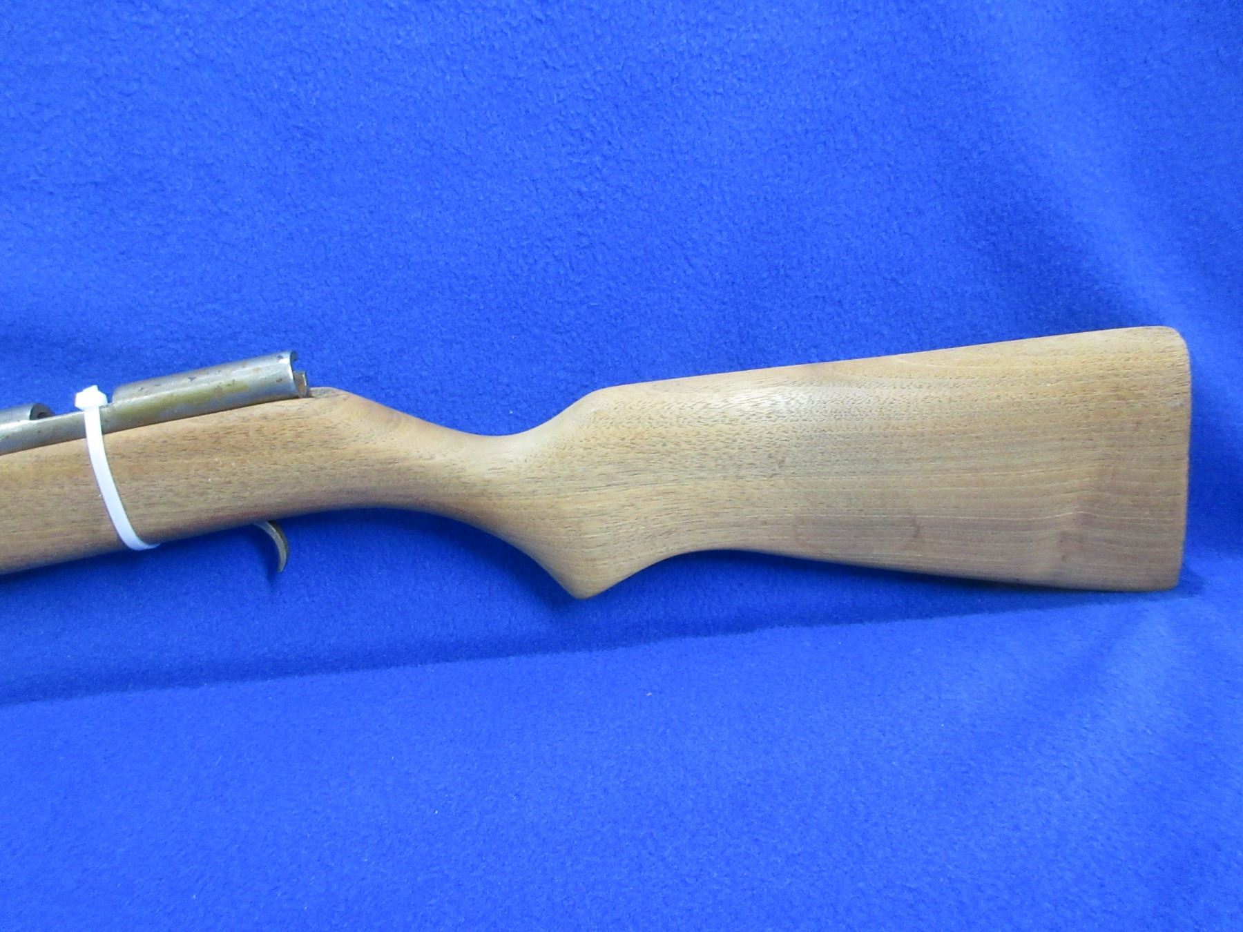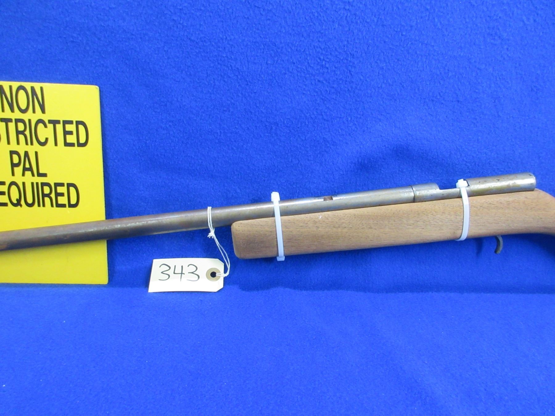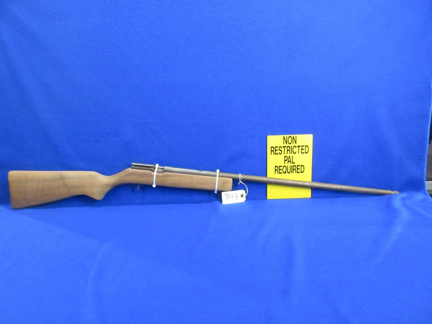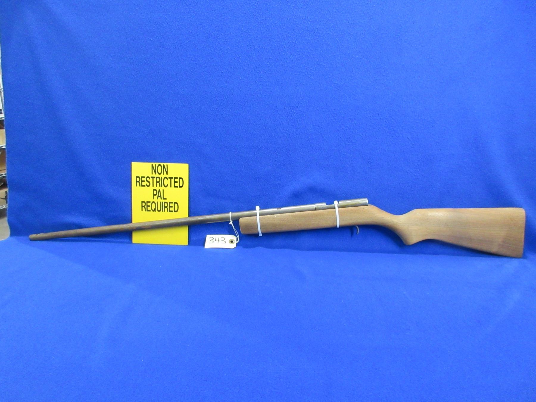 Non-Restricted - Hiawatha Single Shot in 22 S/L/LR - This is a bolt action rifle parts gun (bolt missing). Barrel, stock and trigger assembly only. Barrel is 27", rifling is good, bluing is gone with light rust and pitting, sights are missing, stock is good but unfinished , length of pull is 14 1/4". Ser # None