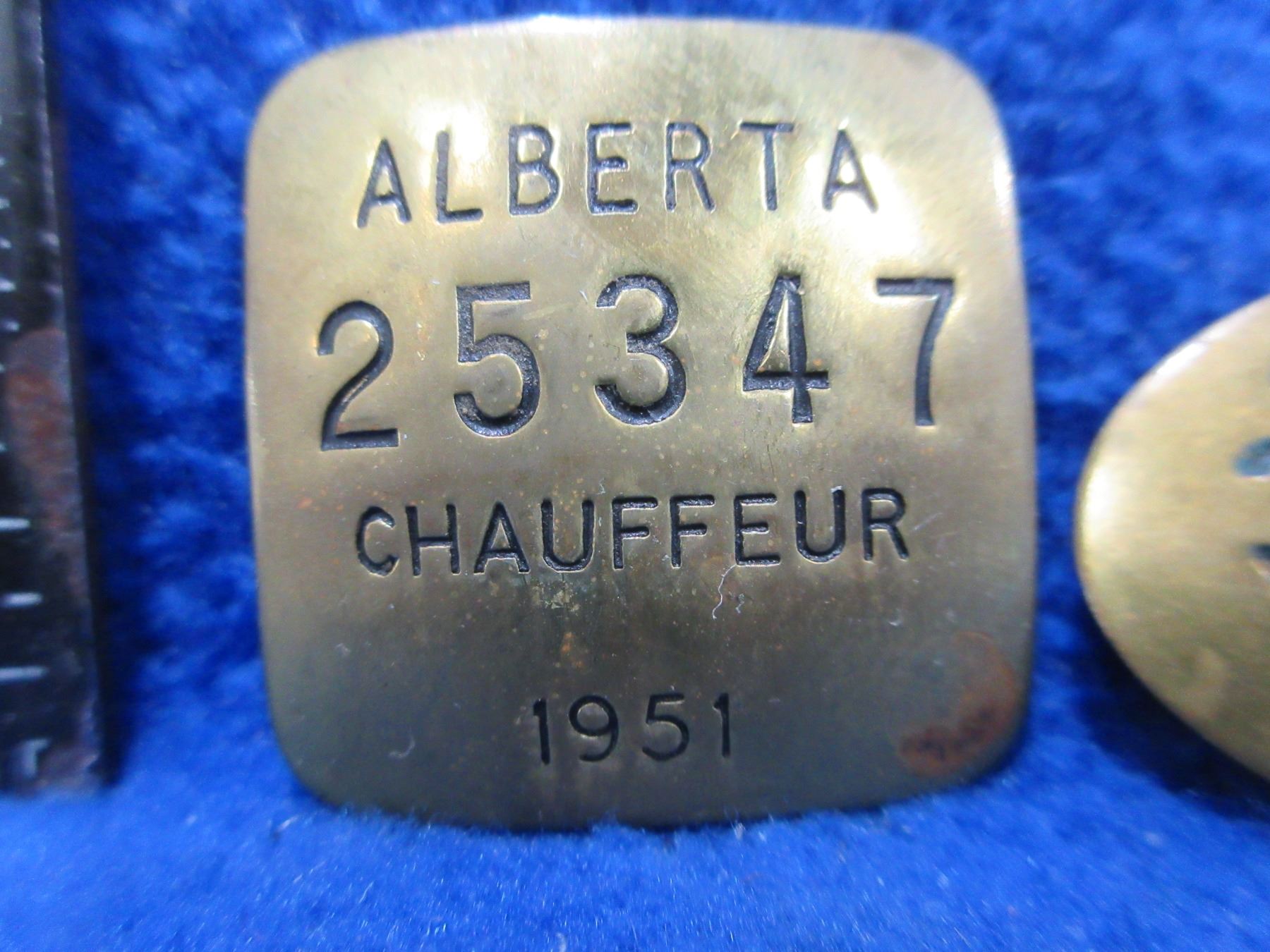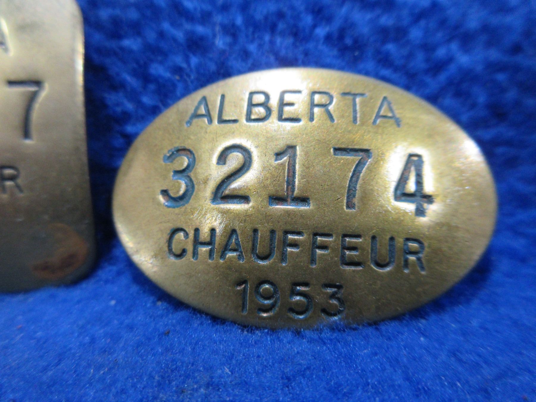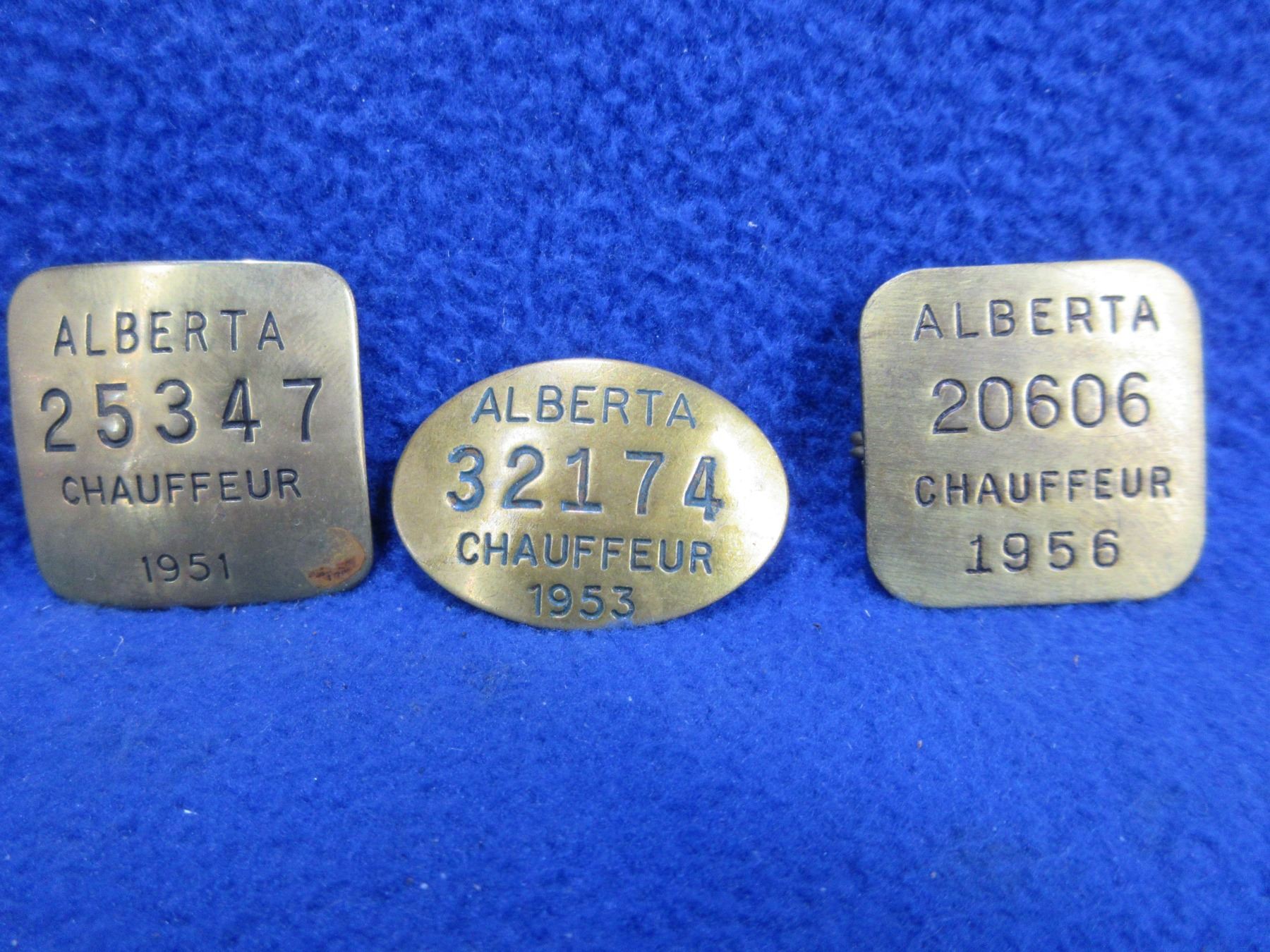 Lot 354 3 Vintage Alberta Chauffeur Badges - 1951, 1953, 1956