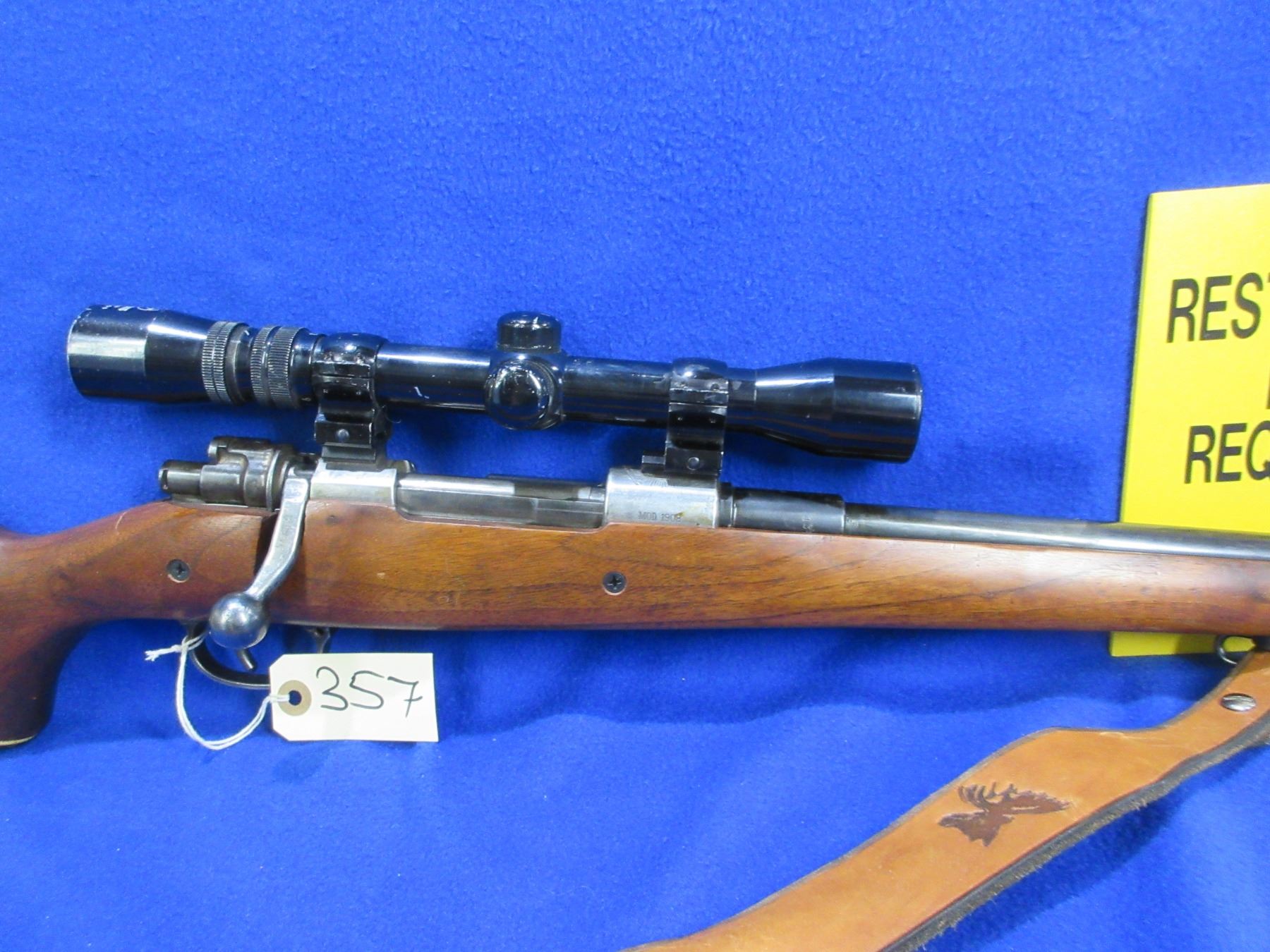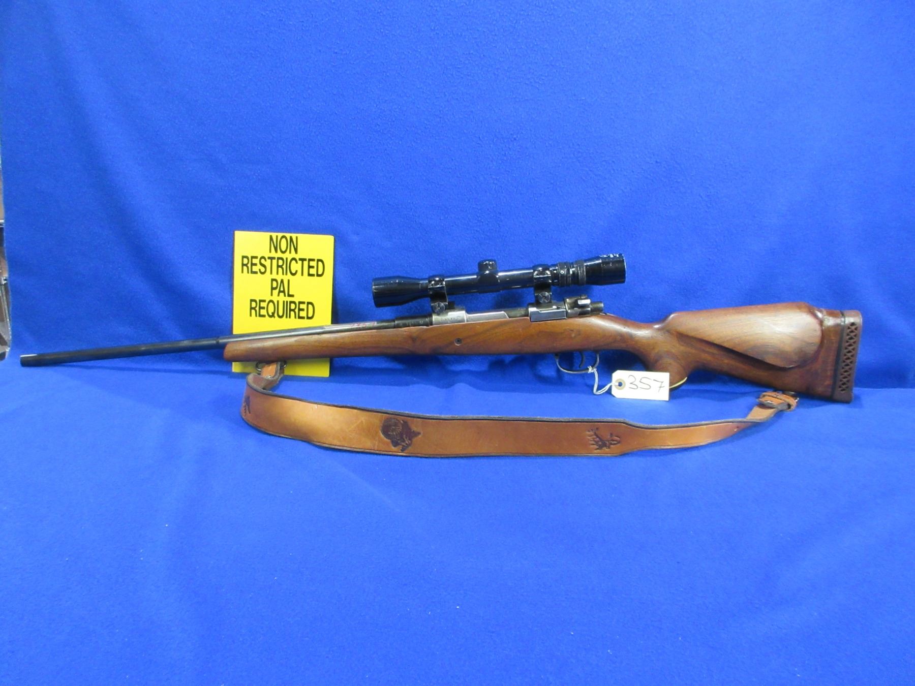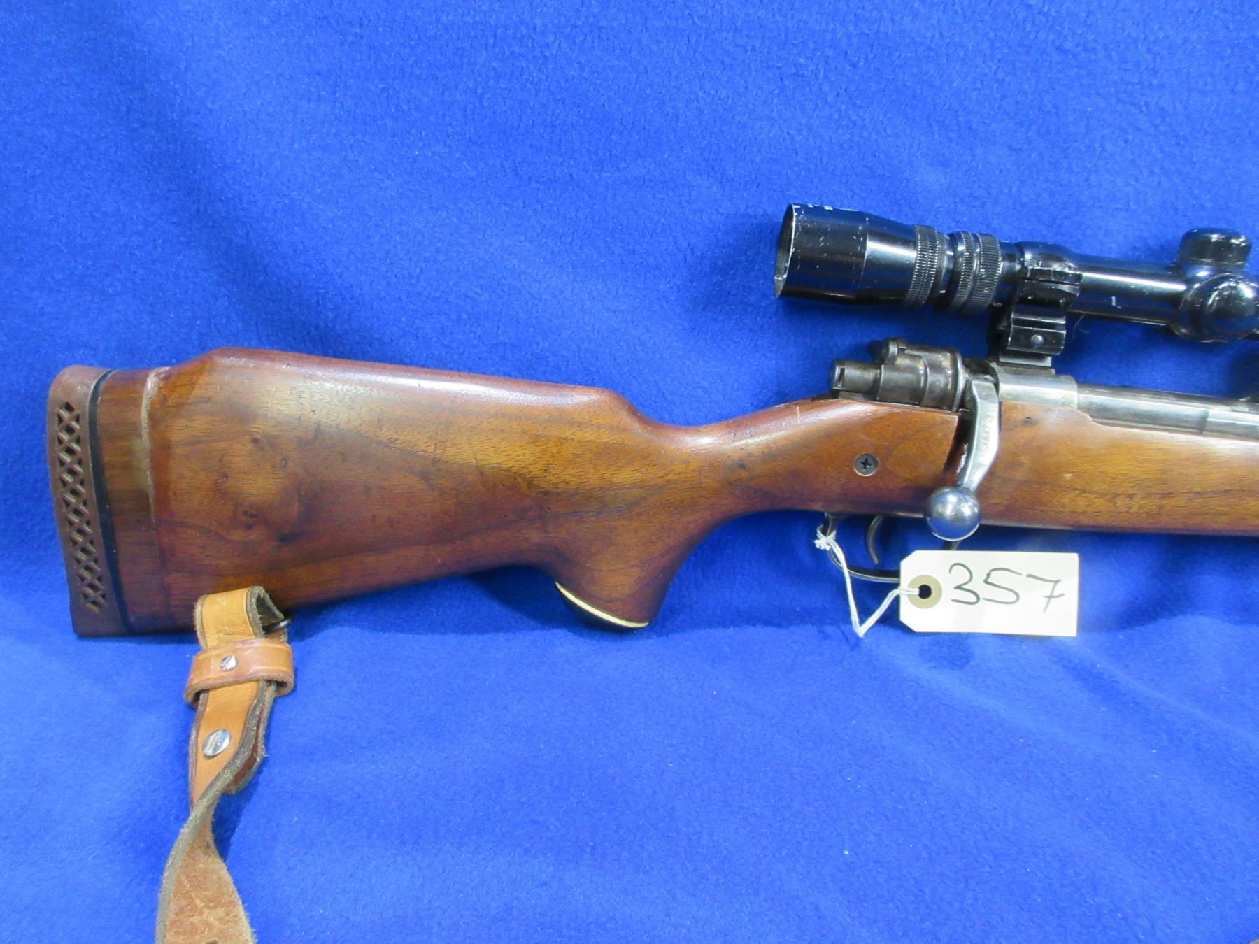 Non-Restricted - Mauser Model 1908 in 7x57 - This is a bolt action rifle with floorplate magazine, action appears to be in good working order. Barrel is 22", rifling is good, bluing is fair to good, has no sights but has Simmons model 1010 3-9x32 scope - appears clear - duplex reticle, stock has been shortened then lengthened and is good with usage marks, length of pull is 13 3/4", rubber recoil pad, comes with swivels and leather sling. Ser # 1375