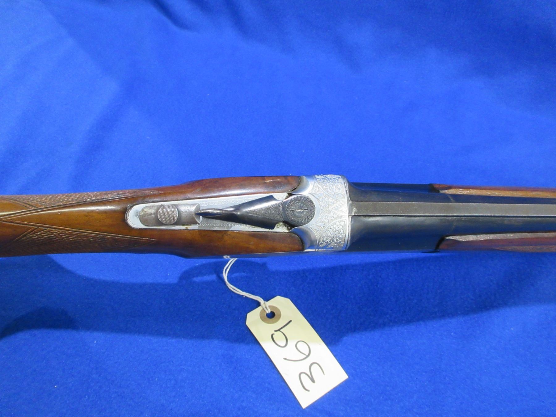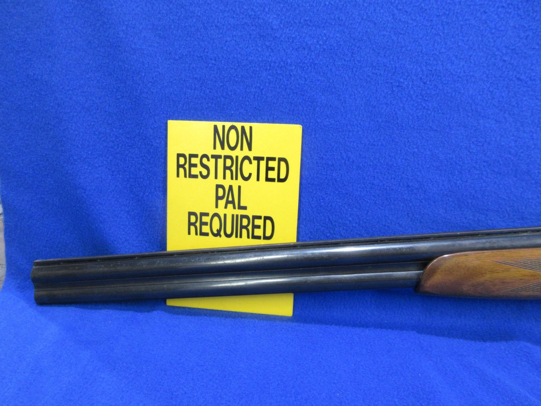 Non-Restricted - E. Contento Brescia O/U in 12 Ga. 2 3/4" - This is a tip up Over/Under shotgun, nicely engraved action is tight and appears to be in good working order. Vent rib barrels are 27 1/2", bores are good, bluing is good with some very light pitting, bead front sight missing, stock is good with usage marks, forearm is good with usage marks, length of pull is 15", rubber recoil pad. Ser # 25368