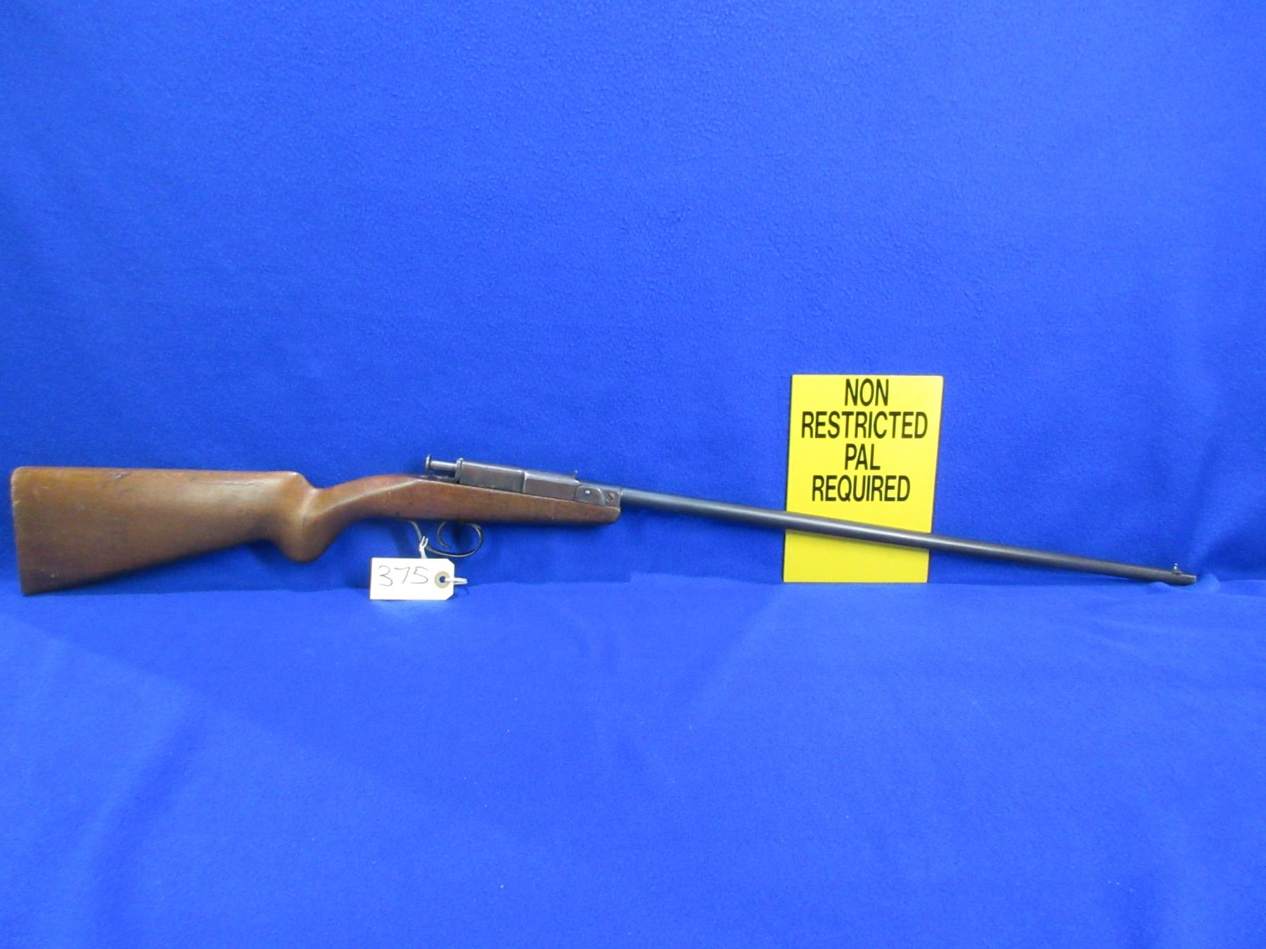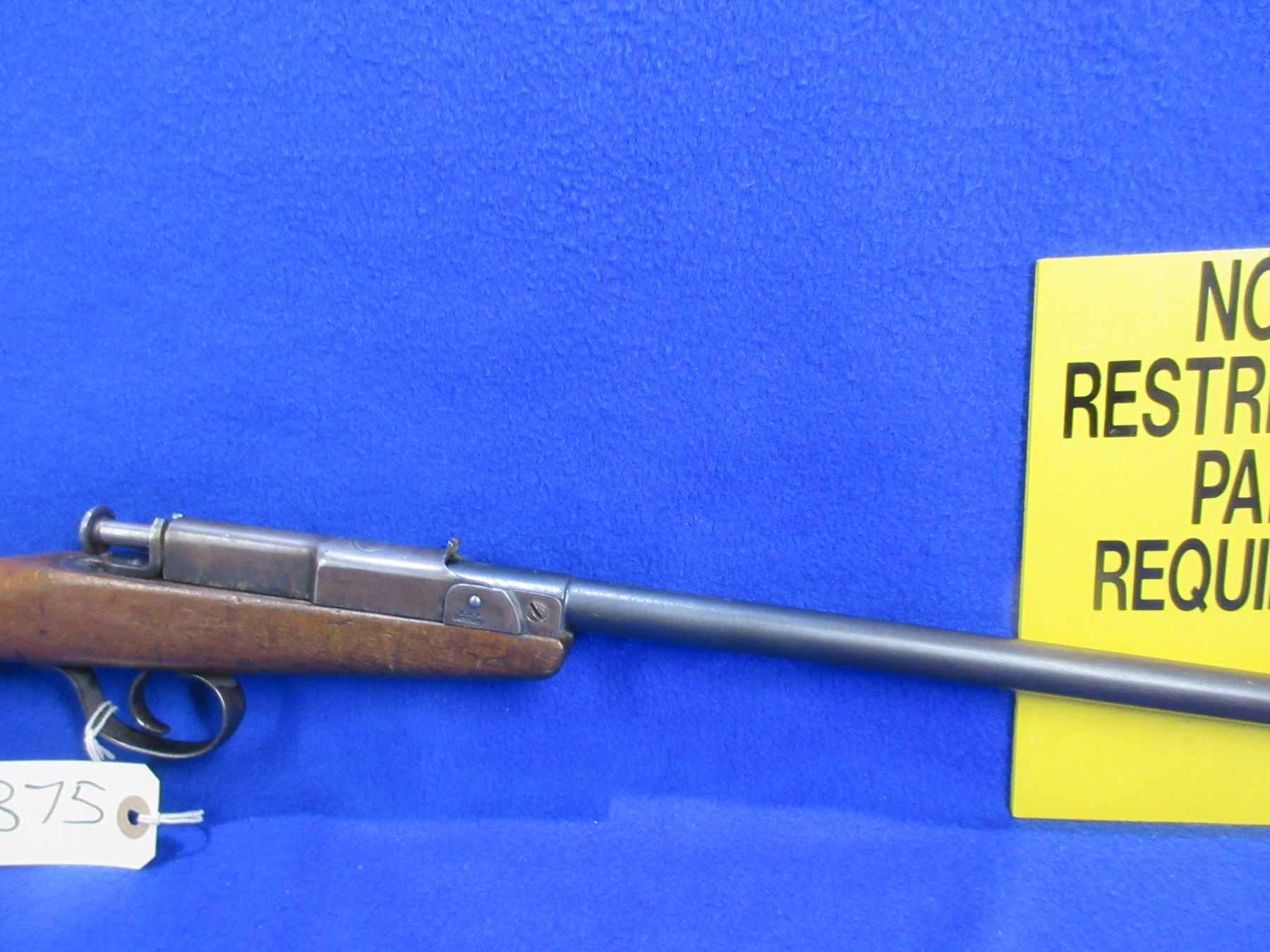 Non-Restricted - Deutsche Werke Model 1 in 22LR - This is a single shot bolt action rifle, action appears to be in good working order. Barrel is 22 3/4", rifling is good, bluing is good with some very light pitting, has both sights, stock has drying cracks at the butt, length of pull is 14". Ser # None