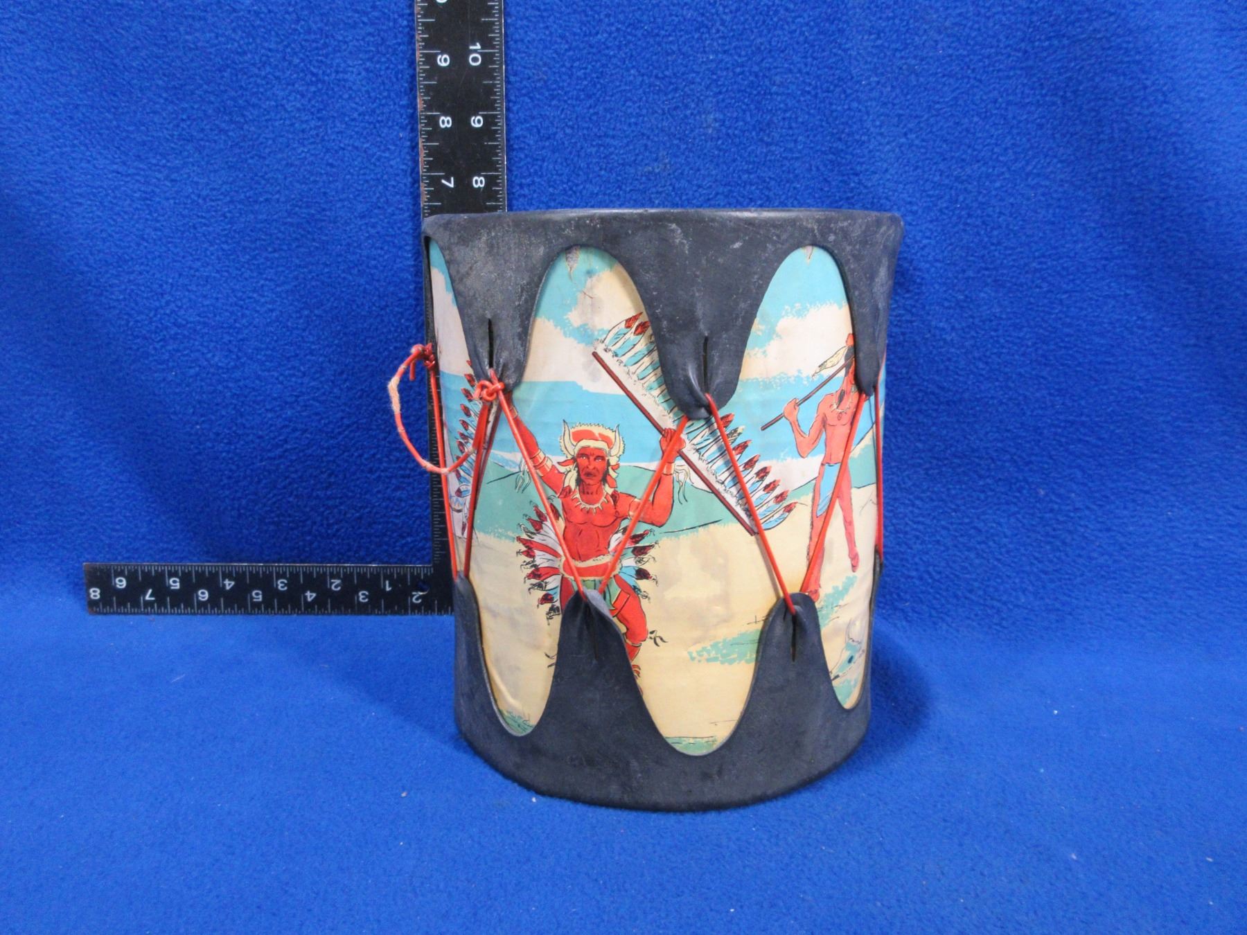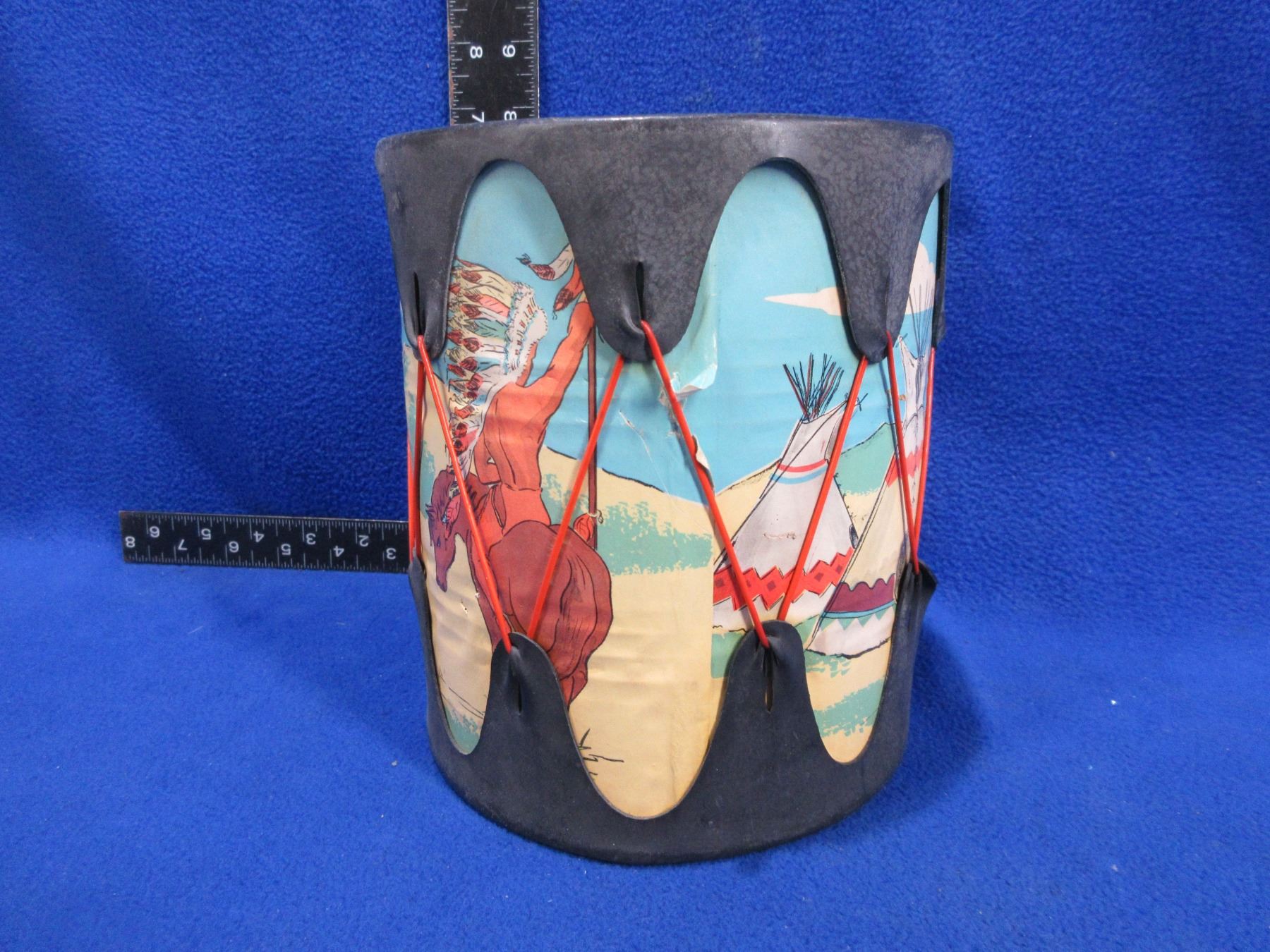 Childs Drum - Appears to be a can wrapped with native art & rubber skins