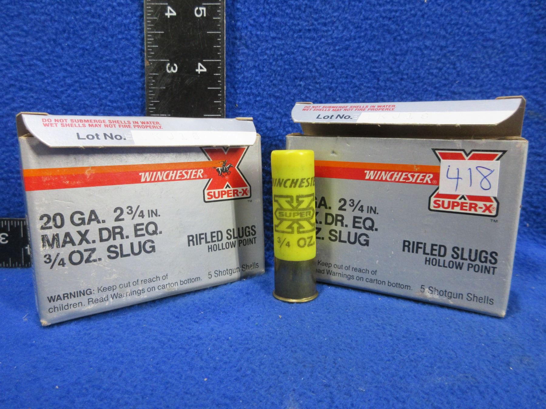 Lot 418 20 Ga. 2 3/4" 3/4oz Rifled Slug HP (Pick Up or Ship by UPS Only)
