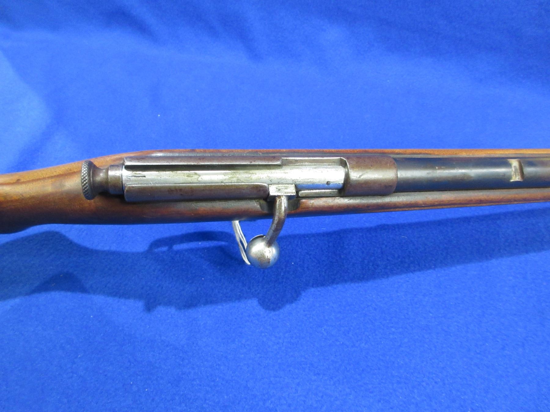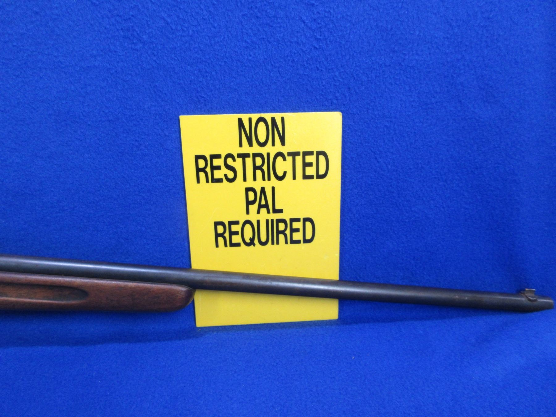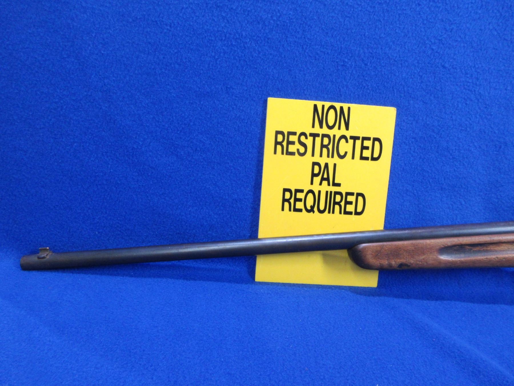 Non-Restricted - Springfield Model 53-B in 22 S/L/LR - This is a single shot bolt action rifle, action appears to be in good working order. Barrel is 24", rifling is good, bluing is turning brown, has front sight, rear sight missing, stock is good with many usage marks, length of pull is 13", metal butt plate. Ser # None