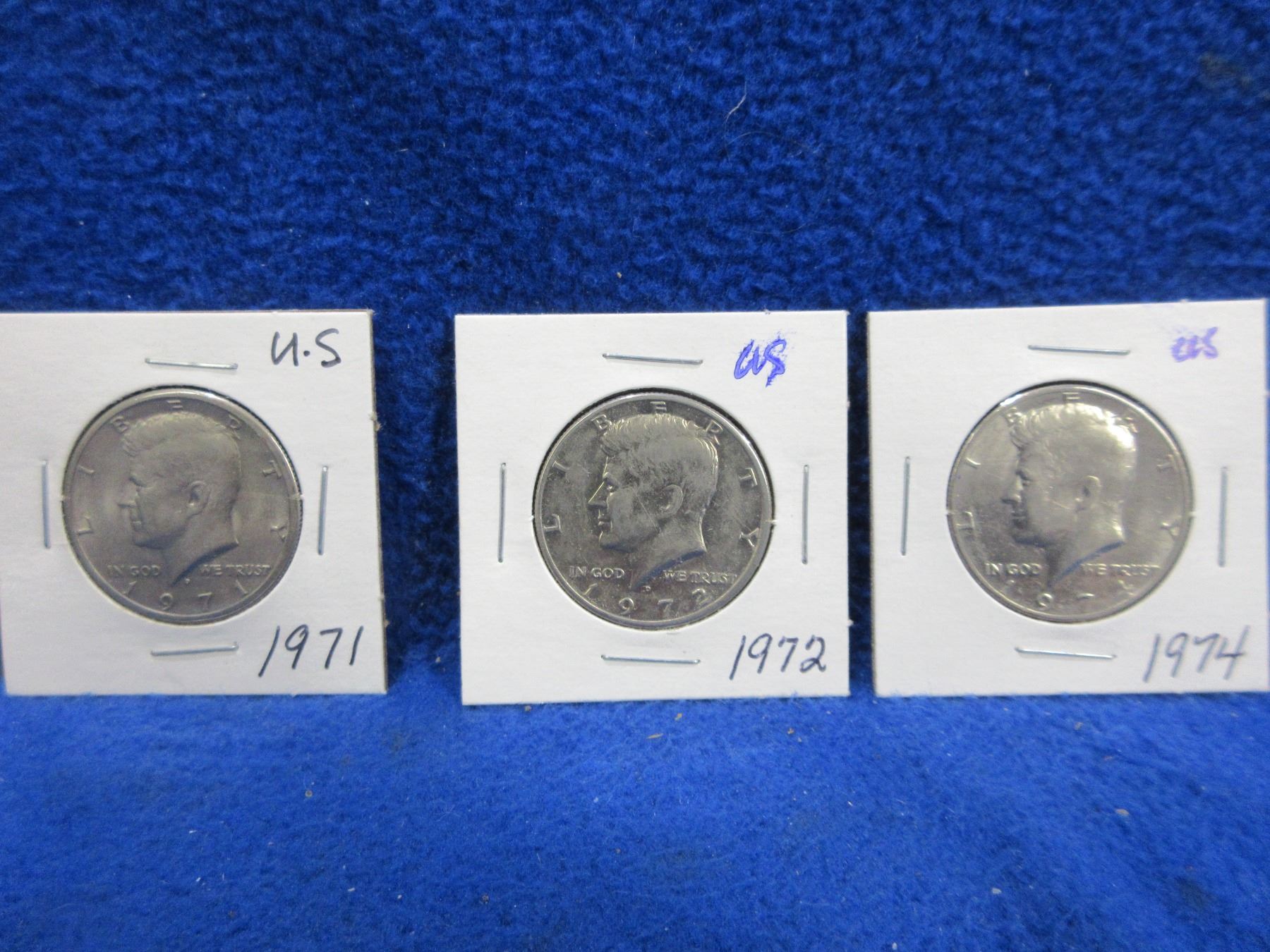 3 USA "Kennedy Half Dollar" Coins - 1971, 1972, 1974