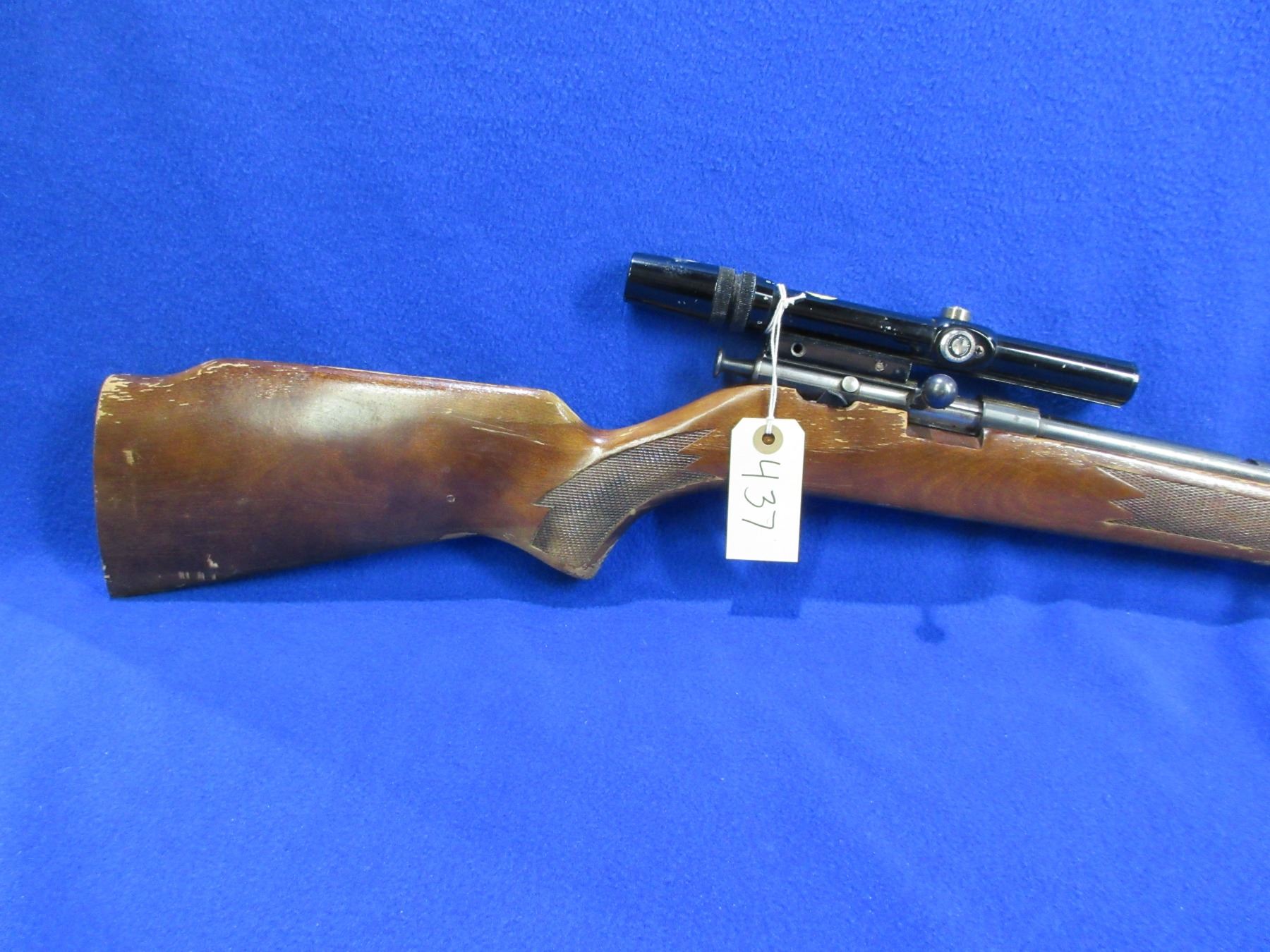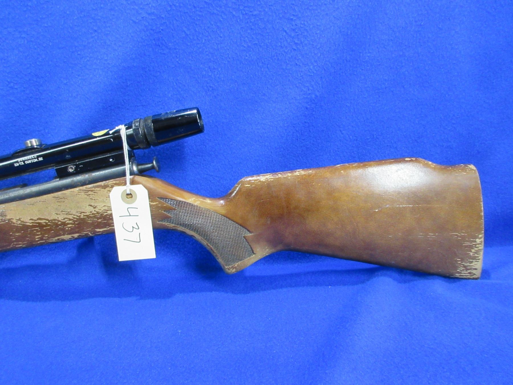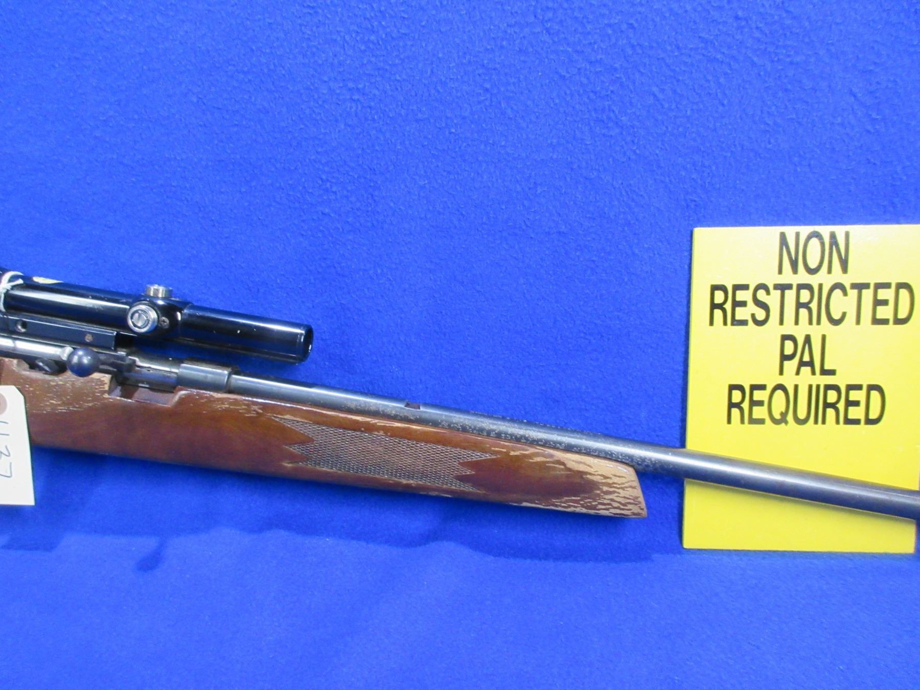 Non-Restricted - Lakefield Mossberg Model Mk I in 22 S/L/LR - This is a single shot bolt action rifle, action appears to be in working order. Barrel is 23", rifling is poor, bluing has pitting, sights are missing but has Bushnell 2x-7x Custom .22 scope - appears clear - standard reticle, stock is good but finish is flaking, trigger guard missing, length of pull is 13 1/4", butt plate missing. Ser # 209980