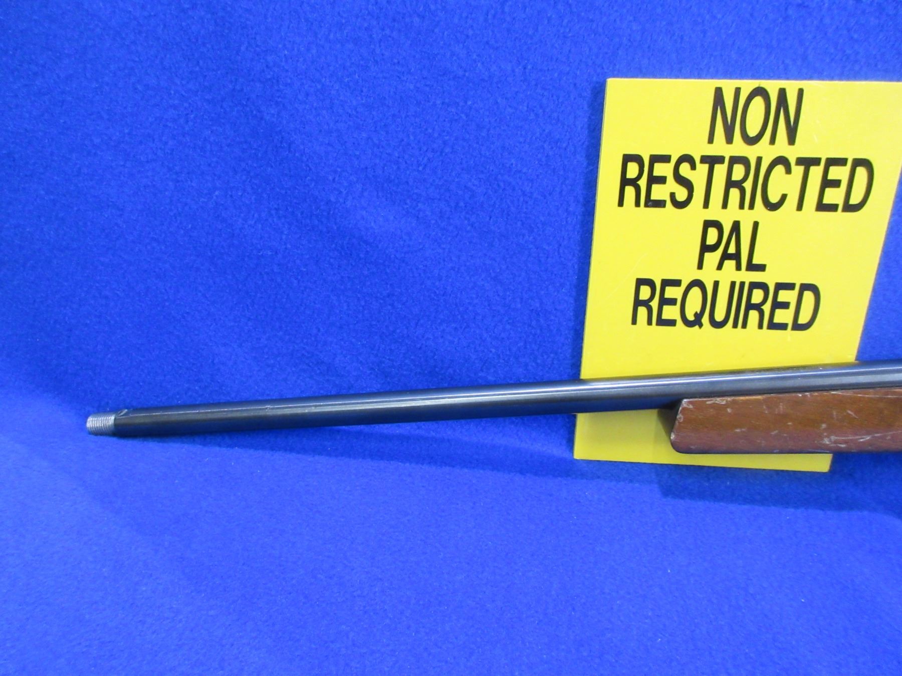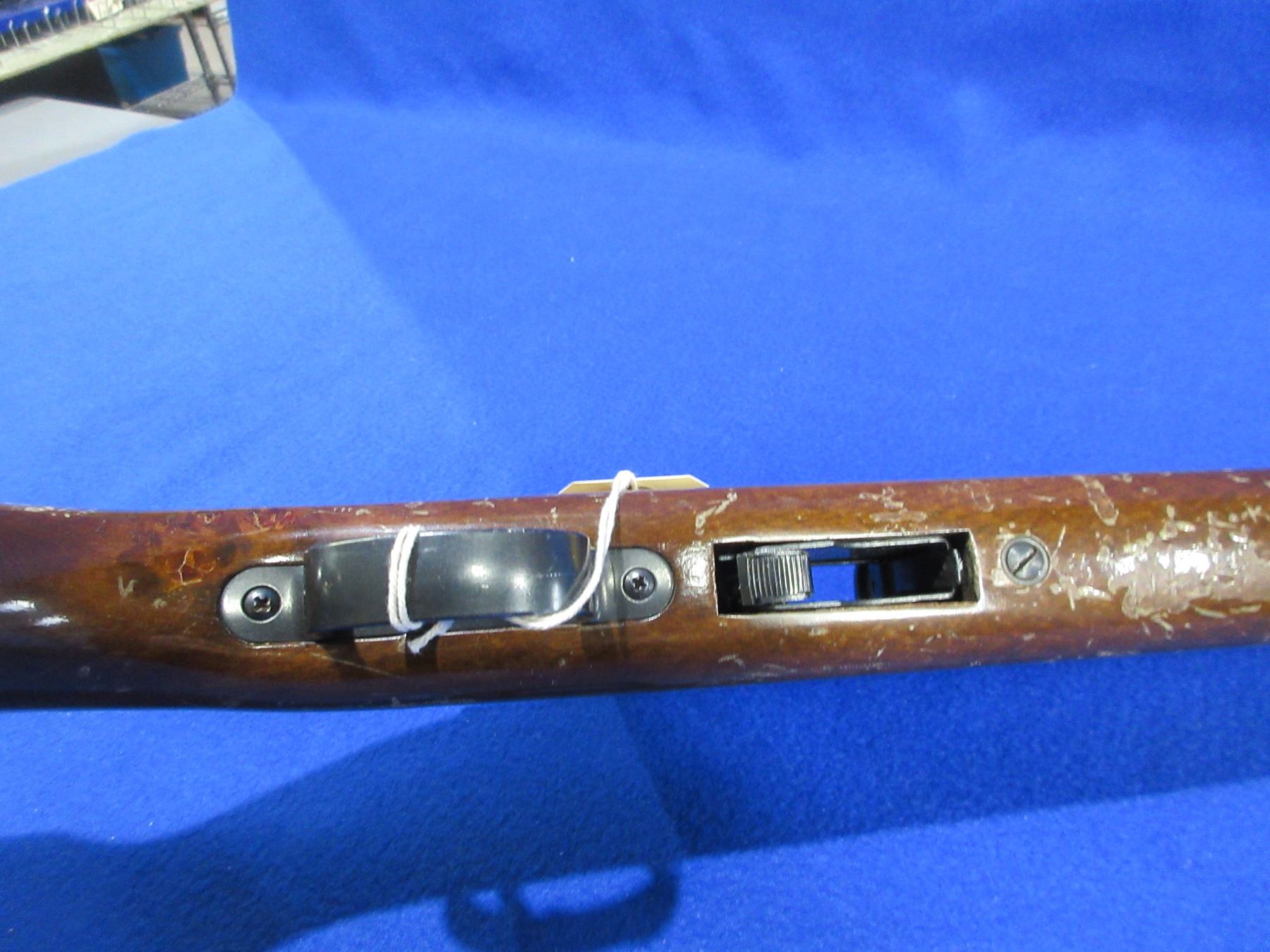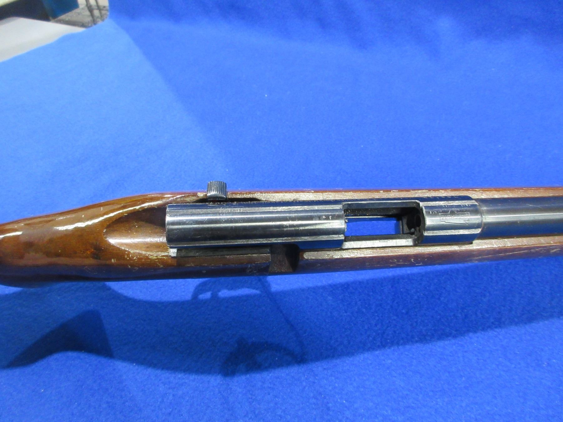 Non-Restricted - Anschutz Model 1400 in 22LR - This is a bolt action rifle with removable magazine (Magazine and bolt missing), action appears to be in working order but bolt is missing. Threaded barrel is 21 3/4" - thread cap missing, rifling is good to very good, bluing is good, sights are missing but has integral rail, stock is good with usage marks and finish flaking, length of pull is 13 1/2", butt plate good. Ser # 758125