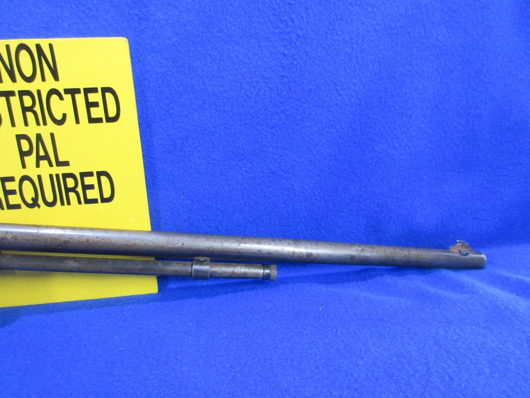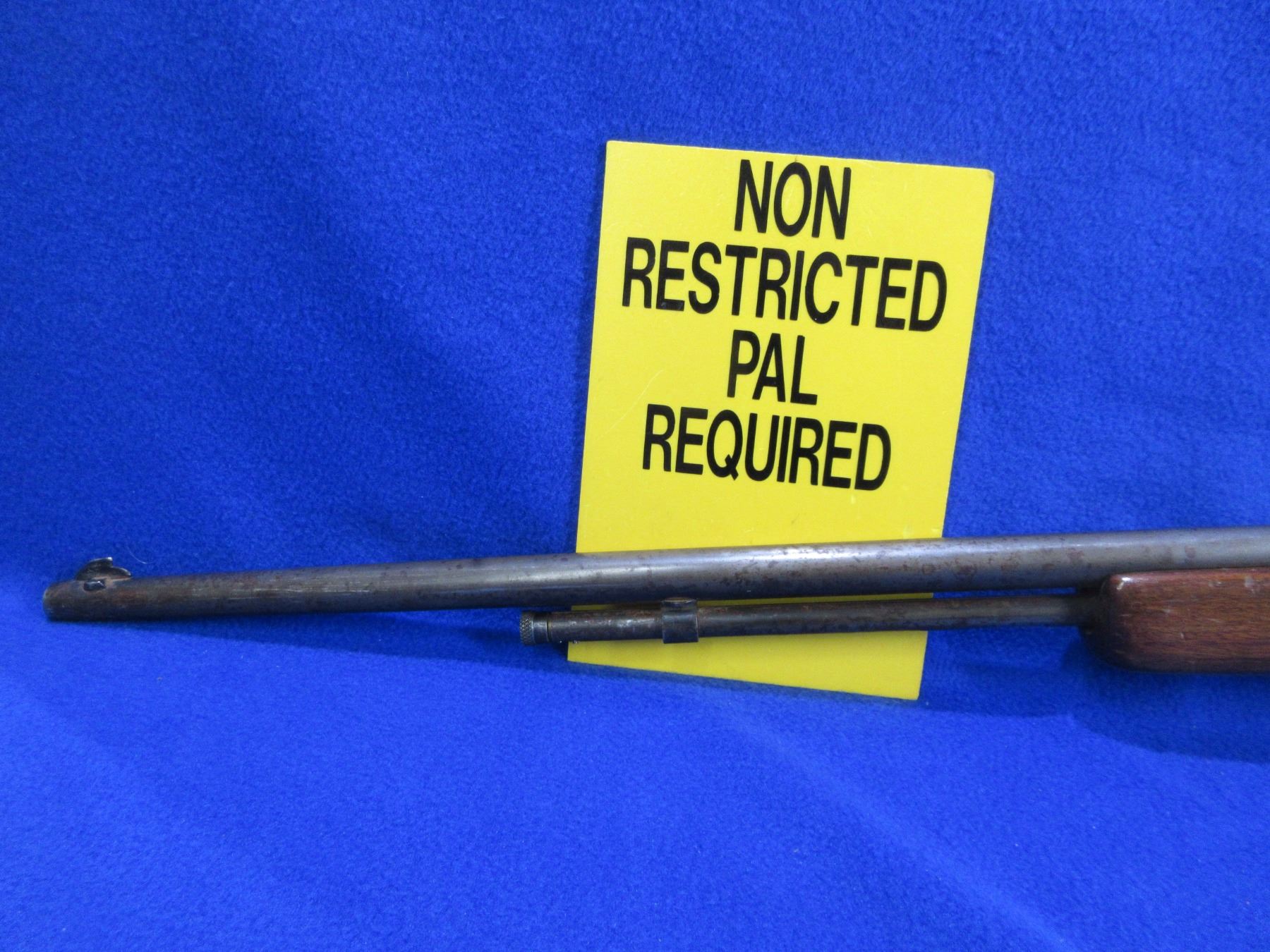 Non-Restricted - Cooey Model 60 in 22 S/L/LR - This is a bolt action rifle with tube magazine, action appears to be in good working order. Barrel is 24", rifling is good, bluing is gone with light pitting, has both sights but rear ramp is missing and is drilled and tapped for side mount base, stock is good with usage marks, length of pull is 14", metal butt plate good. Ser # None