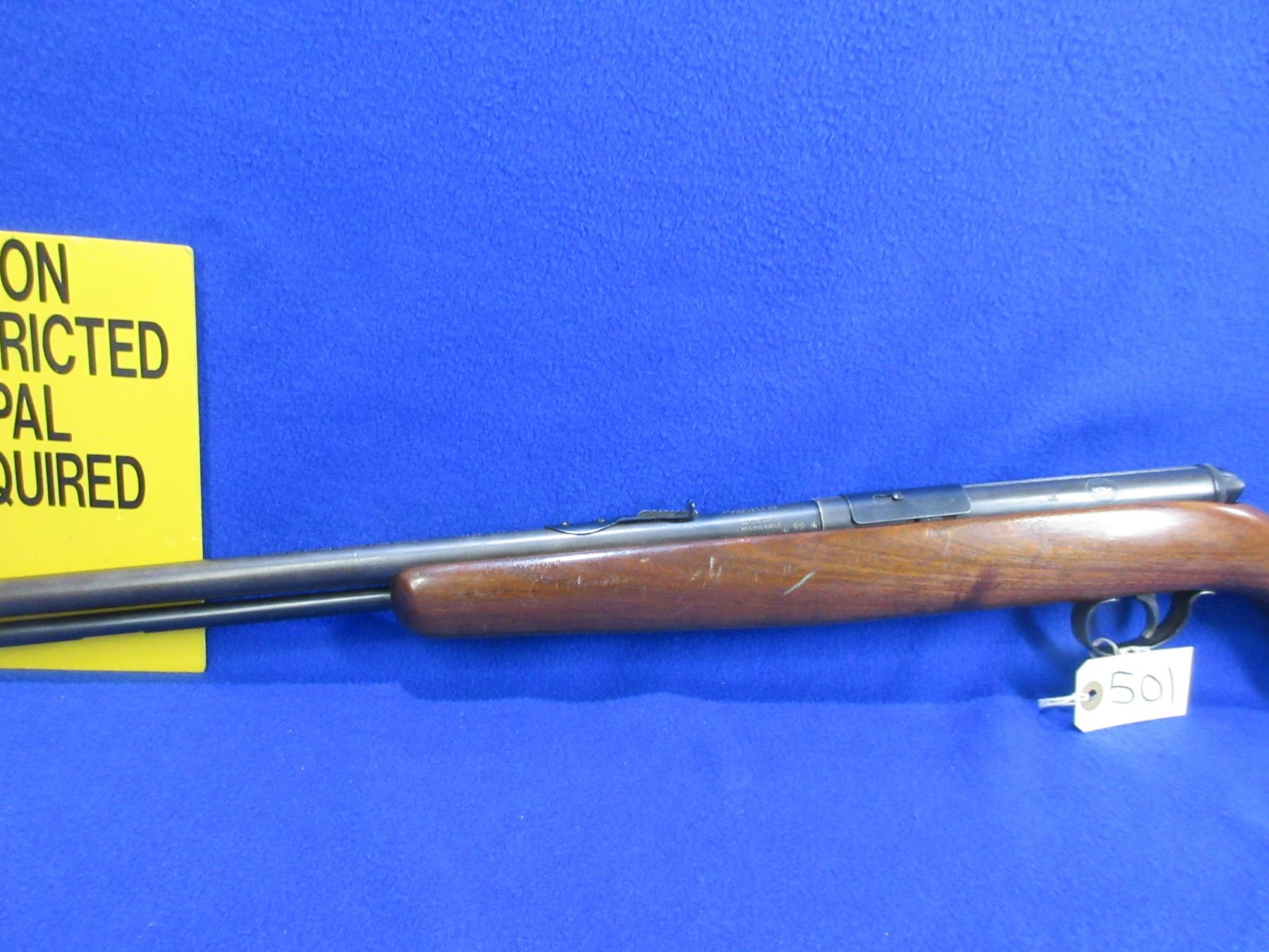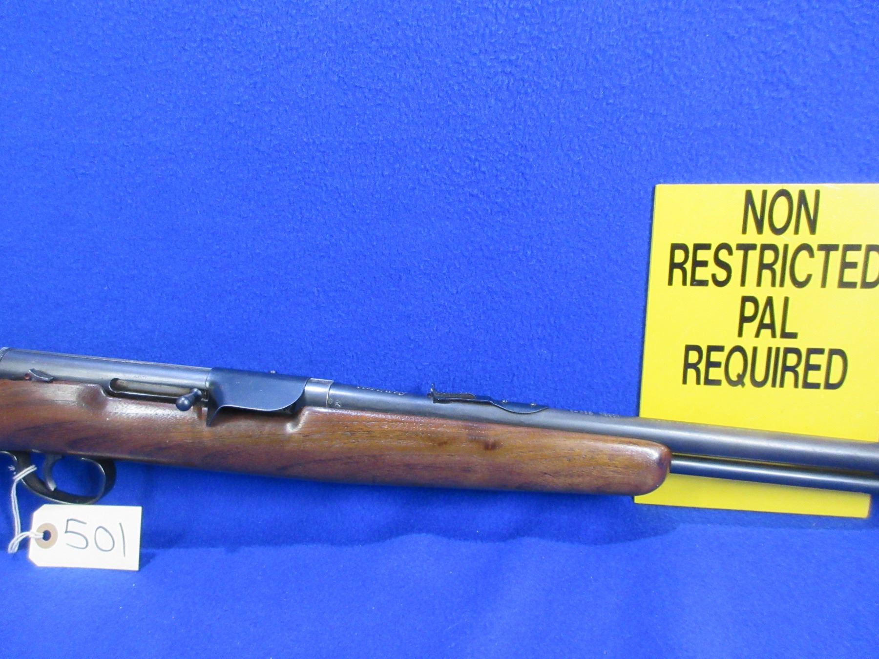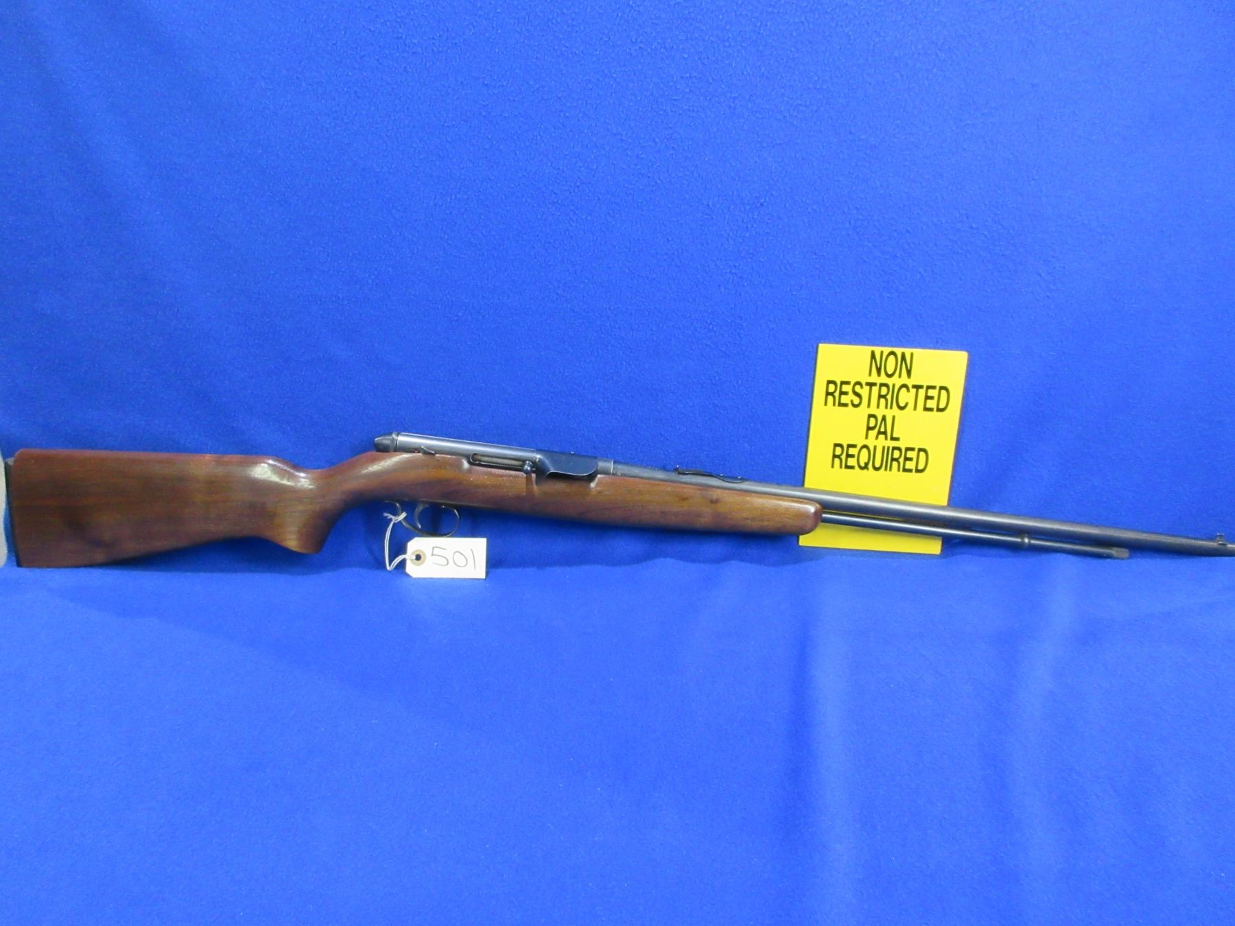 Non-Restricted - Remington Model 550-1 in 22 S/L/LR- This is a semi-auto rifle with tube magazine, action appears to be in good working order. Barrel is 24", rifling is good to very good, bluing is turning grey, has both sights, stock is good to very good with minor usage marks, length of pull is 13 3/4", butt plate has large chip on the heel. Ser # 9422943 on sticker