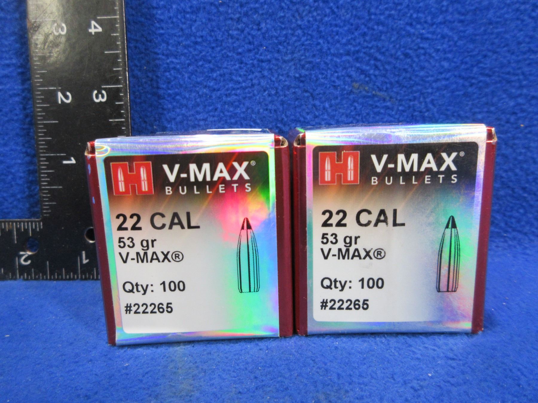 22 Cal. 53gr V-Max Hornady Bullets - 2 Sealed Boxes of 100