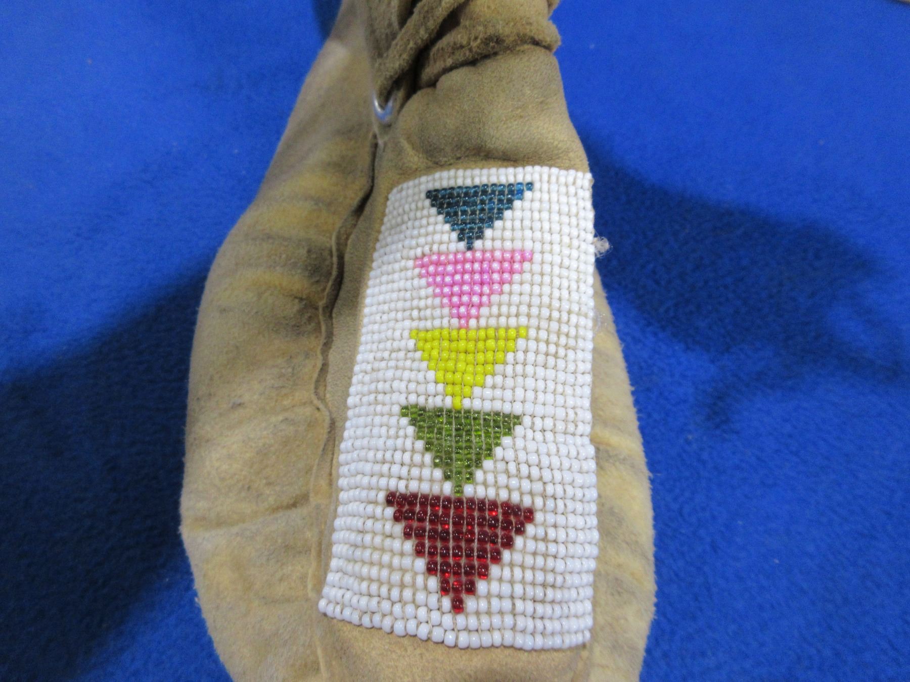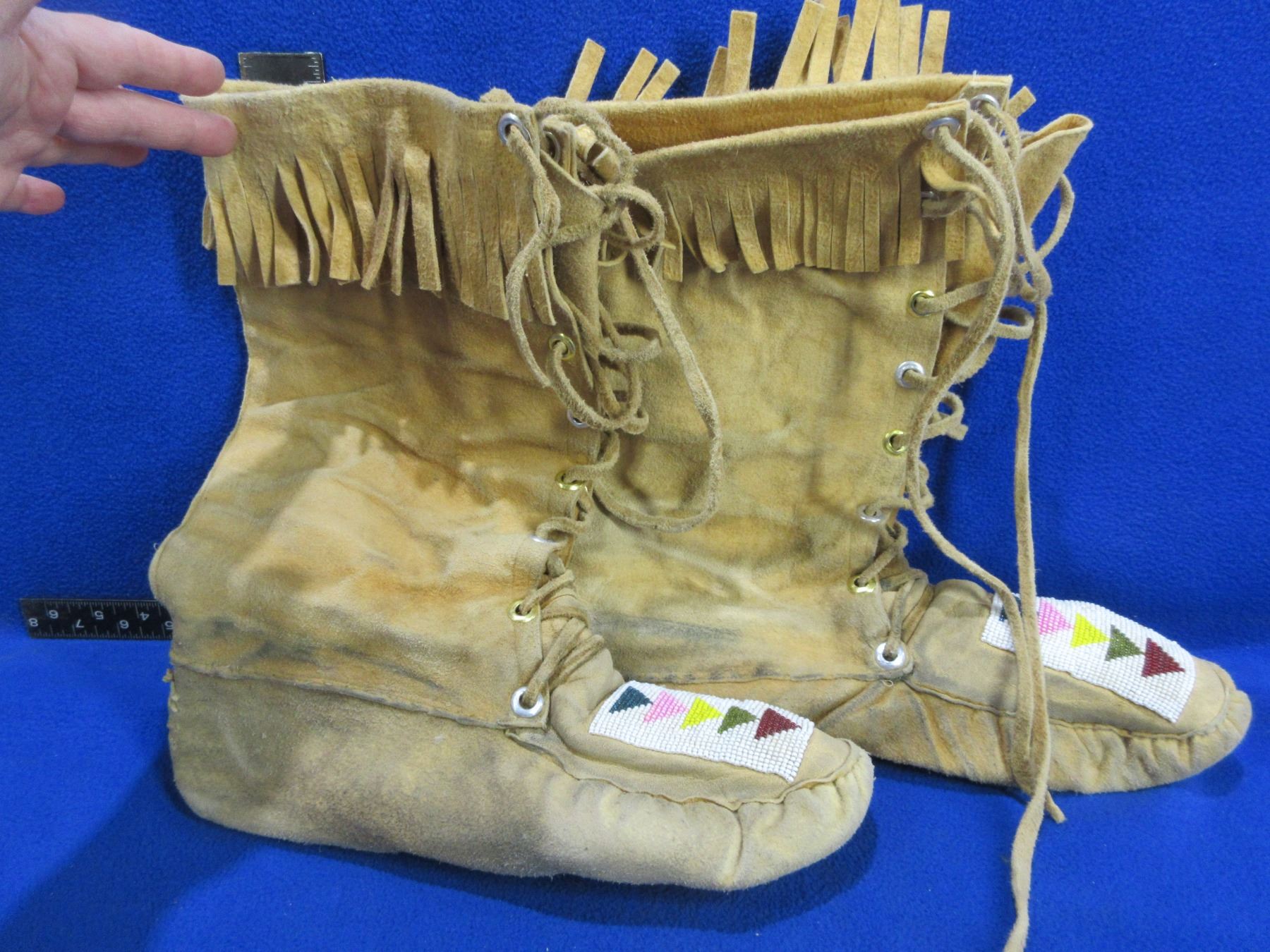 Native American Mocassins with Beadwork & Fringes - Sole Approx. 11" On Outside