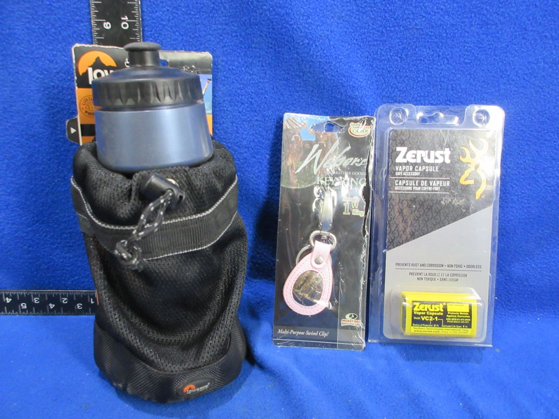 Lowepro Water Bottle w/ Mesh Bag, Zerust Vapor Capsule & Weber's Key Ring - All New Old Stock