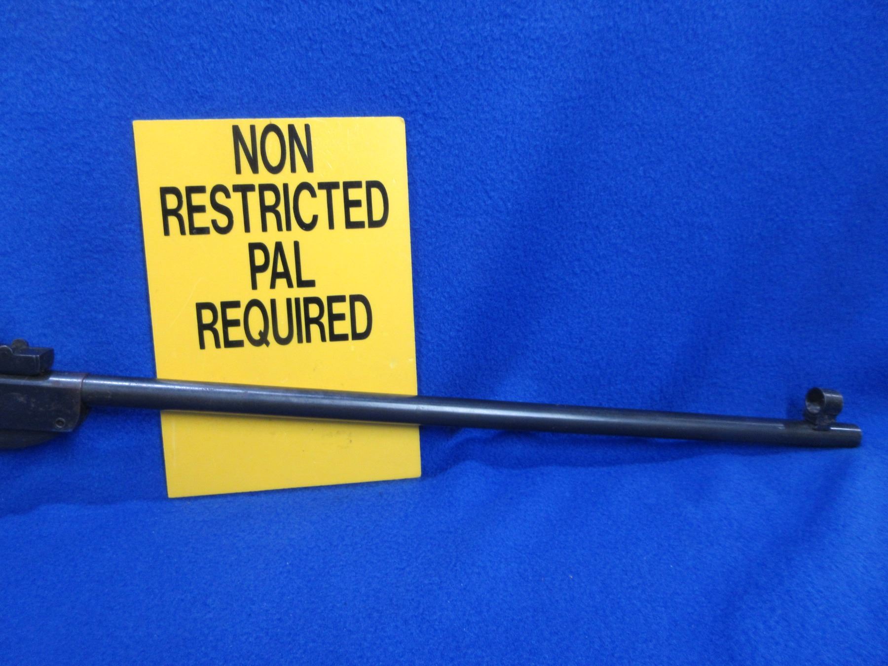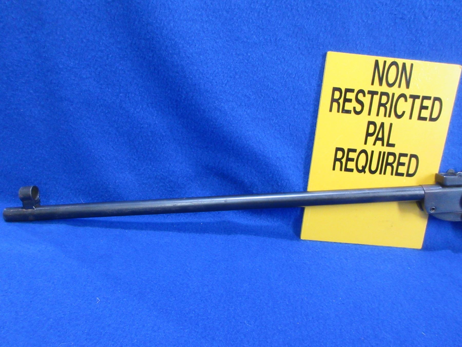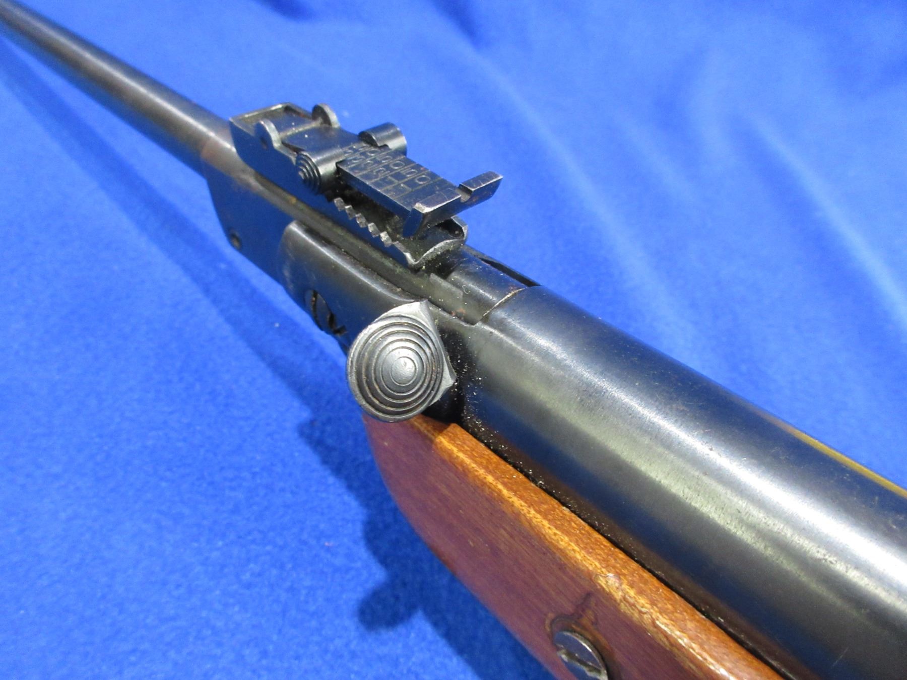 Non-Restricted - Appears to be Chinese Air Rifle in 177 Cal. - This is a break barrel action single shot air rifle, action appears to be in good working order. Barrel is 19 3/4", rifling is good to very good, bluing is good with some light pitting, has both sights, stock is good with usage marks, length of pull is 13 1/2". Ser # None
