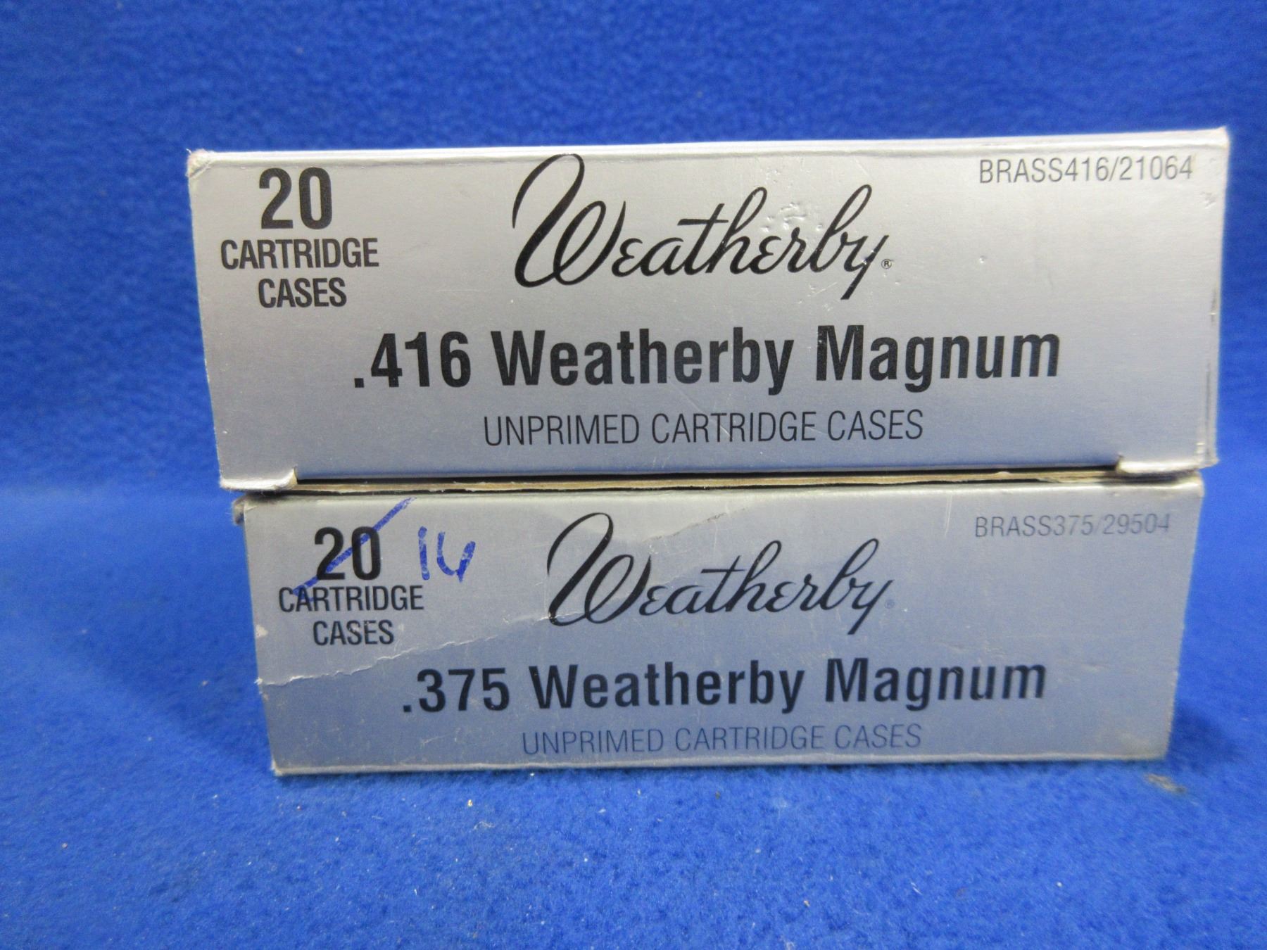 Brass Only - 416 Wby Mag & 375 Wby Mag (Pick Up or Ship by UPS Only) - Box of 9 (416 Wby Mag Primed), Box of 16 (357 Wby Mag Unprimed)