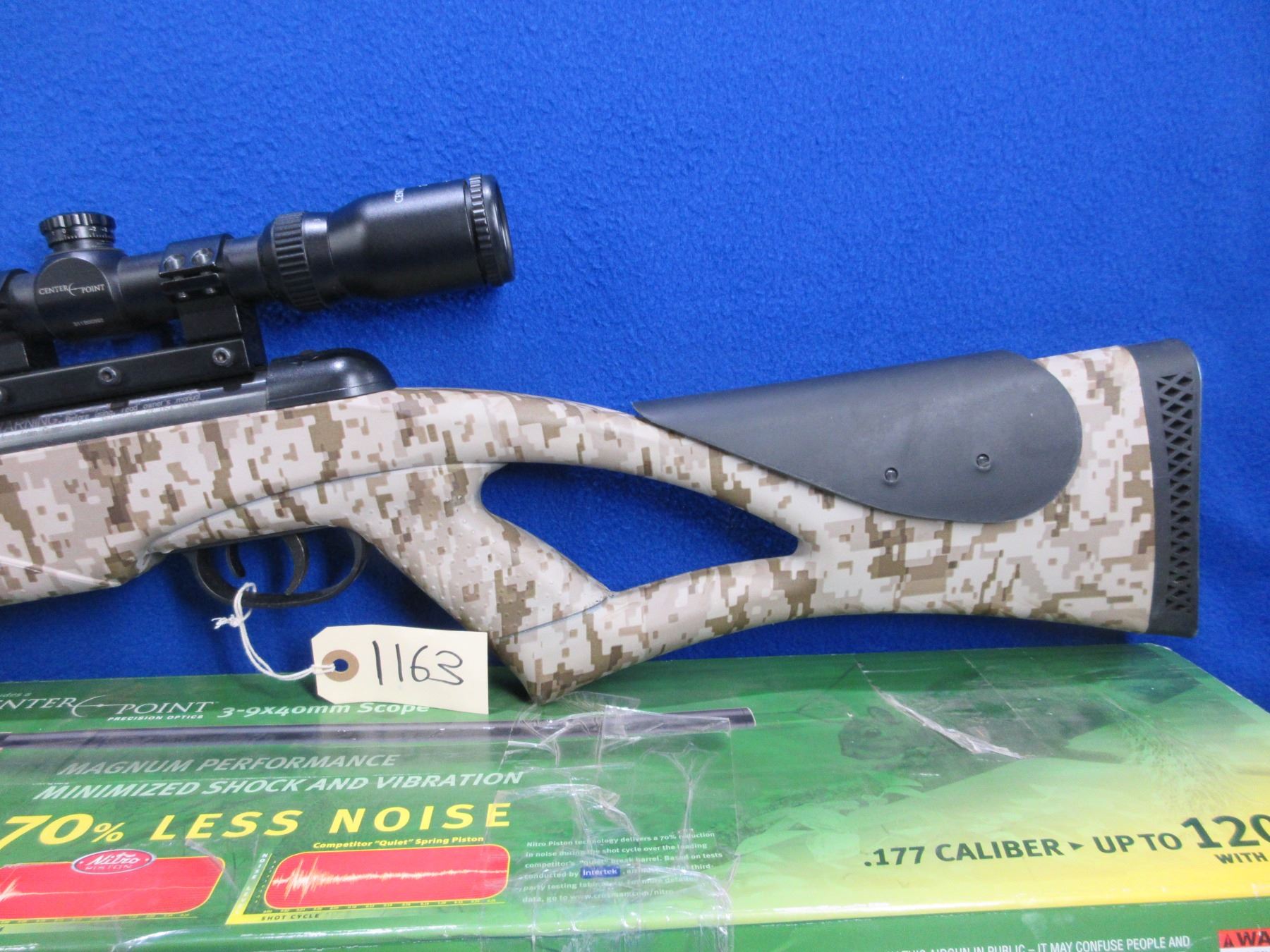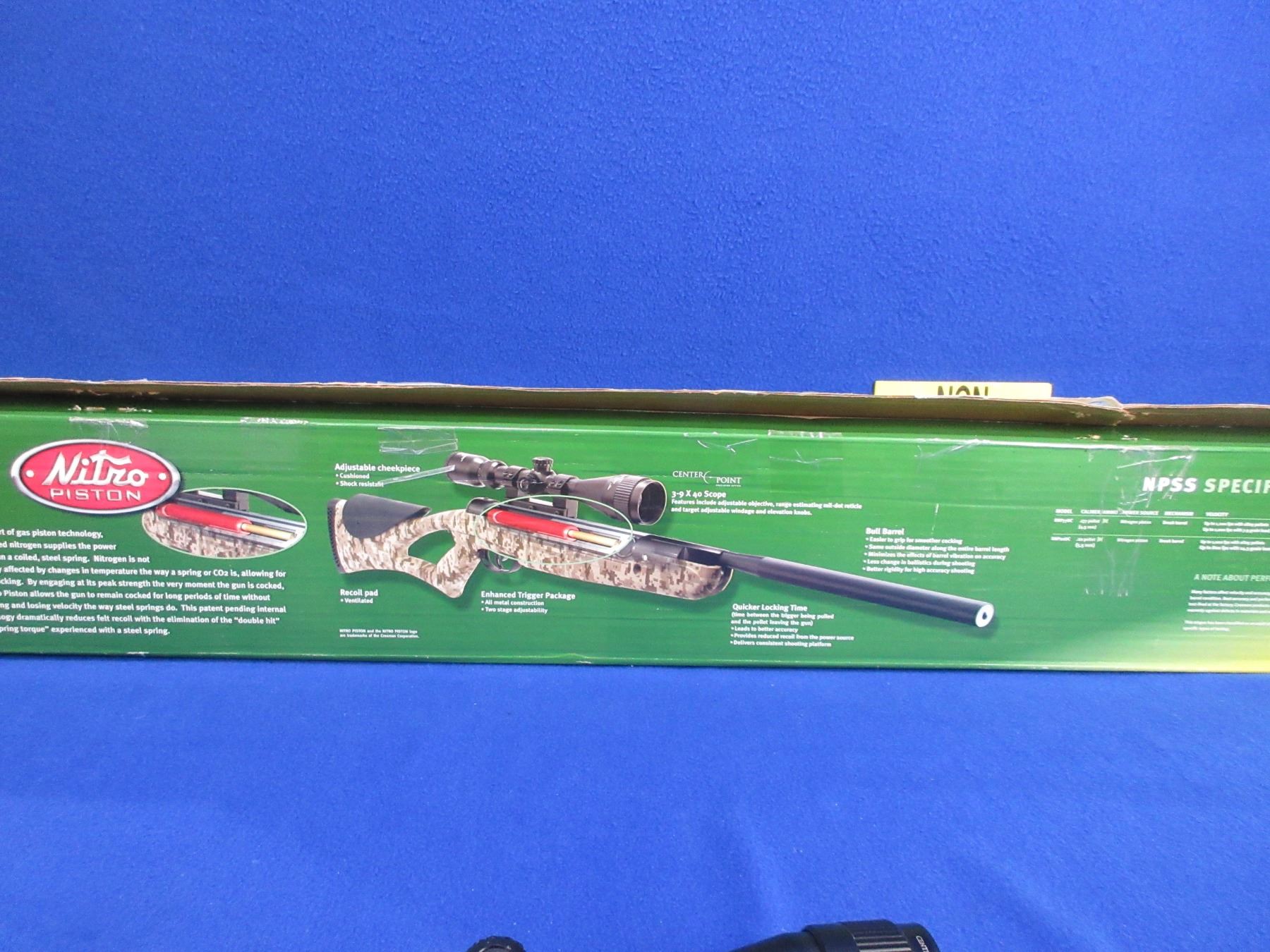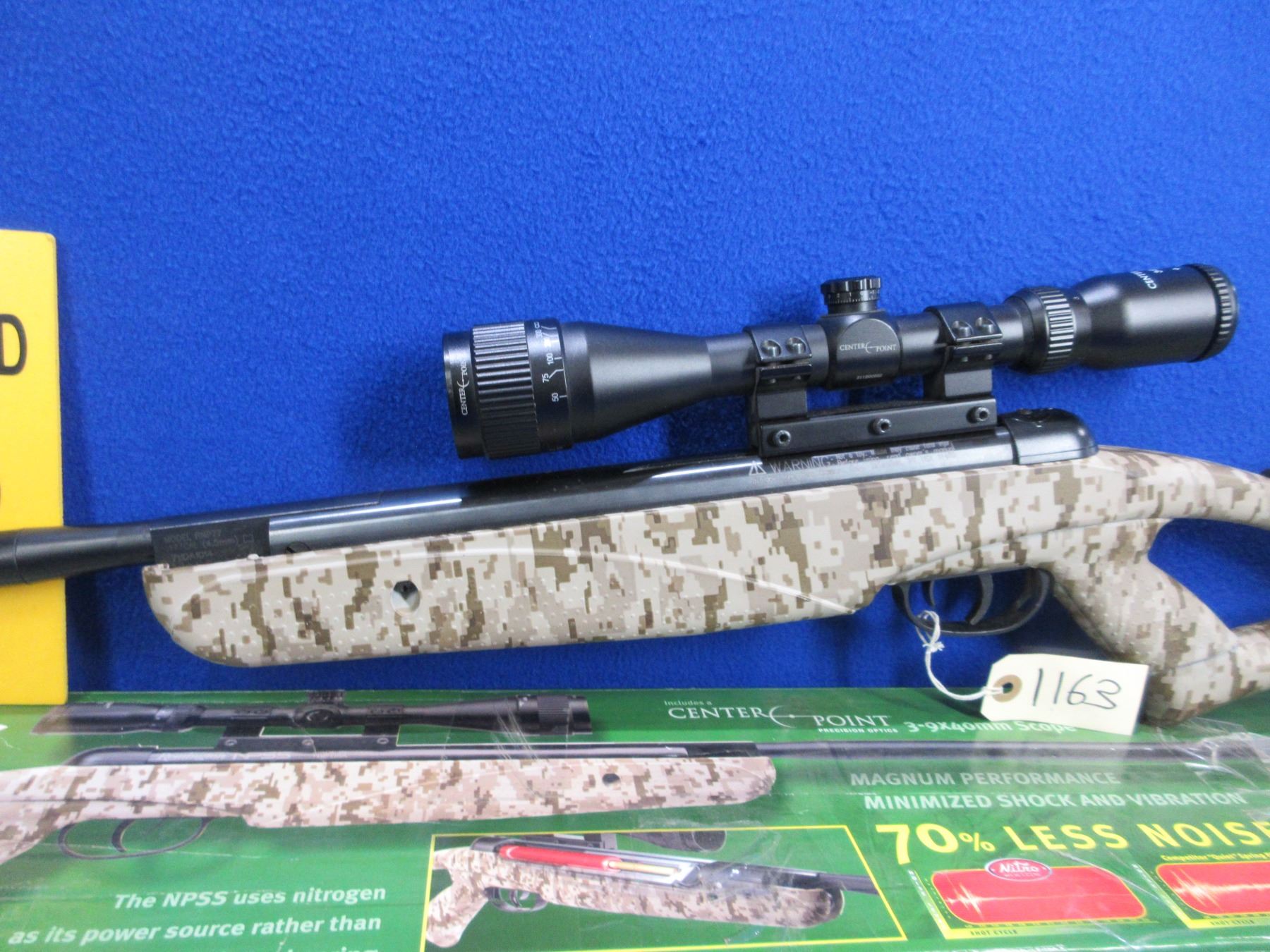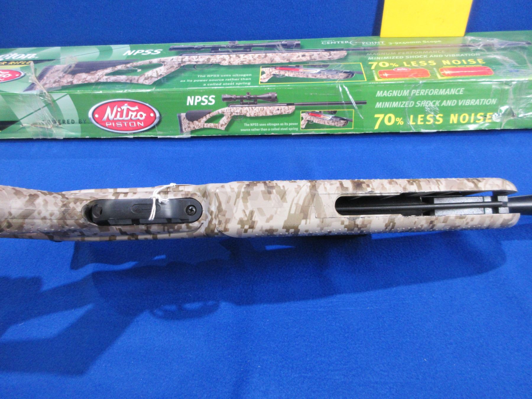 Non-Restricted - Remington NPSS Model RNP77 1200 FPS Air Rifle in .177 Cal. - This is a 1200 FPS break barrel action single shot air rifle, action appears to be in good to very good working order. Barrel is 19 3/4", rifling is good to very good, black finish is good with two scratches, has no sights but has CenterPoint 3-9x40AO scope - appears clear - MIL-Dot reticle, digital camo synthetic stock with adjustable cheek piece is good to very good, length of pull is 14 1/4", rubber recoil pad good, comes with original box and instruction manual. Ser # 711DA1014