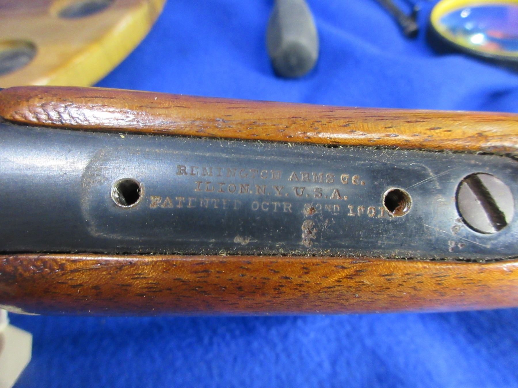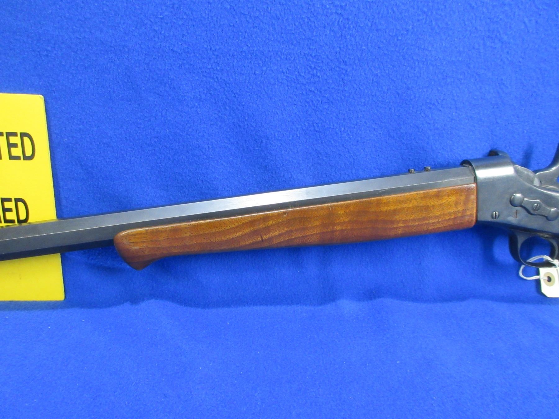 Non-Restricted - Remington Rolling Block in 45-70 - This is a single shot rolling block rifle, action appears to be in good to very good working order. Heavy octagon barrel is 32", rifling is good to very good, bluing is good, has front globe sight, rear sight missing but has rear tang peep sight, stock and forearm are good to very good with minor usage marks, length of pull is 15", metal butt plate good. Ser # None