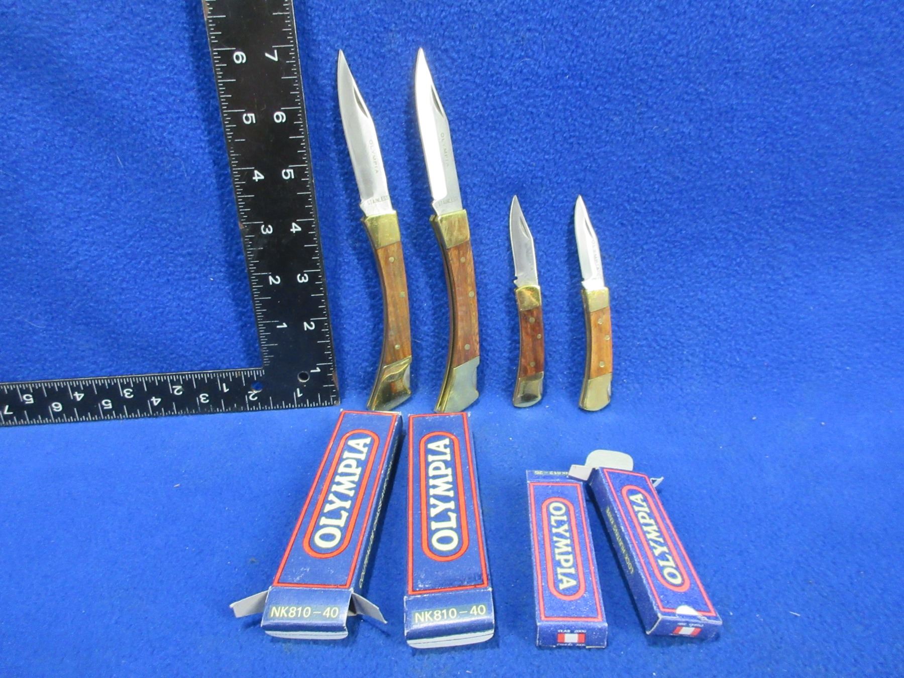 4 Olympia Folding Lock Blade Knives - New Old Stock - NK810-40 x 2, NK812-25 x 2