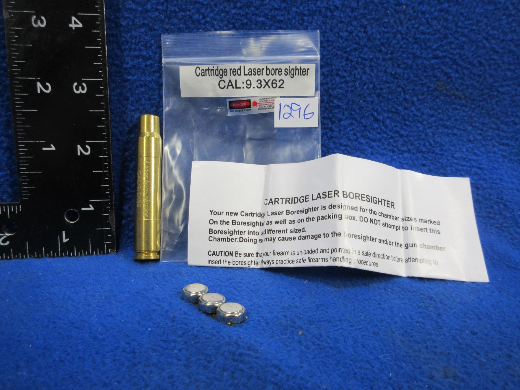 NEW - 9.3X62 Cartridge Red Laser Bore Sight with Batteries