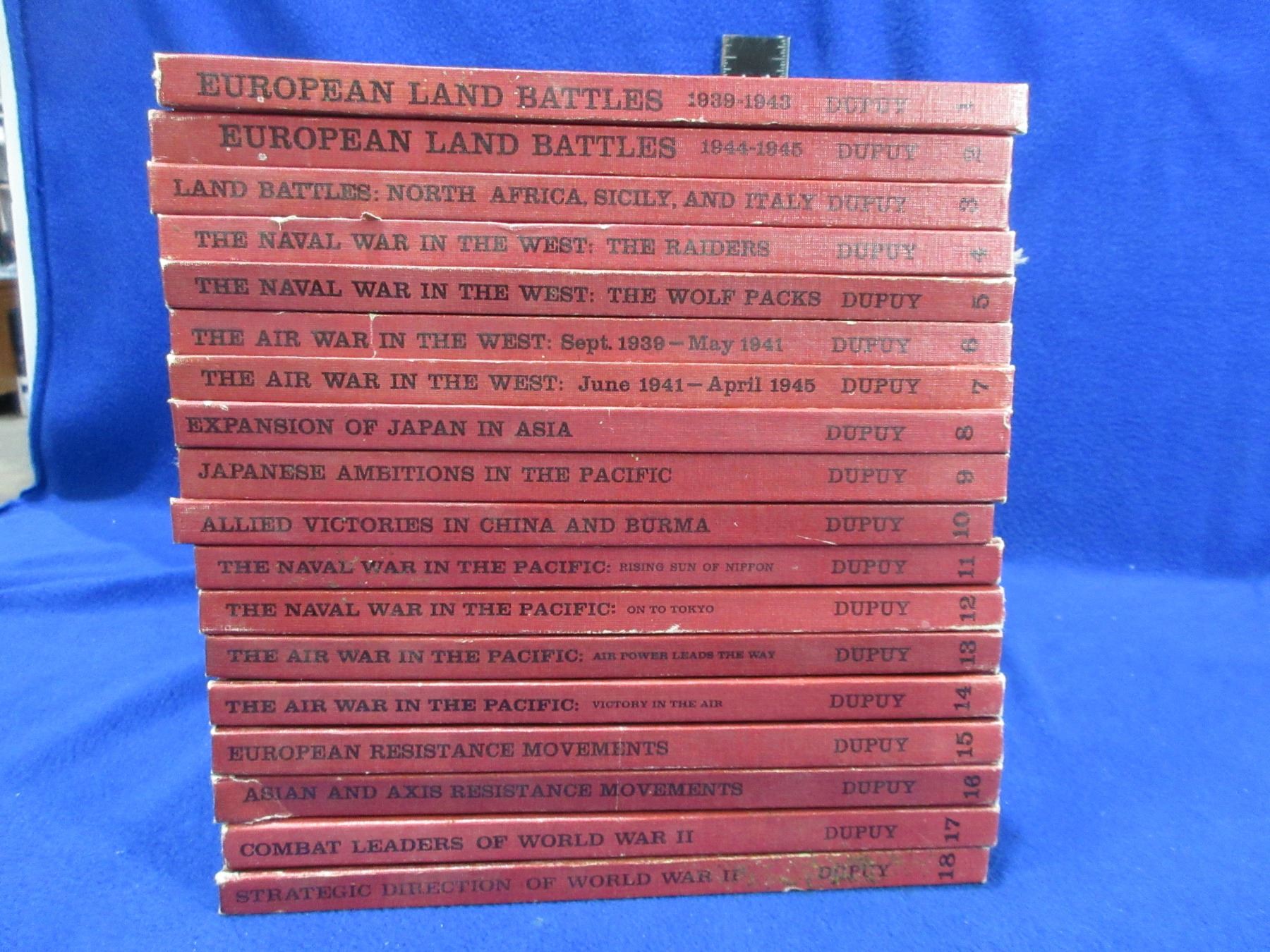 The Military History of WWII - Volume 1 to 18 - A comprehensive 18-volume set (circa 1962) authored by Col. Trevor Nevitt Dupuy, providing an in-depth, tactical, and strategic analysis of WWII. It covers European/Pacific land battles, naval, and air operations (1939–1945), featuring detailed maps, photographs, and in some editions, original military documentation.