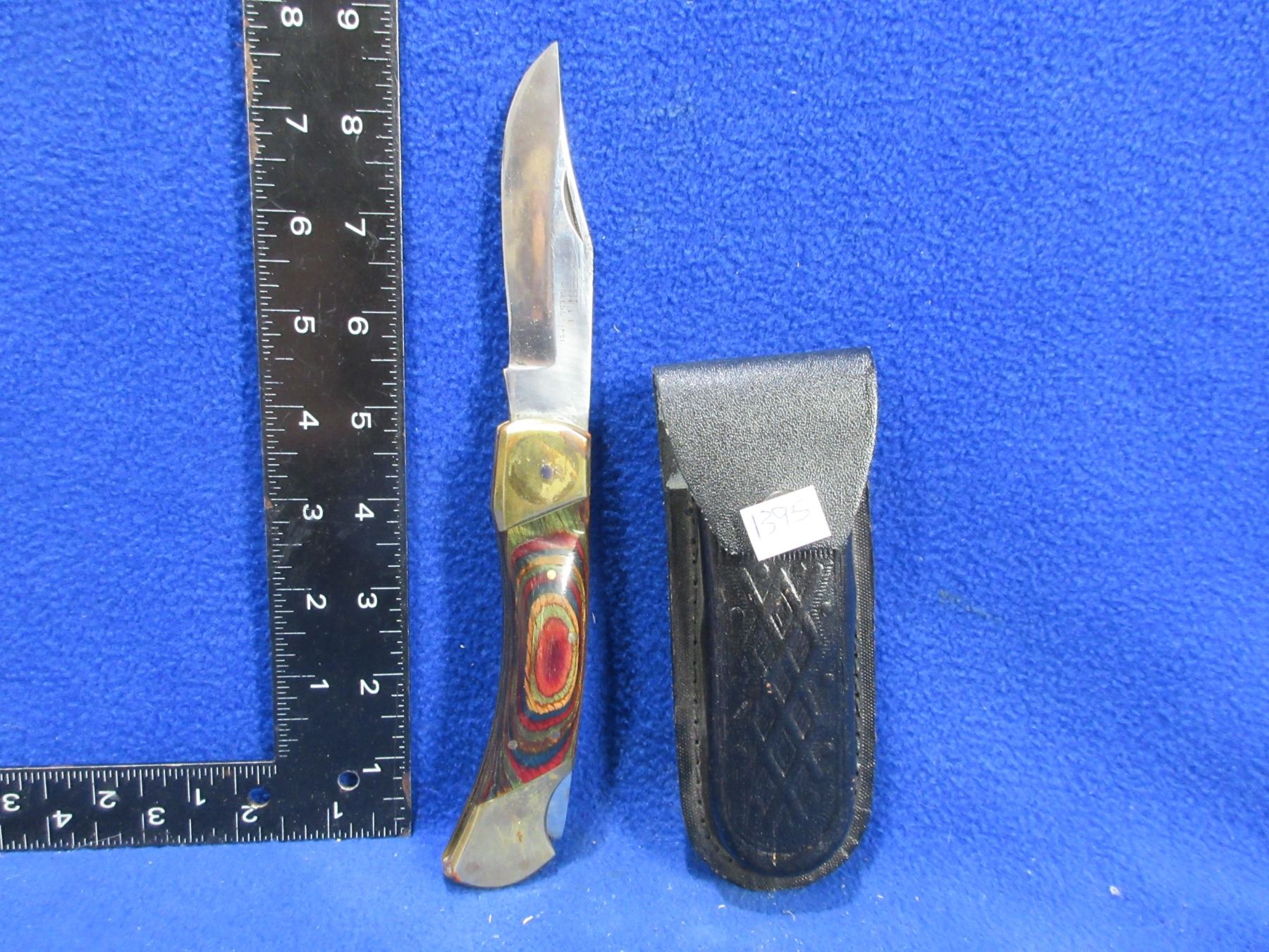 Lot 1395 Folding Lock Blade Knife with Leather Sheath - 3 3/4" Blade