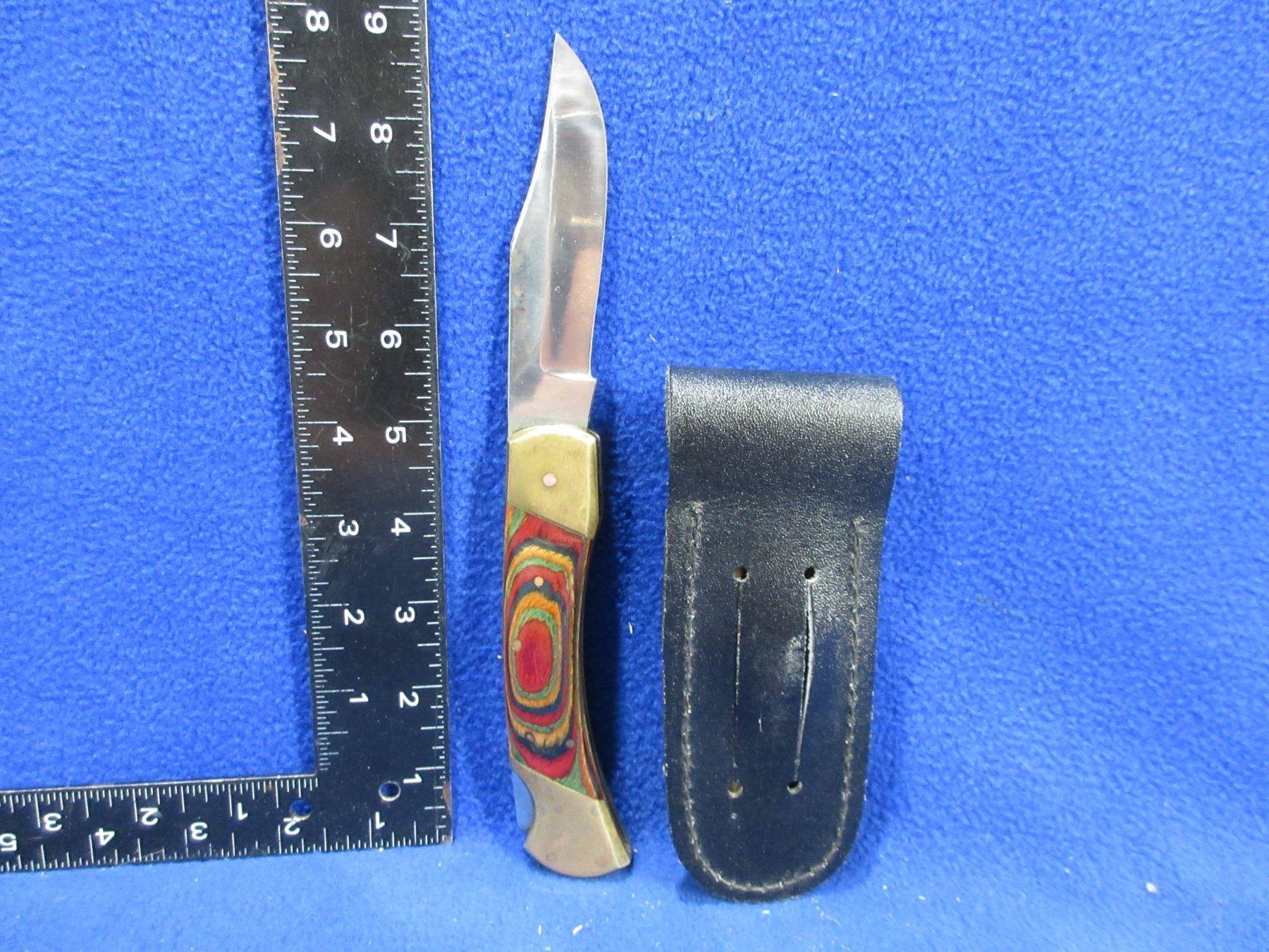 Folding Lock Blade Knife with Leather Sheath - 3 3/4" Blade, 8 3/4" Total Length