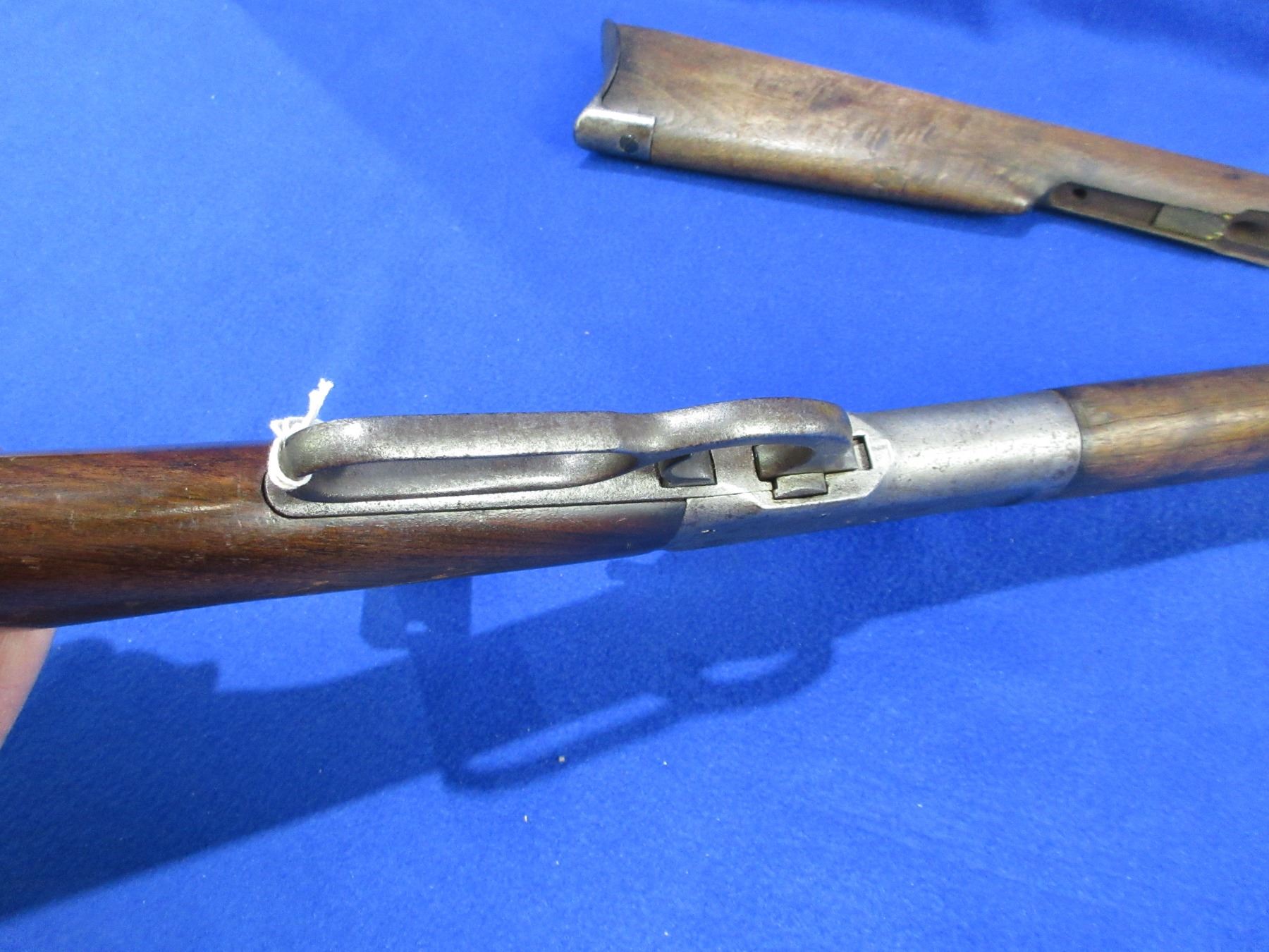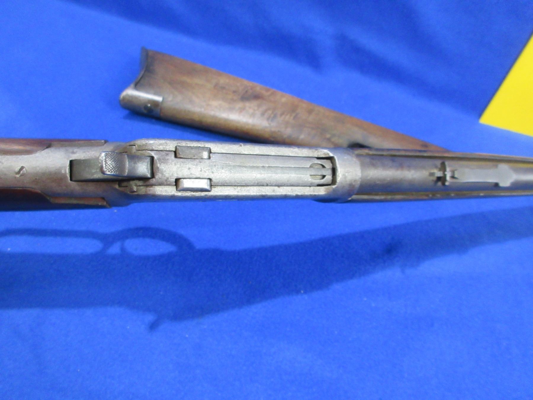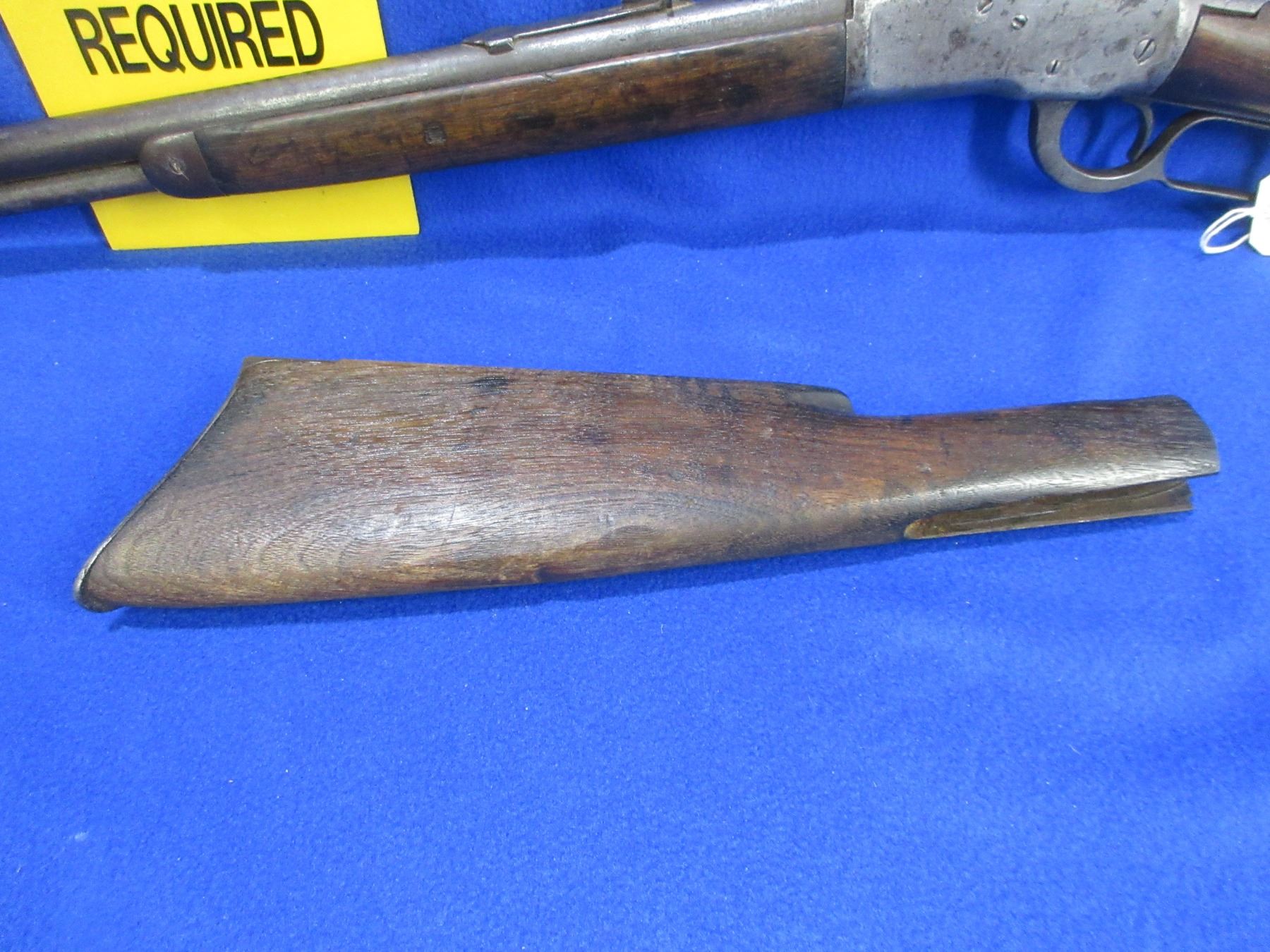 Non-Restricted - Winchester Model 92 in 25-20 WCF - This is a lever action rifle with tube magazine, action appears to be in good working order. Barrel is 23" and appears shortened, rifling is good, bluing is turning grey with light pitting, has both sights, stock is good with usage marks, forearm has a crack on the bottom at the back, length of pull is 13 1/4", metal butt plate good, comes with original stock and crescent metal butt plate. Ser # 984391