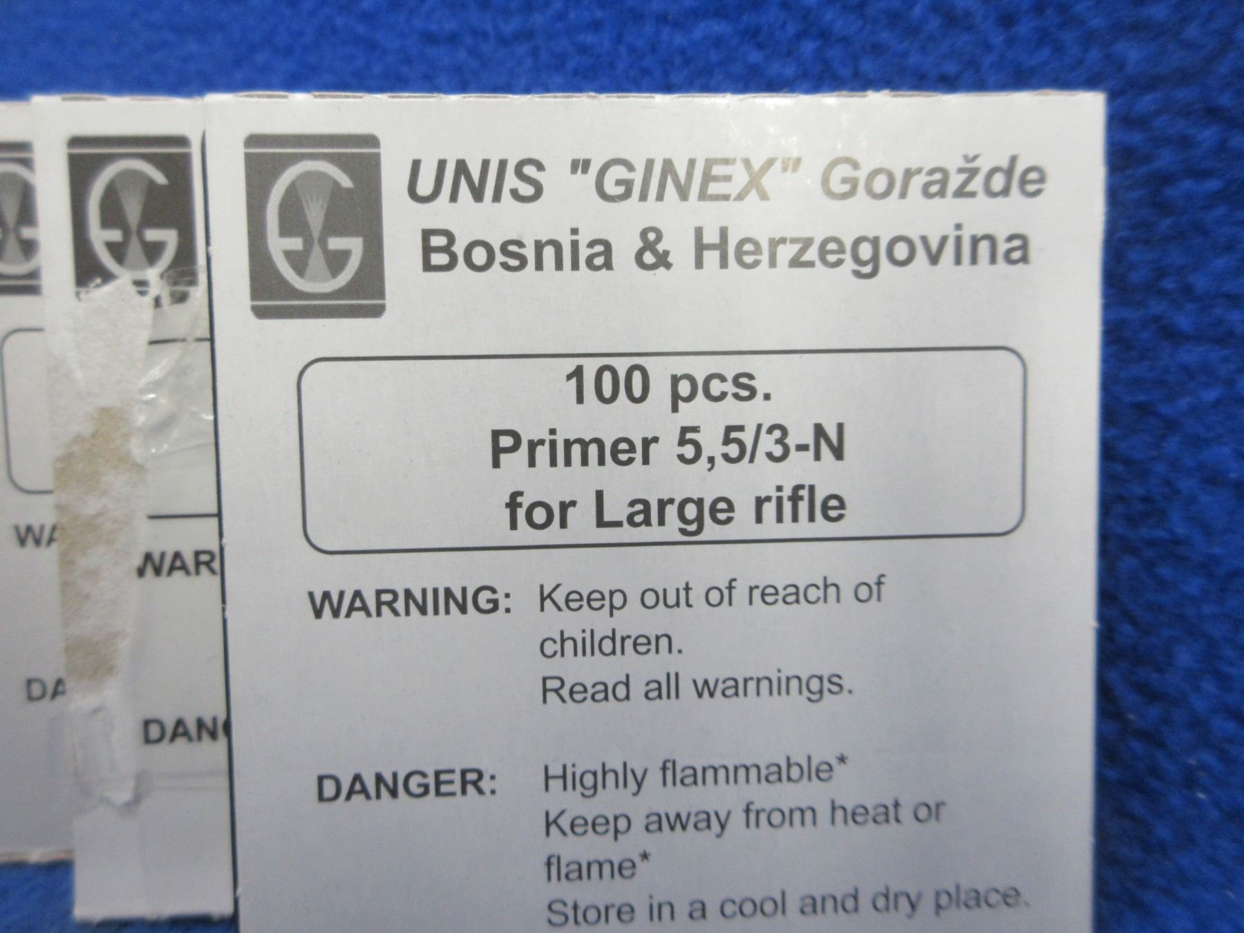 Unis "Ginex" Large Rifle Primer 5,5/3-N (Pick Up or Ship by UPS Only) - 9 Boxes of 100, Box of 89