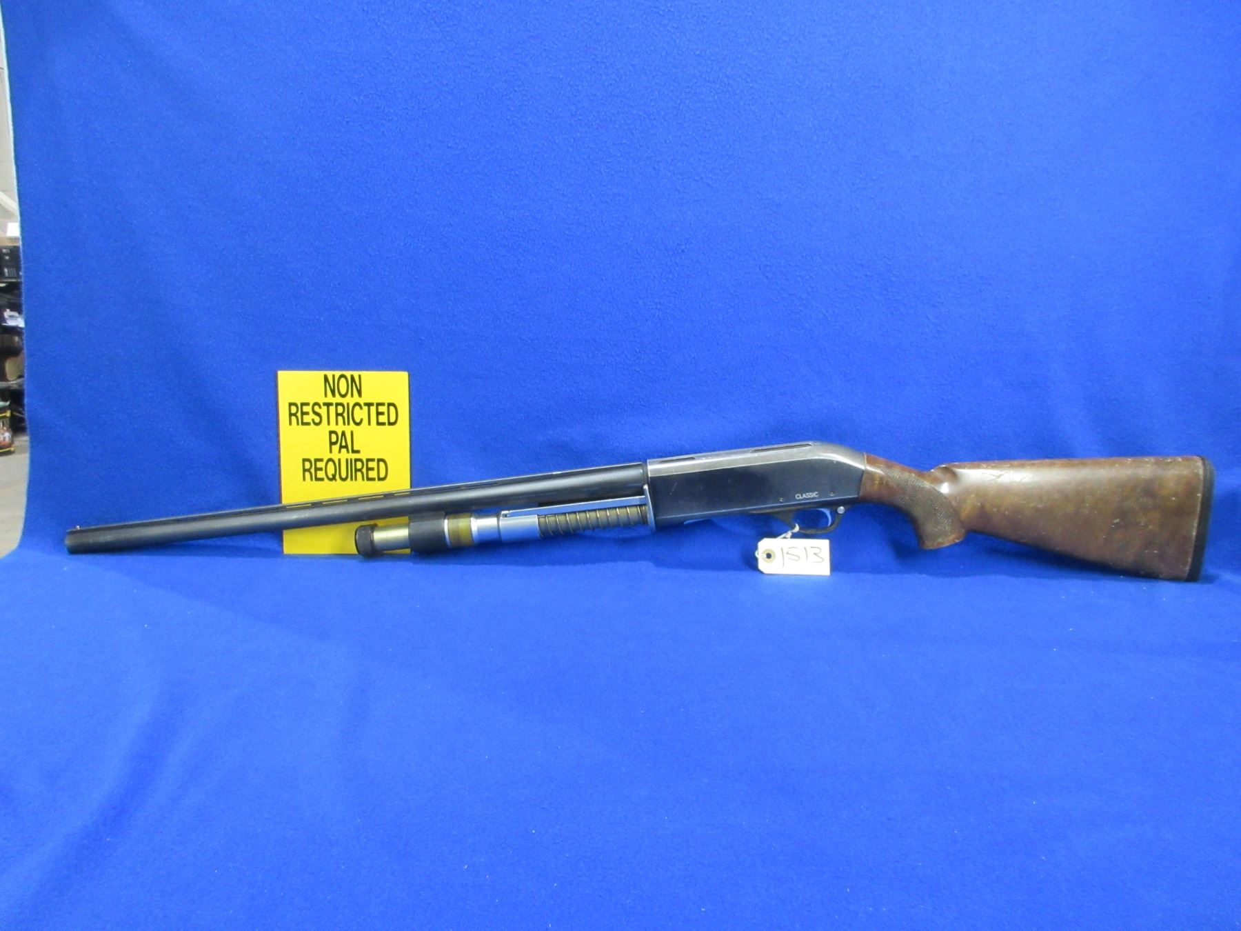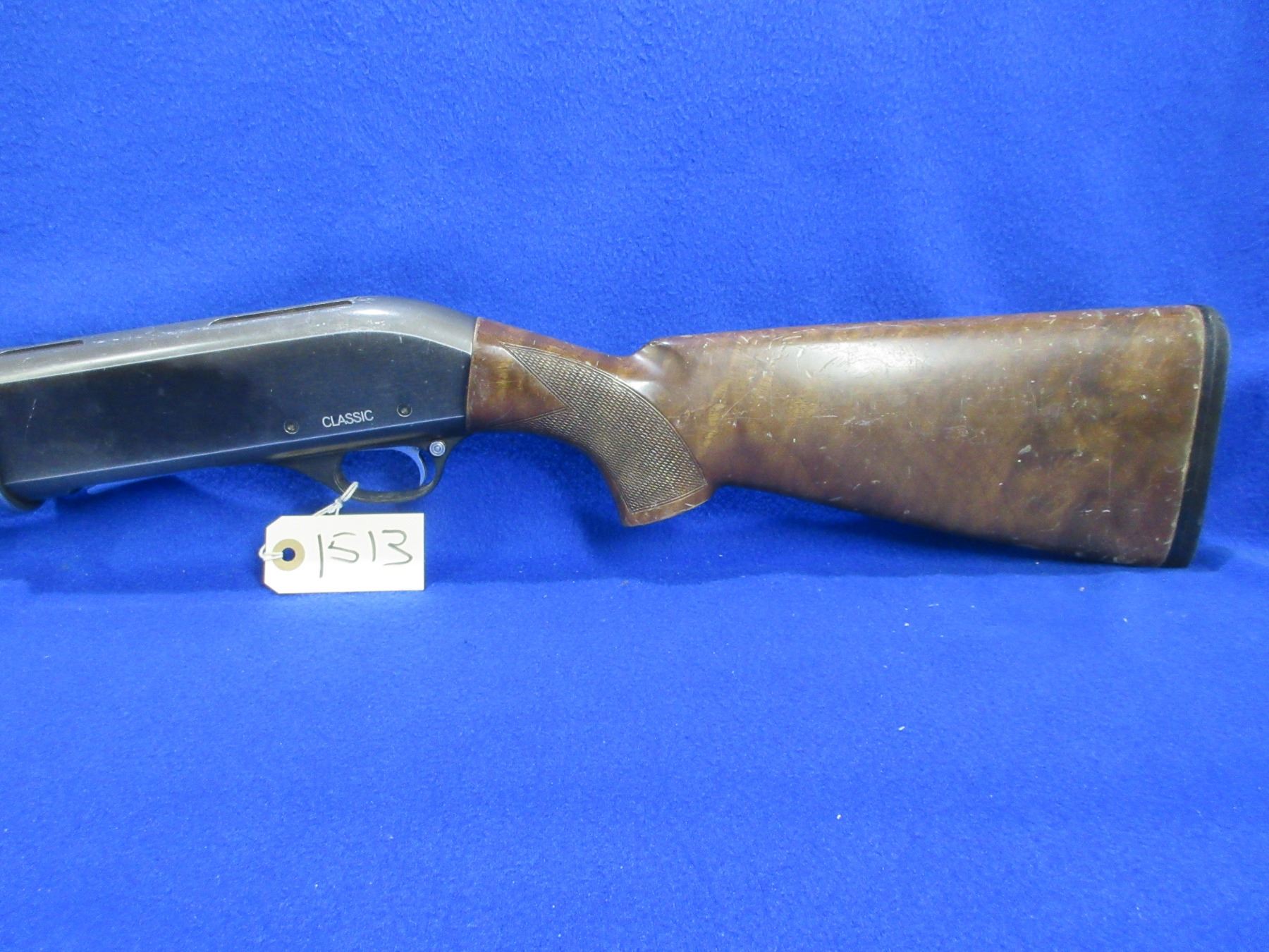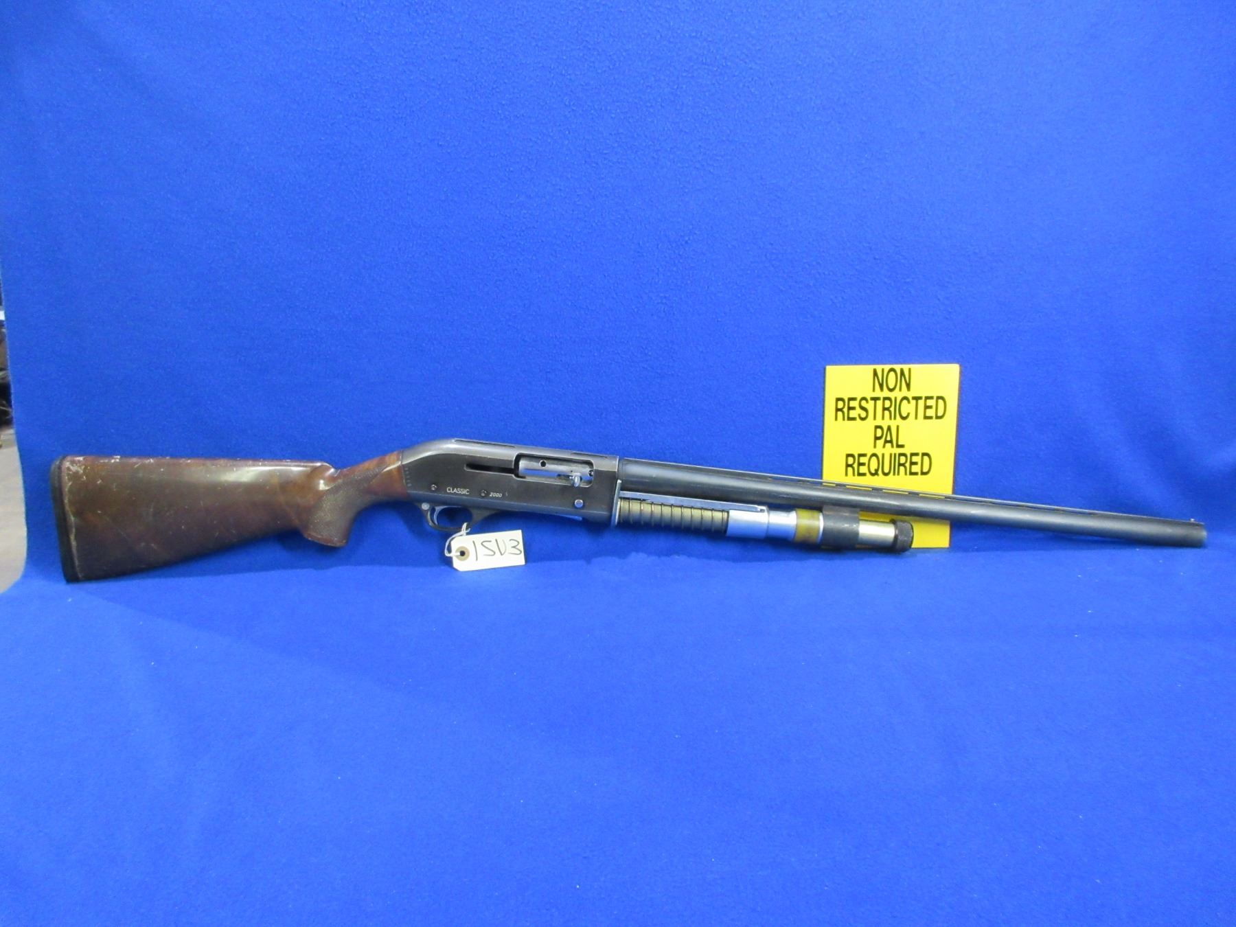 Non-Restricted - Classic Model 2000 in 12 Ga. 3" - This is a semi-auto shotgun with removable choke, action appears to be in good working order but forearm is missing. Vent rib barrel is 24", bore is good, bluing is turning grey, has bead front sight, stock is fair to good with many usage marks and finish flaking, forearm is missing, length of pull is 14 1/2", butt plate good. Ser # 35345