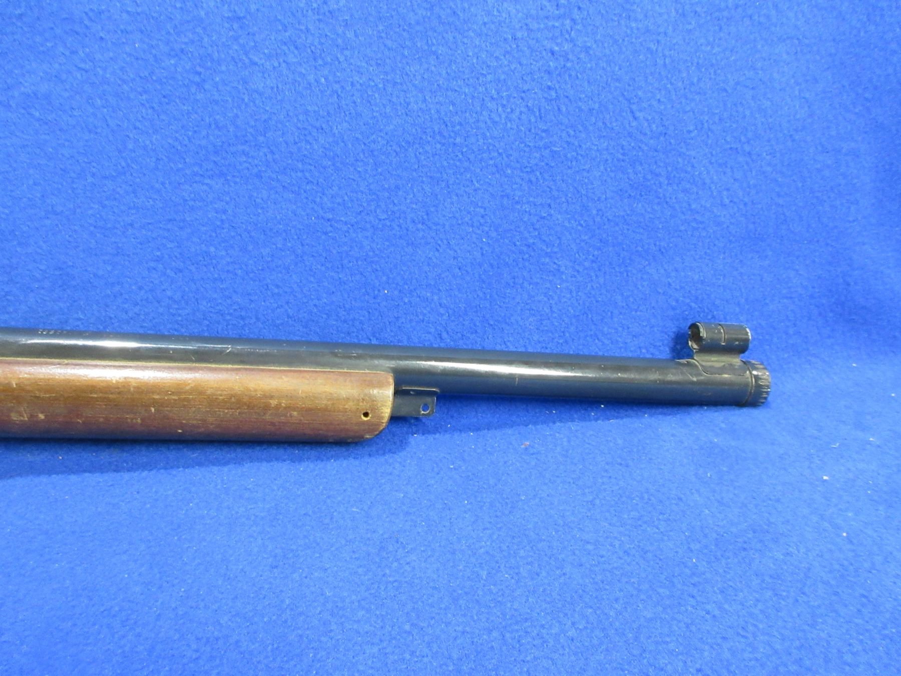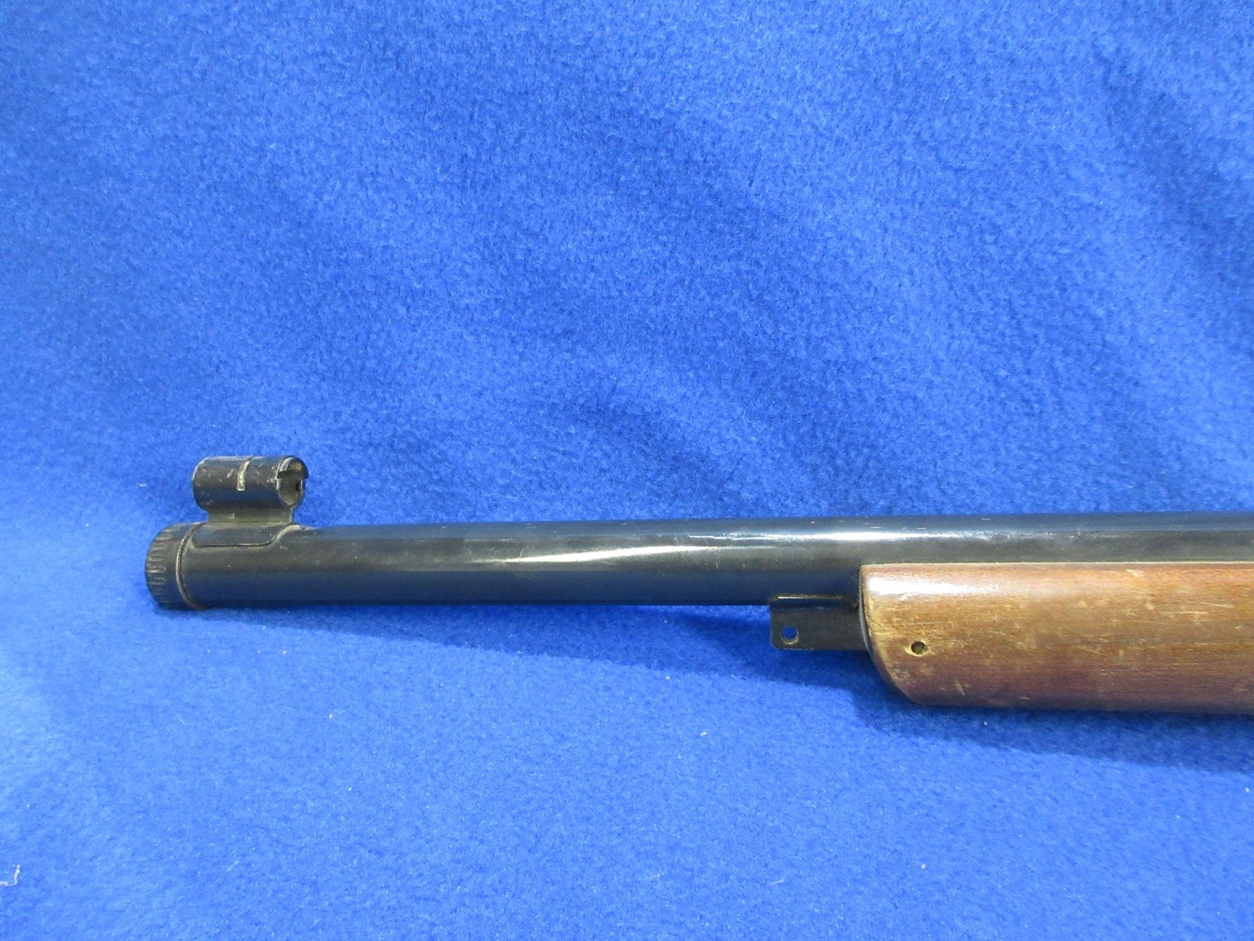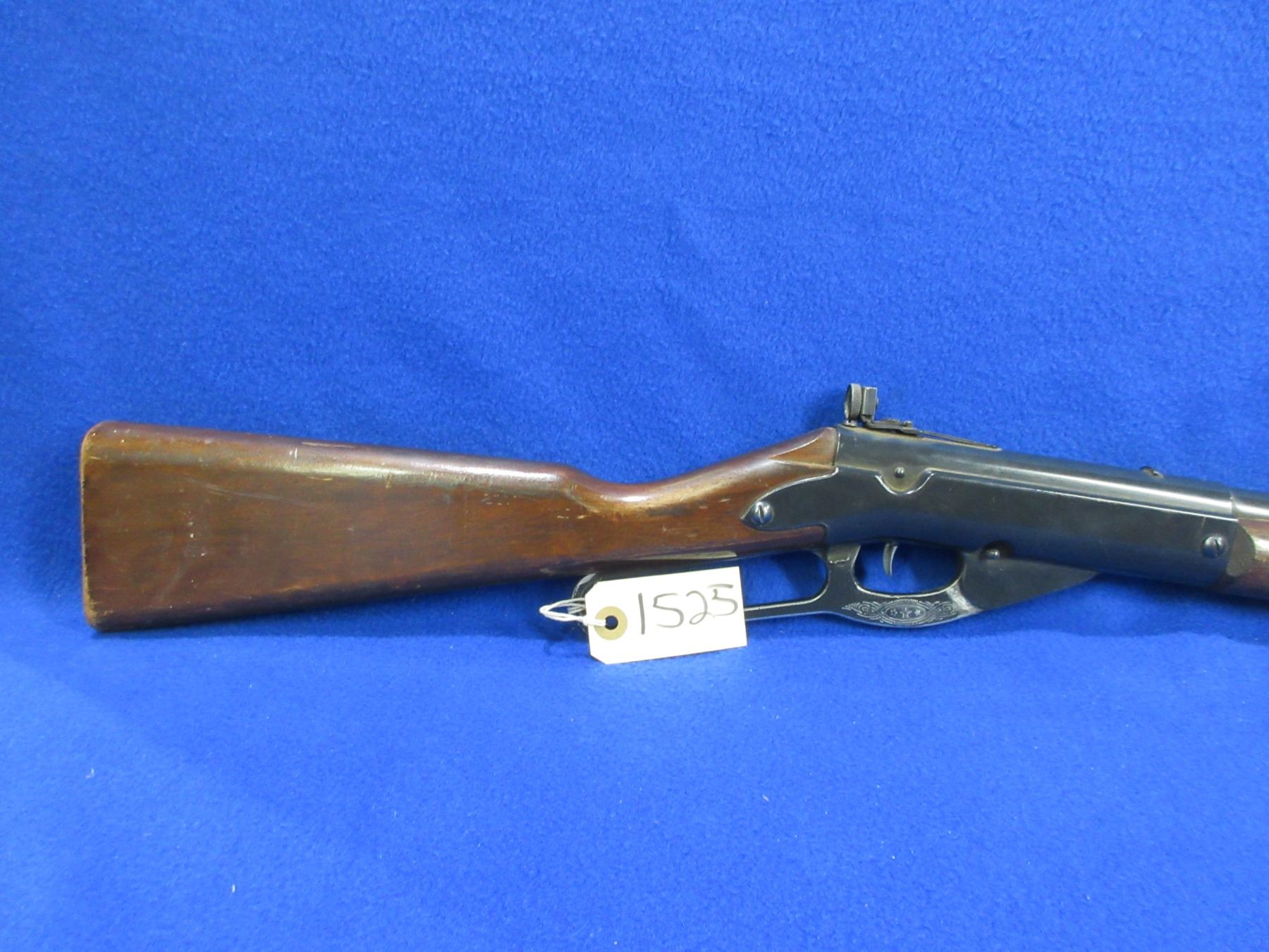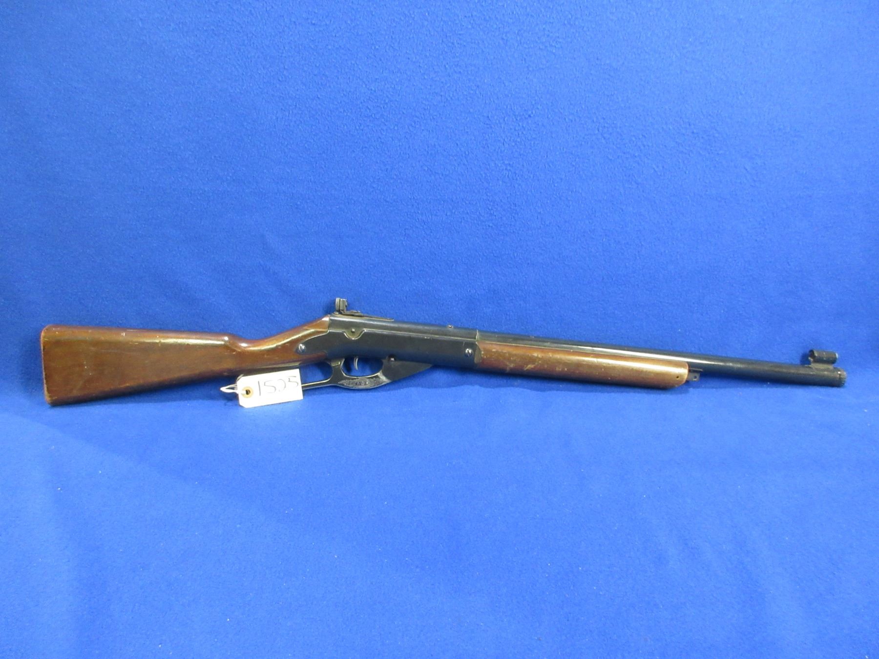 No PAL Required - Daisy Model 99 Air Rifle in .177 BB - This is a lever action air rifle with internal magazine, action appears to be in good working order. Barrel is 17", bluing is good, front peep sight aperture is missing, has rear peep sight, wood stock and forearm are good with usage marks, length of pull is 14". Ser # None