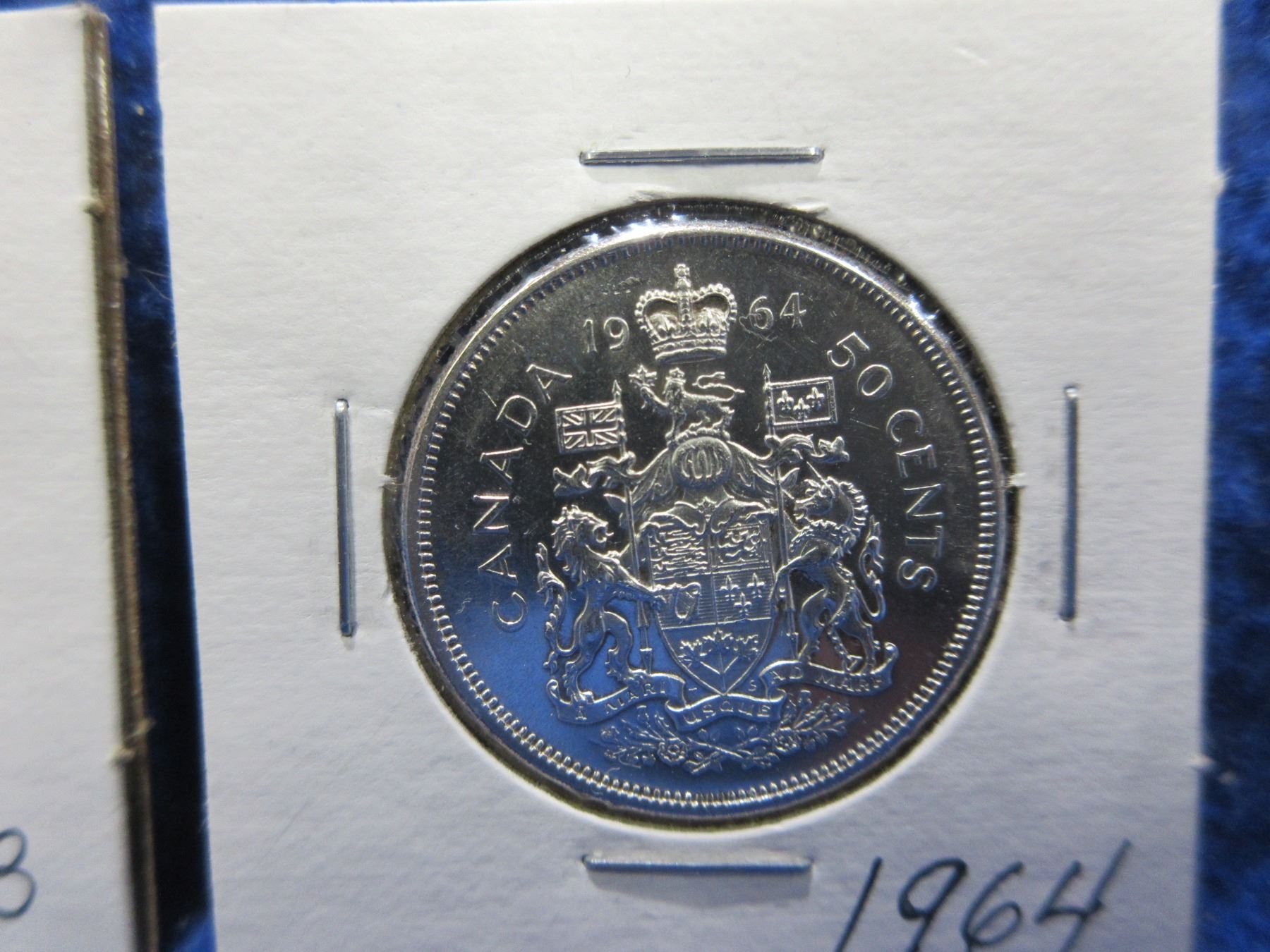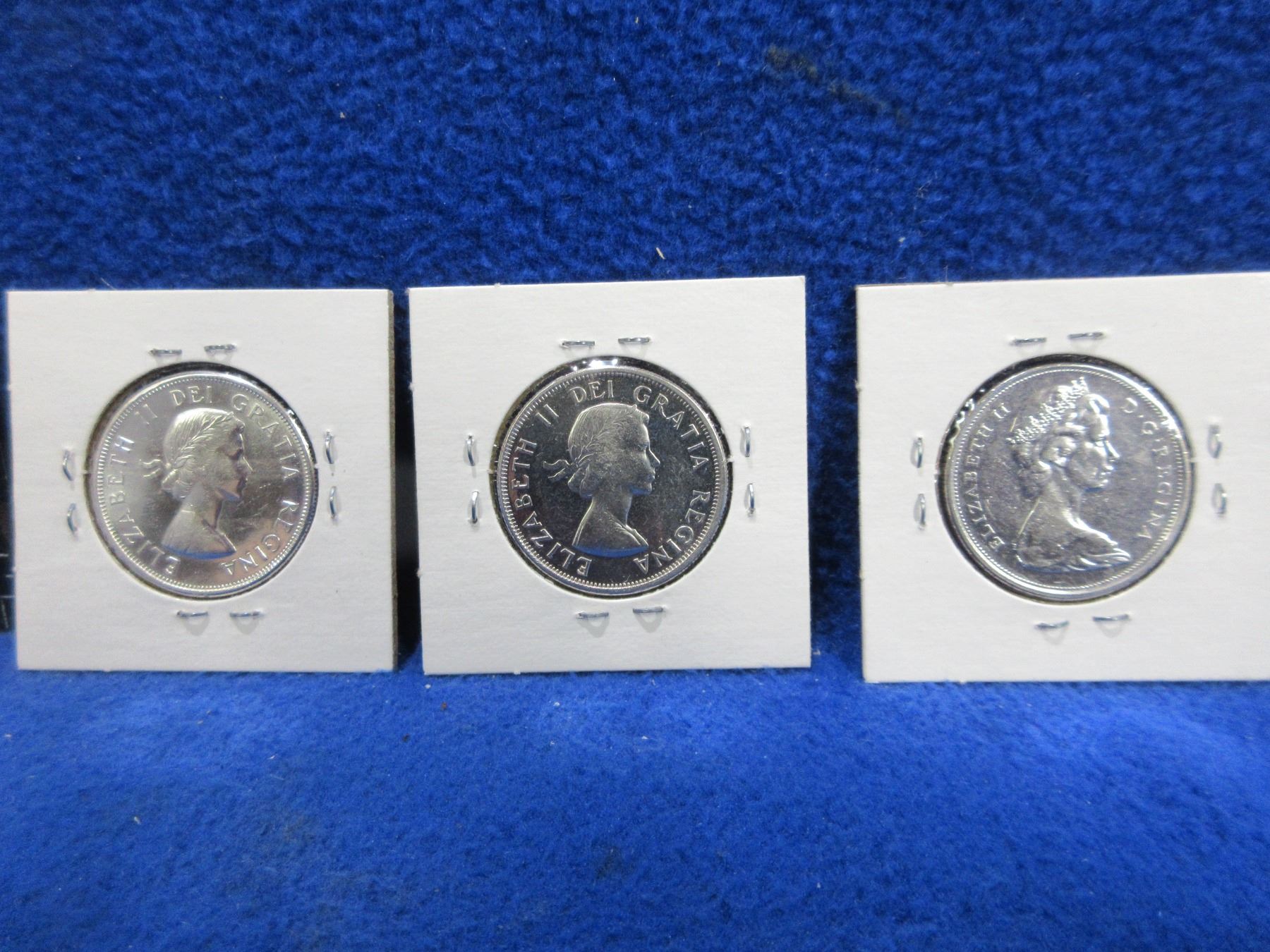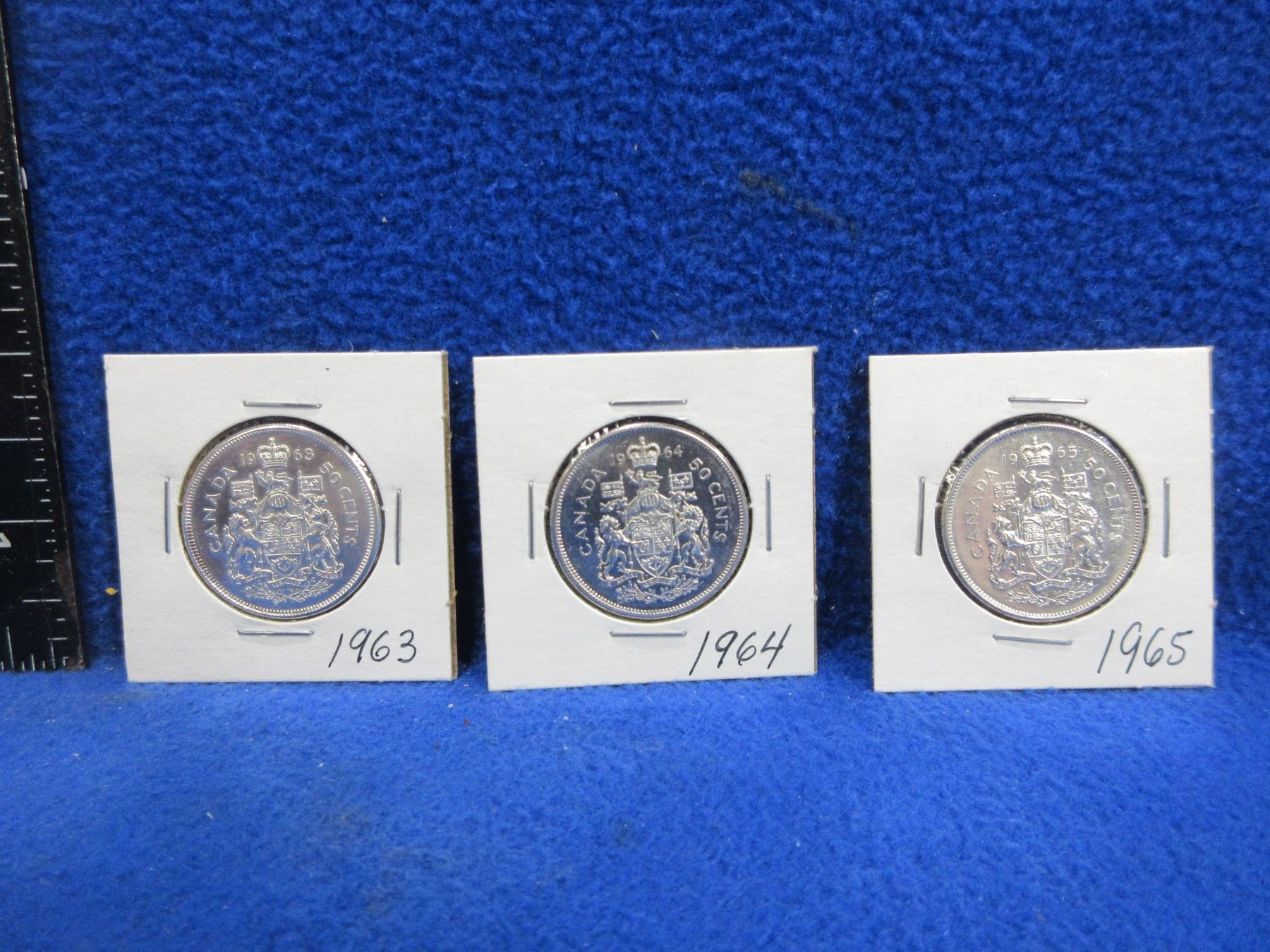 Lot 2022 3 Canadian 50 Cent Coins - 1963, 1964, 1965 - .800 Silver