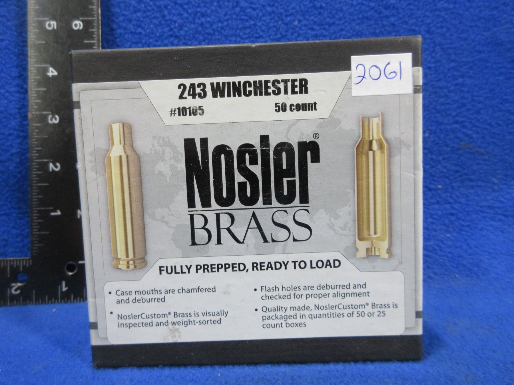 Lot 2061 NEW - Brass Only - 243 Win. Nosler Unprimed - Sealed Box of 50