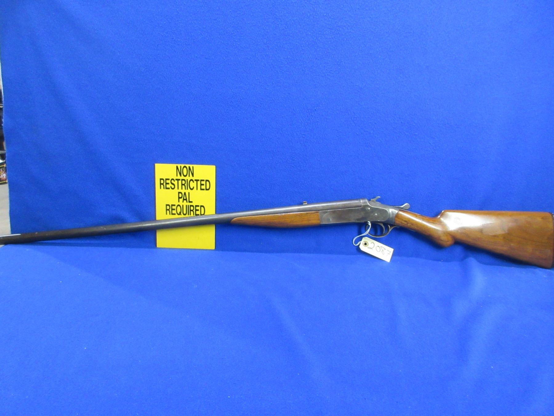 Non-Restricted - Iver Johnson Arms Champion in 12 Ga. 3" - This is a tip up single shot hammer shotgun, action is tight and appears to be in good to very good working order. Barrel is 32", bore is fair to good but appears ringed, bluing is turning grey, has bead front sight, stock has cracks in the wrist area, forearm is fair to good with usage marks, length of pull is 14 1/4", butt plate has a chip at the toe, swivel studa are missing. Ser # 10805